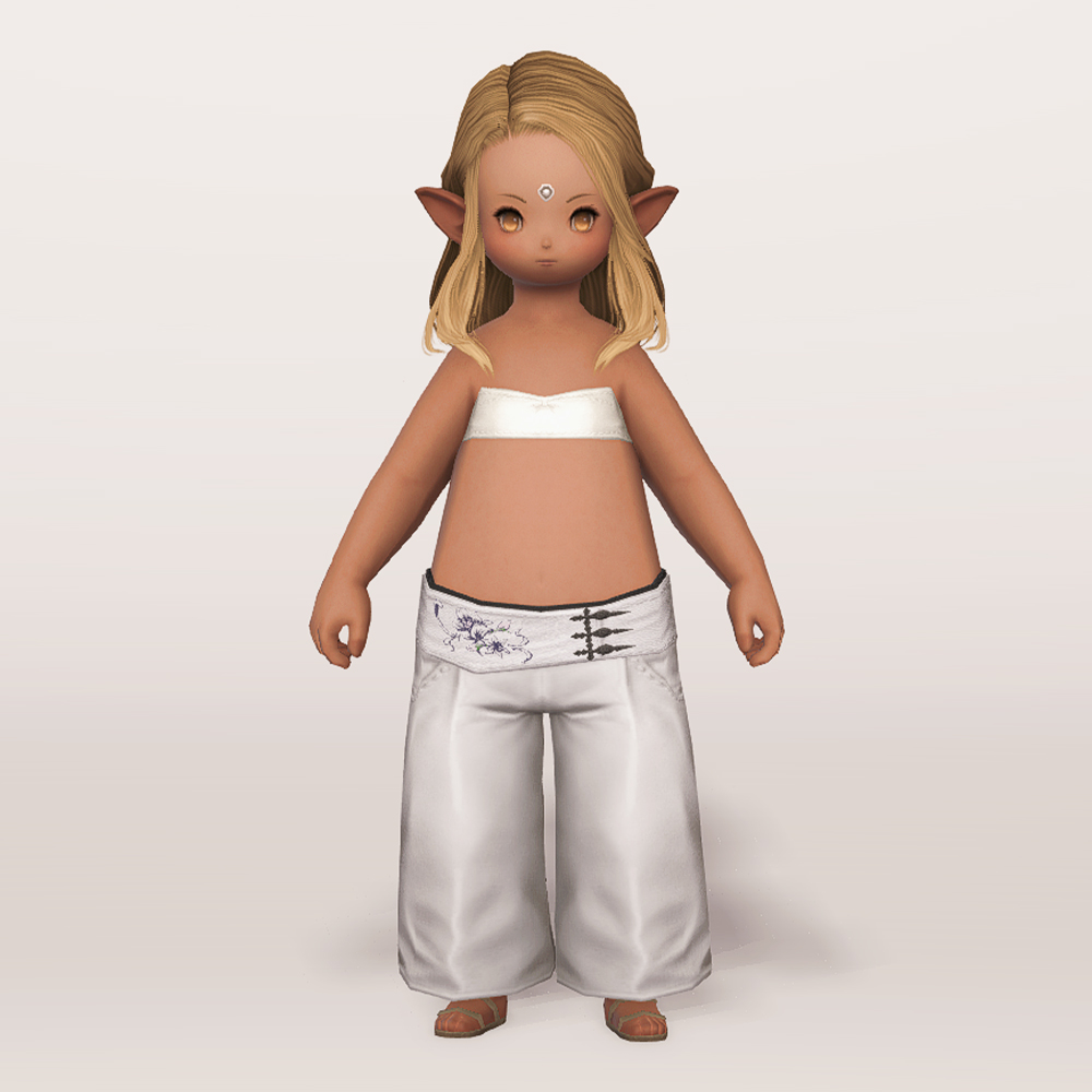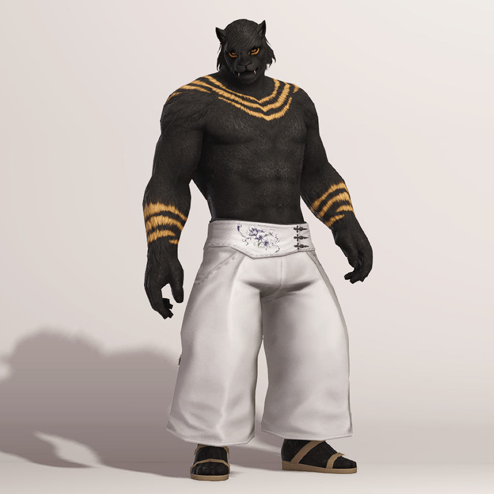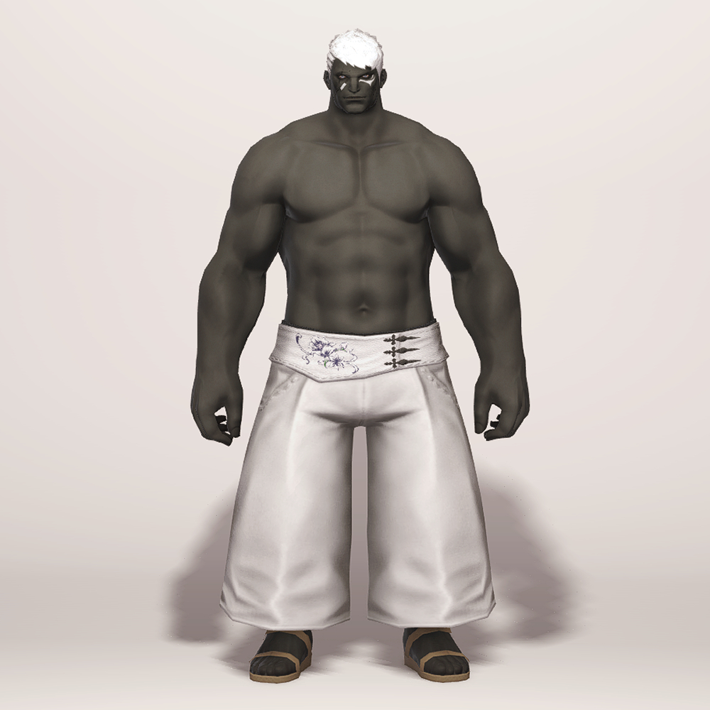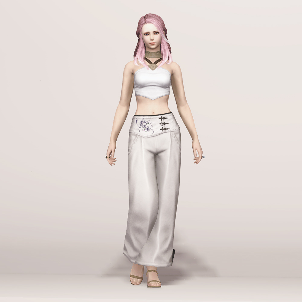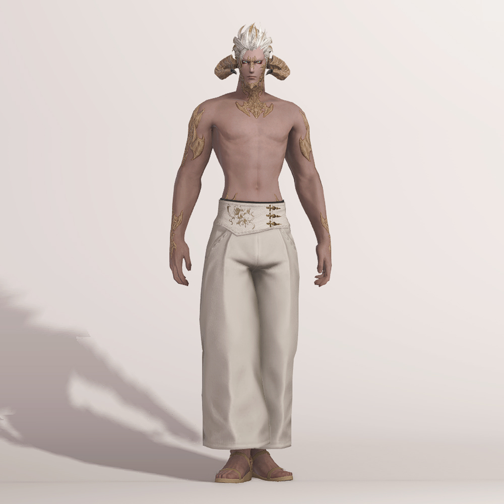 호화로운 자수로 멋을 낸 모던한 느낌의 와이드핏 하의입니다. 깔끔한 디자인에 허리 쪽의 디테일한 자수와 장식, 스티치가 눈에 띕니다. 늑대인간 발과 매치하면 발목 부분이 하의에 가려져 진짜 늑대 발처럼 변하며 달마스카 주름옷 상의, 바나스파티에서 드랍되는 팔라카 옷 등과 매치하면 잘 어울려 추천드립니다.
