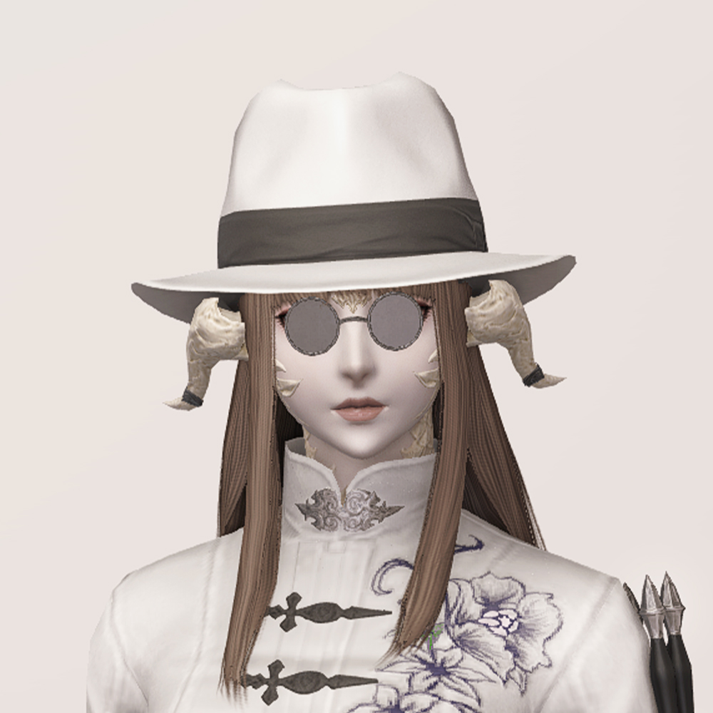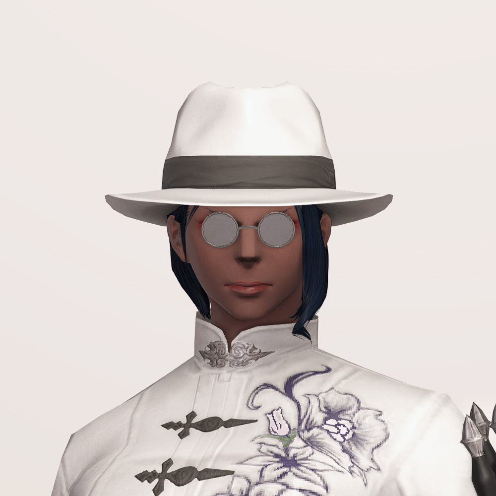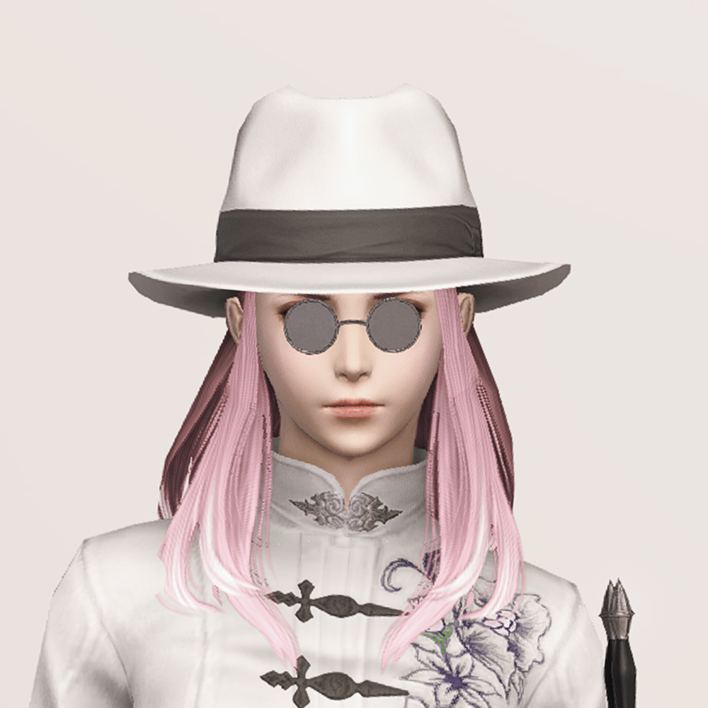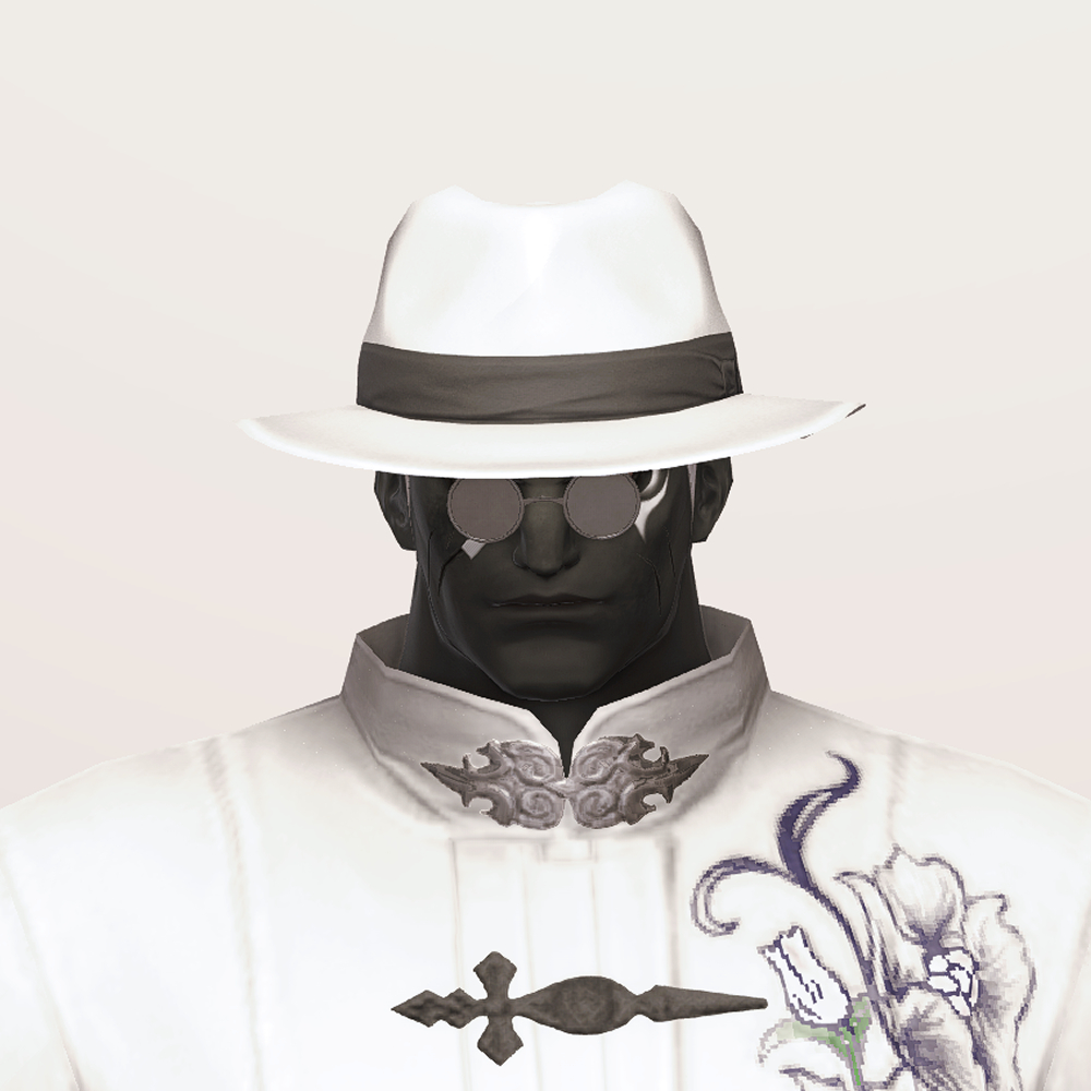 모던하면서도 깔끔하고 예쁜 중절모입니다. 선글라스와 세트이며 정면에서 보면 눈이 보이지 않지만 측면에서 보면 눈이 살짝 보인다는 점이 매력적입니다. 미코테가 착용하면 모자에 귀 모양이 생깁니다. 비슷한 느낌의 대체 모자 아이템으로는 성스러운 무지개 중절모, 동방 무신 모자를 추천드리며 선글라스 아이템은 코안경을 추천드립니다.