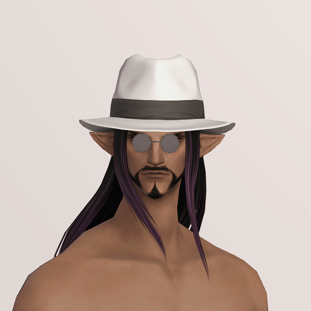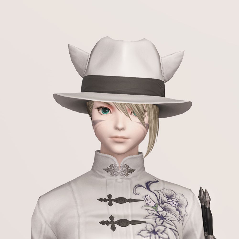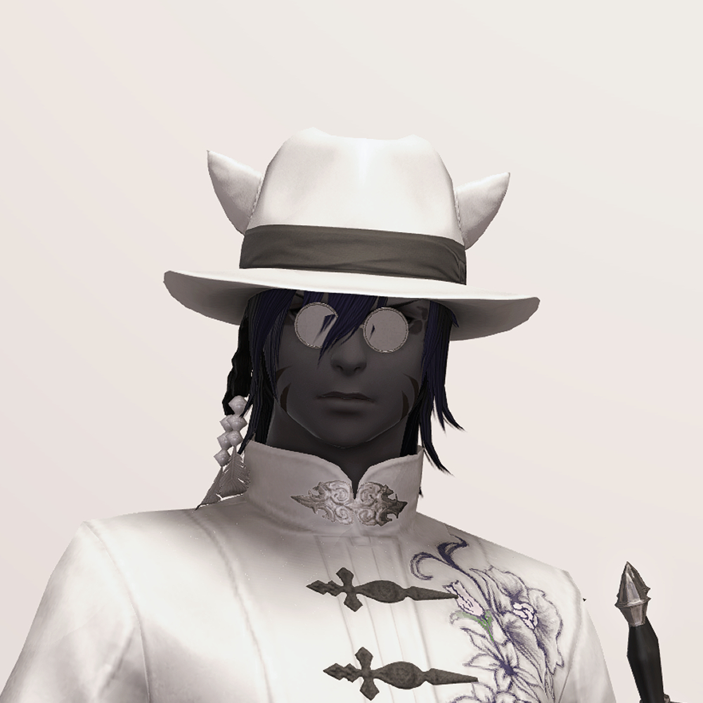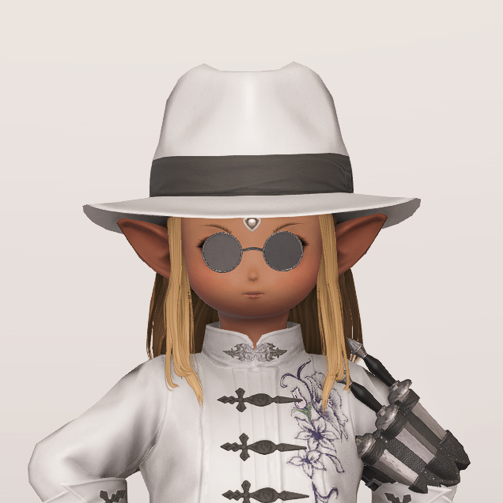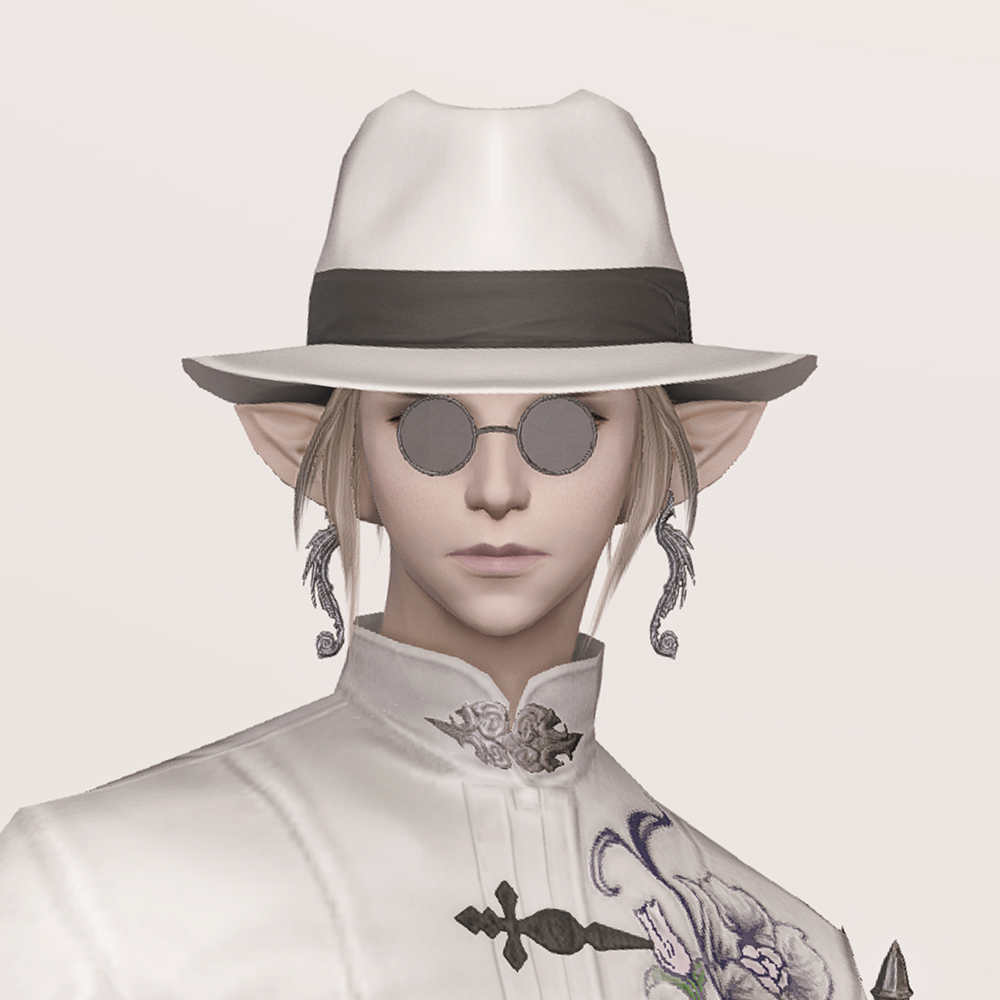모던하면서도 깔끔하고 예쁜 중절모입니다. 선글라스와 세트이며 정면에서 보면 눈이 보이지 않지만 측면에서 보면 눈이 살짝 보인다는 점이 매력적입니다. 미코테가 착용하면 모자에 귀 모양이 생깁니다. 비슷한 느낌의 대체 모자 아이템으로는 성스러운 무지개 중절모, 동방 무신 모자를 추천드리며 선글라스 아이템은 코안경을 추천드립니다.