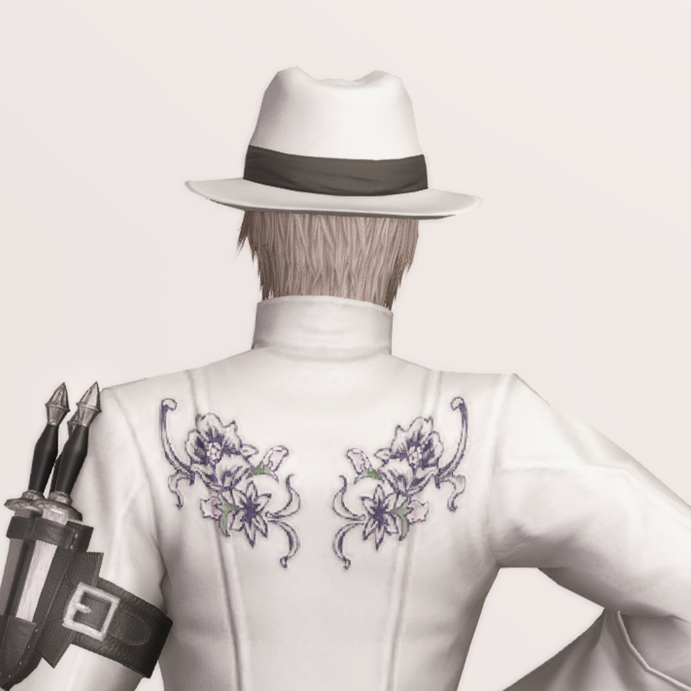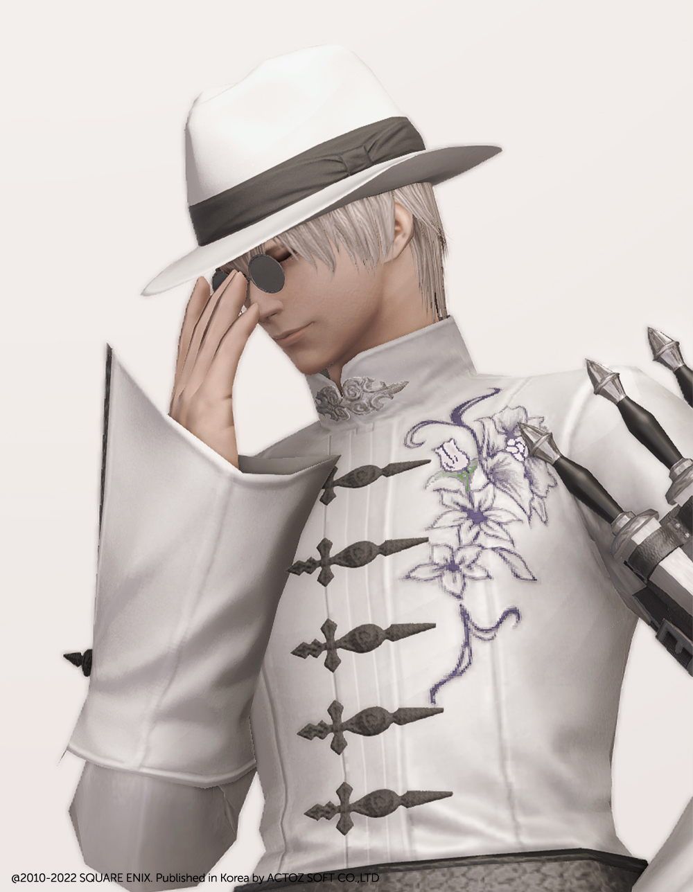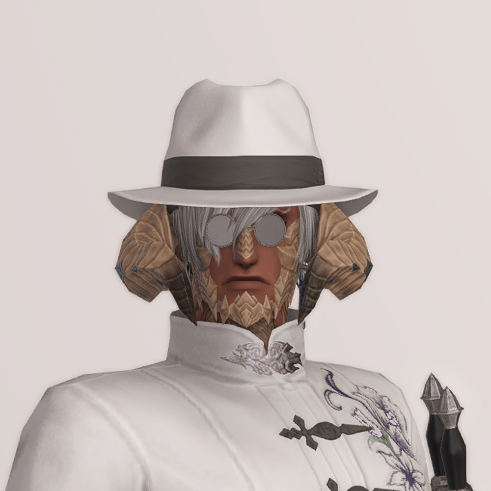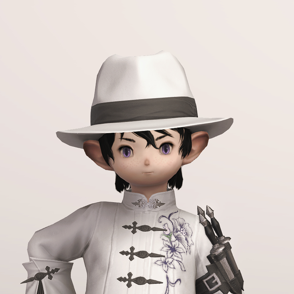 모던하면서도 깔끔하고 예쁜 중절모입니다. 선글라스와 세트이며 정면에서 보면 눈이 보이지 않지만 측면에서 보면 눈이 살짝 보인다는 점이 매력적입니다. 미코테가 착용하면 모자에 귀 모양이 생깁니다. 비슷한 느낌의 대체 모자 아이템으로는 성스러운 무지개 중절모, 동방 무신 모자를 추천드리며 선글라스 아이템은 코안경을 추천드립니다.