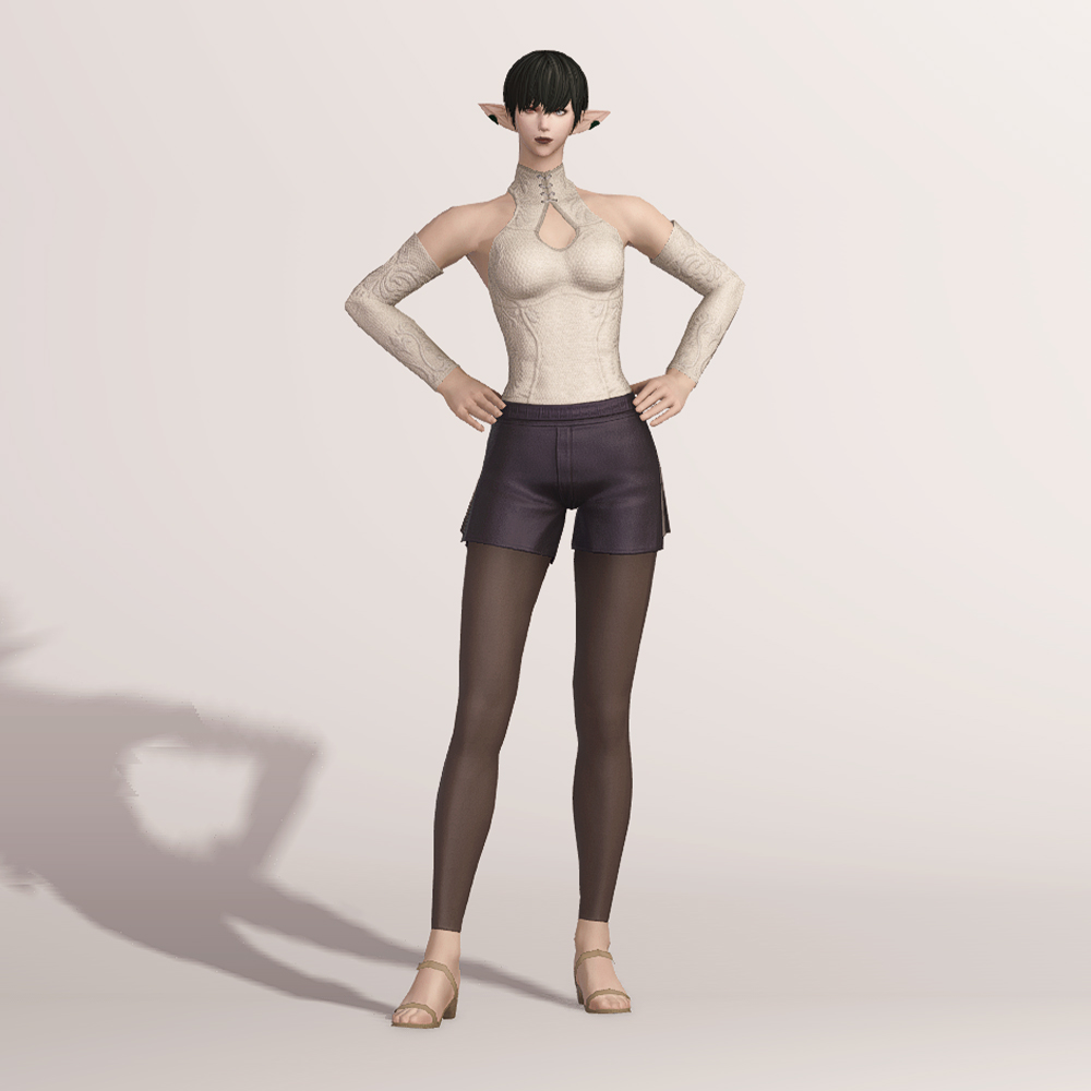 허벅지 옆부분이 트여있어 돌핀 팬츠가 떠오르는 하의입니다. 예쁘고 깔끔한 숏팬츠와 스타킹이 세트인 조합으로 다양하게 활용할 수 있습니다. 스타킹이 좋으나 2호 B형 쫄바지가 부담스러운 분들께 추천드립니다.