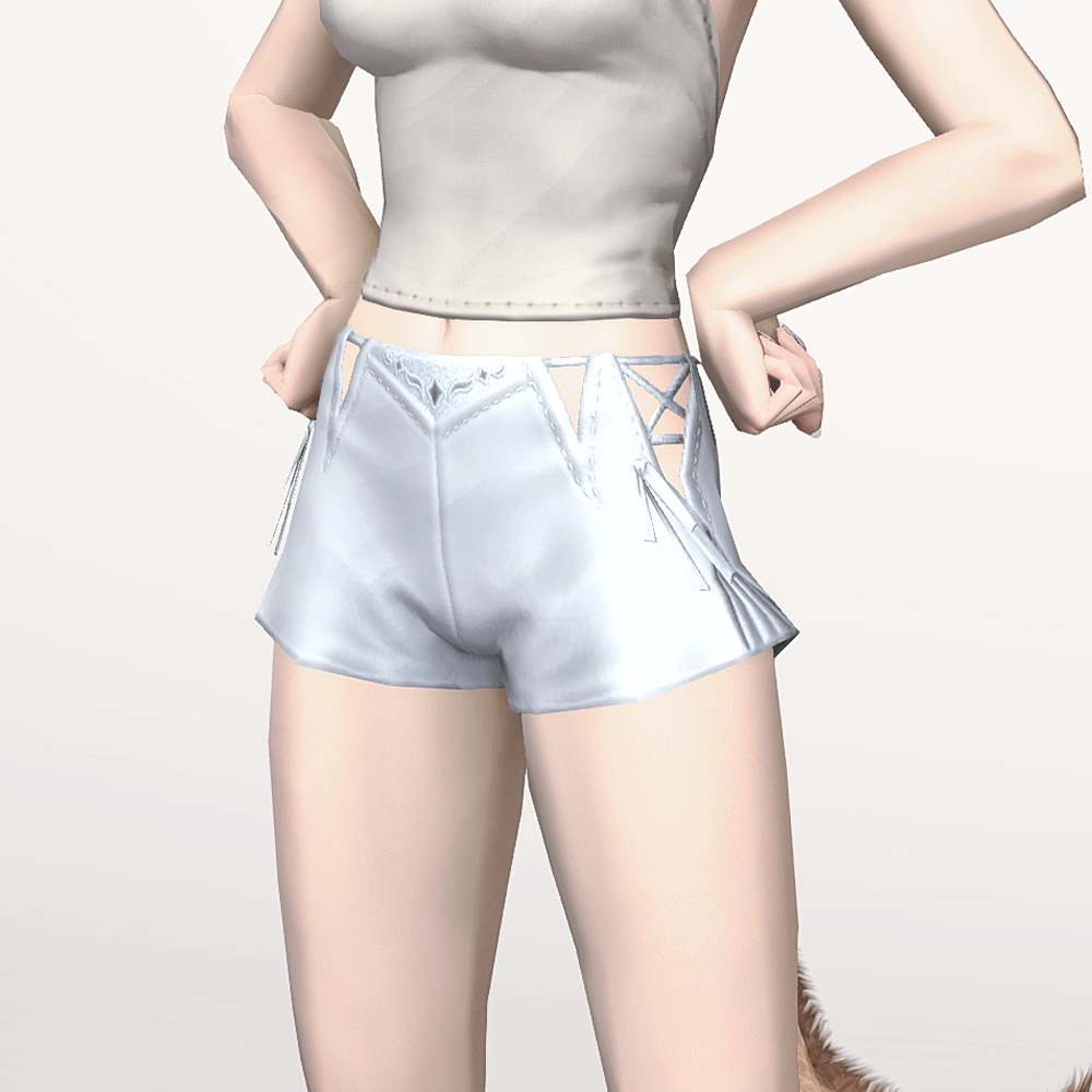 빛의 무녀 린의 짧은 기장의 순백 속바지입니다. 종족별로 디자인이 달라지는 속옷 하의 디자인에 스트레스 받으셨다면, 혹은 너무 속옷같은 잠방이 비주얼에 충격받으셨다면 이 바지가 딱입니다. 기장이 짧고 디자인이 예뻐 긴 상의의 속바지나 일반 바지 대용으로 다양하게 활용할 수 있습니다.