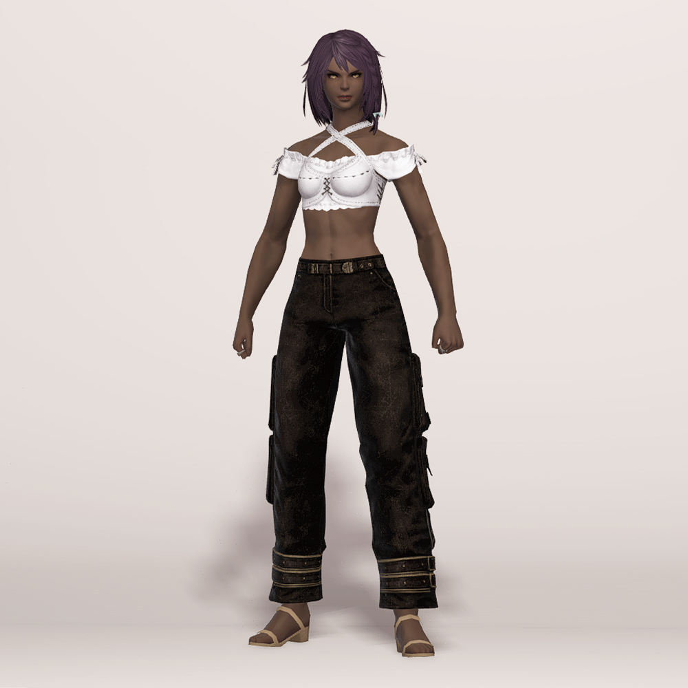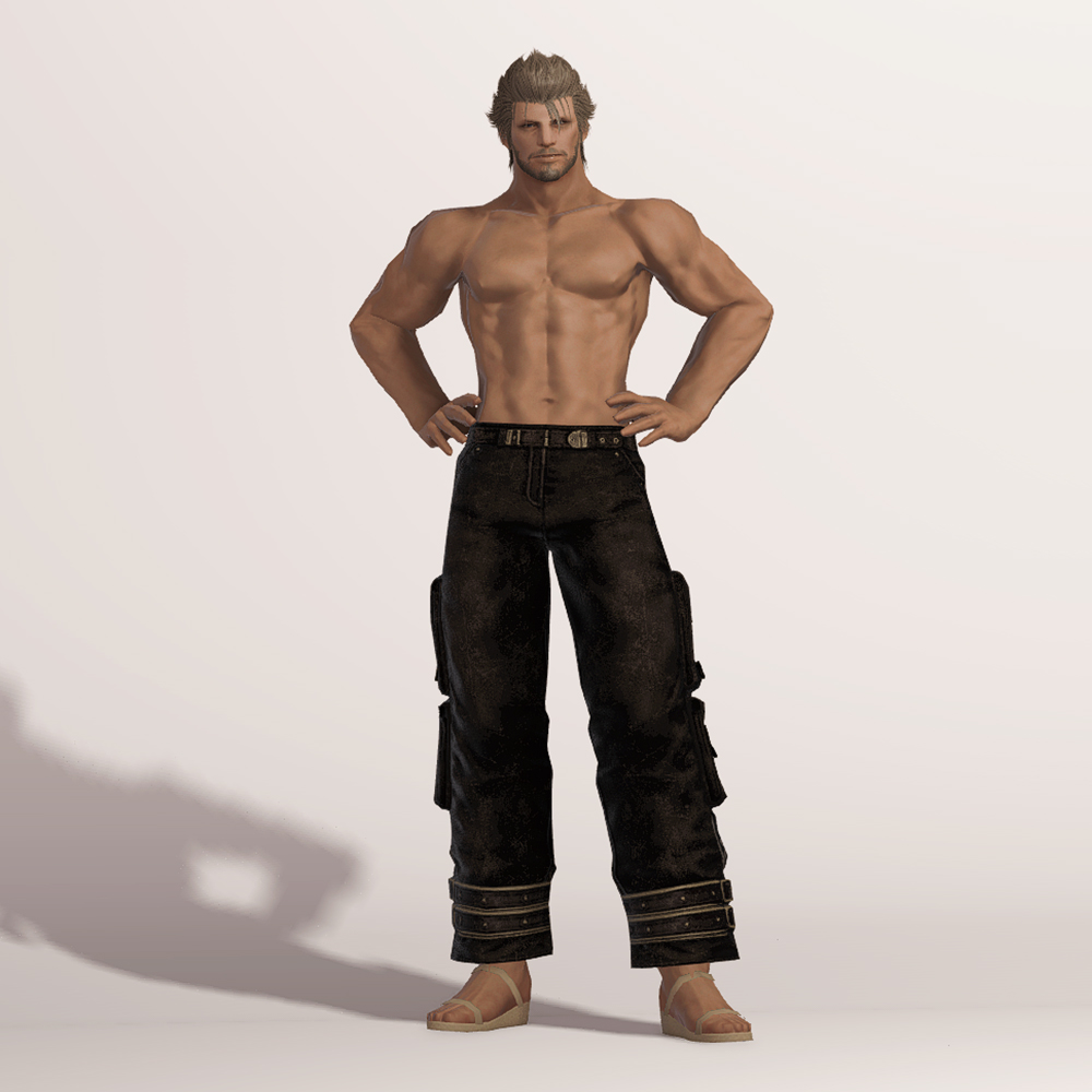 사용감이 느껴지는 두툼한 가죽 재질의 트라우저즈입니다. 와이드한 일자바지로, 깔끔한 핏과 함께 많은 주머니와 벨트가 눈에 띕니다. 창천일꾼 민소매셔츠같이 핏이 좋은 상의와 착용하여 귀여운 작업바지 느낌으로 착용가능합니다. 비슷한 느낌의 대체 아이템으로는 창천일꾼 하의를 추천드립니다.