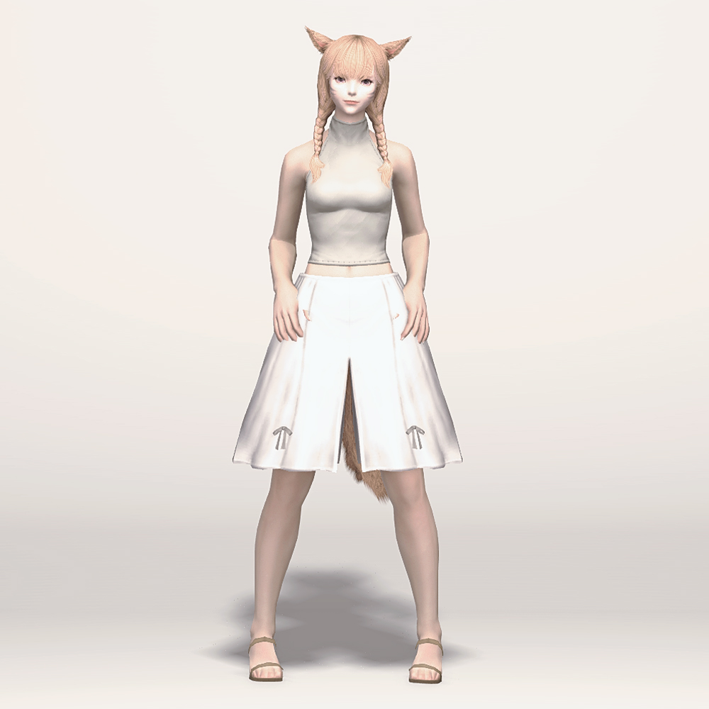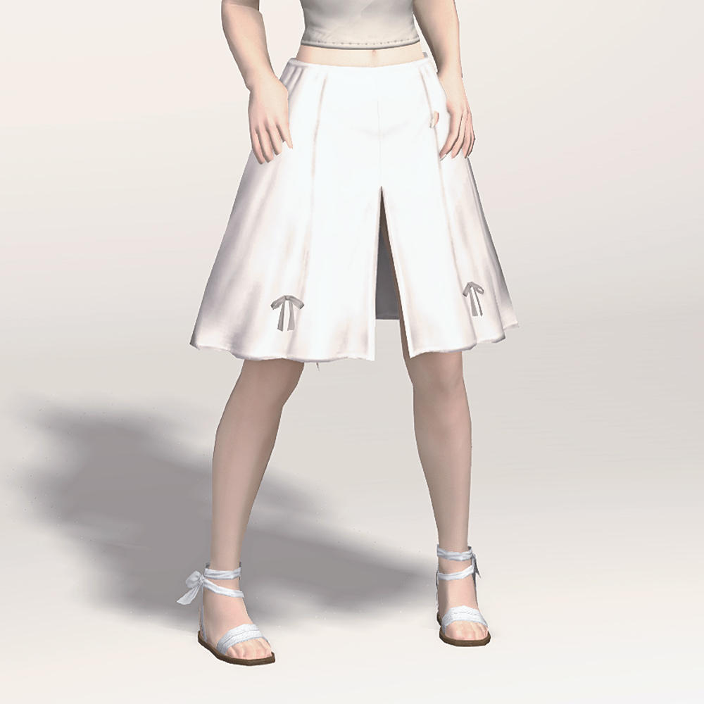 새벽의 혈맹 맹주 민필리아의 두 번째 의상의 하의입니다. 흐르는 듯한 실루엣과 하늘하늘한 느낌의 부드러운 슬림 치마는 모험가를 위한 이동성을 갖추어 움직이기 편해 보이며 작은 리본이 귀엽게 포인트로 들어갔습니다.