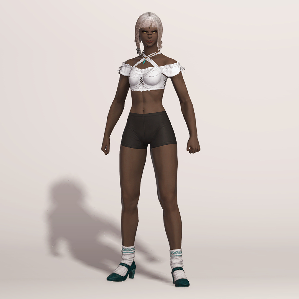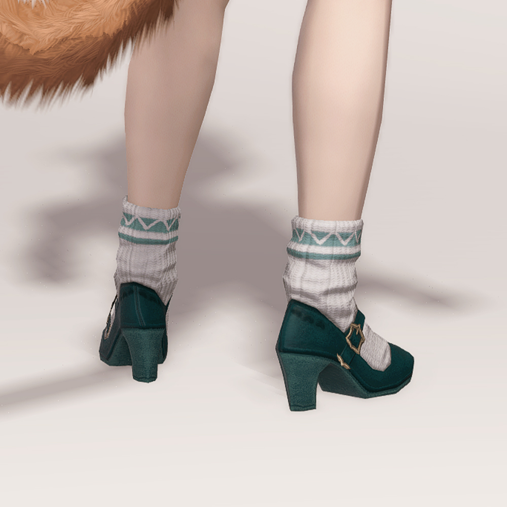 펌프스 느낌이 나면서도 발등 스트랩에 의해서 메리제인 구두스러운 느낌도 나는 구두입니다. 주름 접힌 양말은 루즈삭스 또는 레그워머가 생각납니다. 디자인이 워낙 예쁘게 잘 나와 다양하게 활용할 수 있으며 비슷한 느낌의 대체 아이템으로는 메이드 구두, 개척자 구두를 추천드립니다.