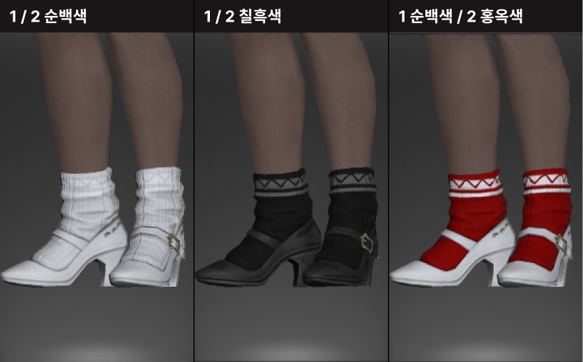 1염색 시 버클과 양말의 흰색 부분을 제외한 전부 염색됩니다. 양말의 무늬는 염료색보다 연하게 염색됩니다. / 2염색 - 패턴을 제외한 베이스 양말색이 염색됩니다.