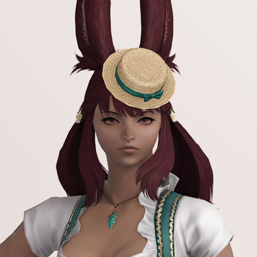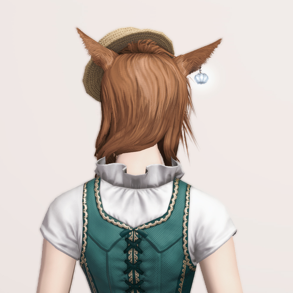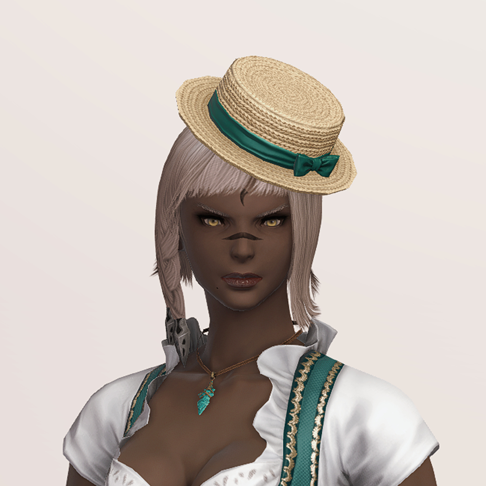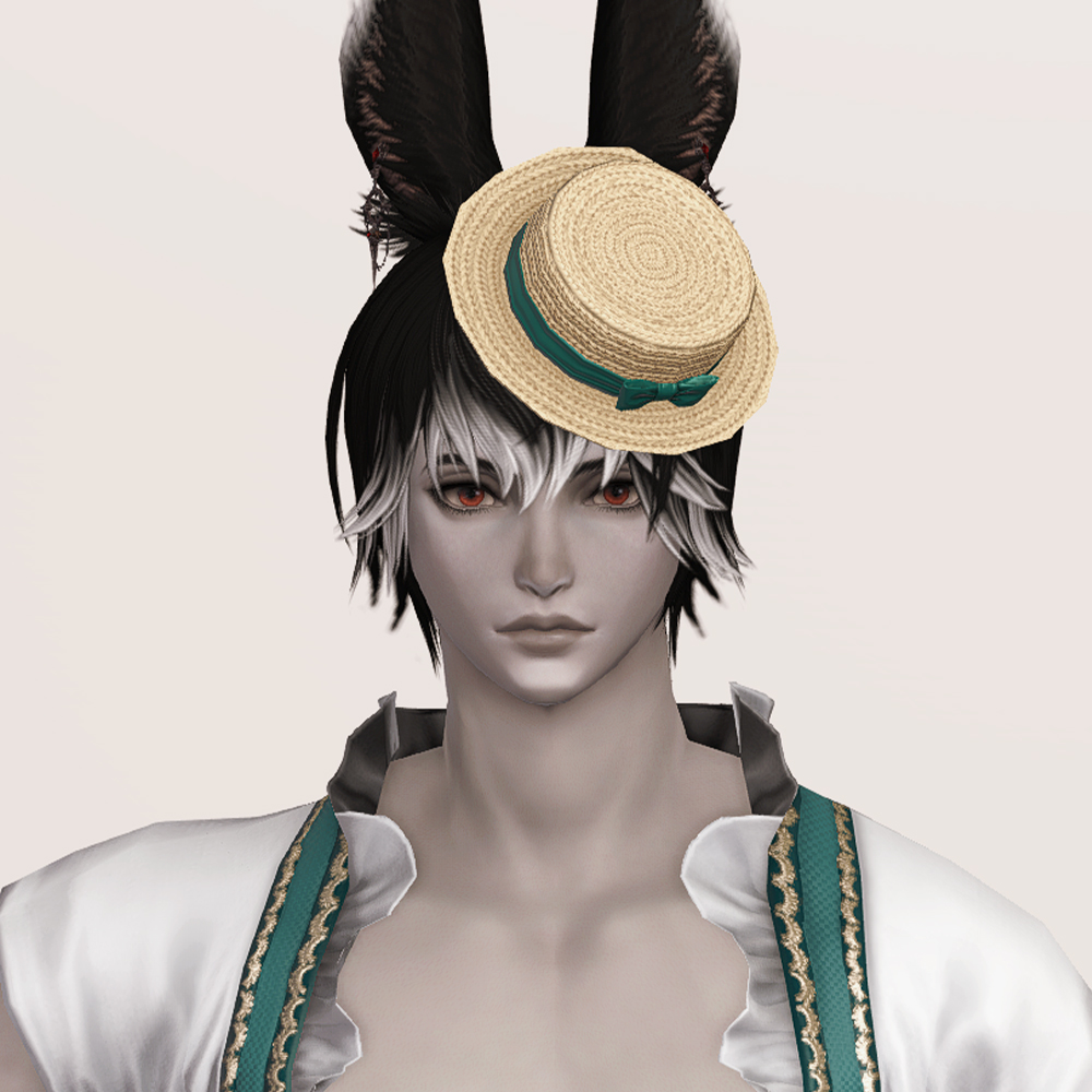밀짚으로 만들어 리본으로 포인트를 준 귀여운 캉캉 모자입니다. 일반적인 모자와 다르게 살짝 걸쳐 비스듬히 씁니다. 개척자 드레스와 매치하면 잘 어울려 추천드립니다.