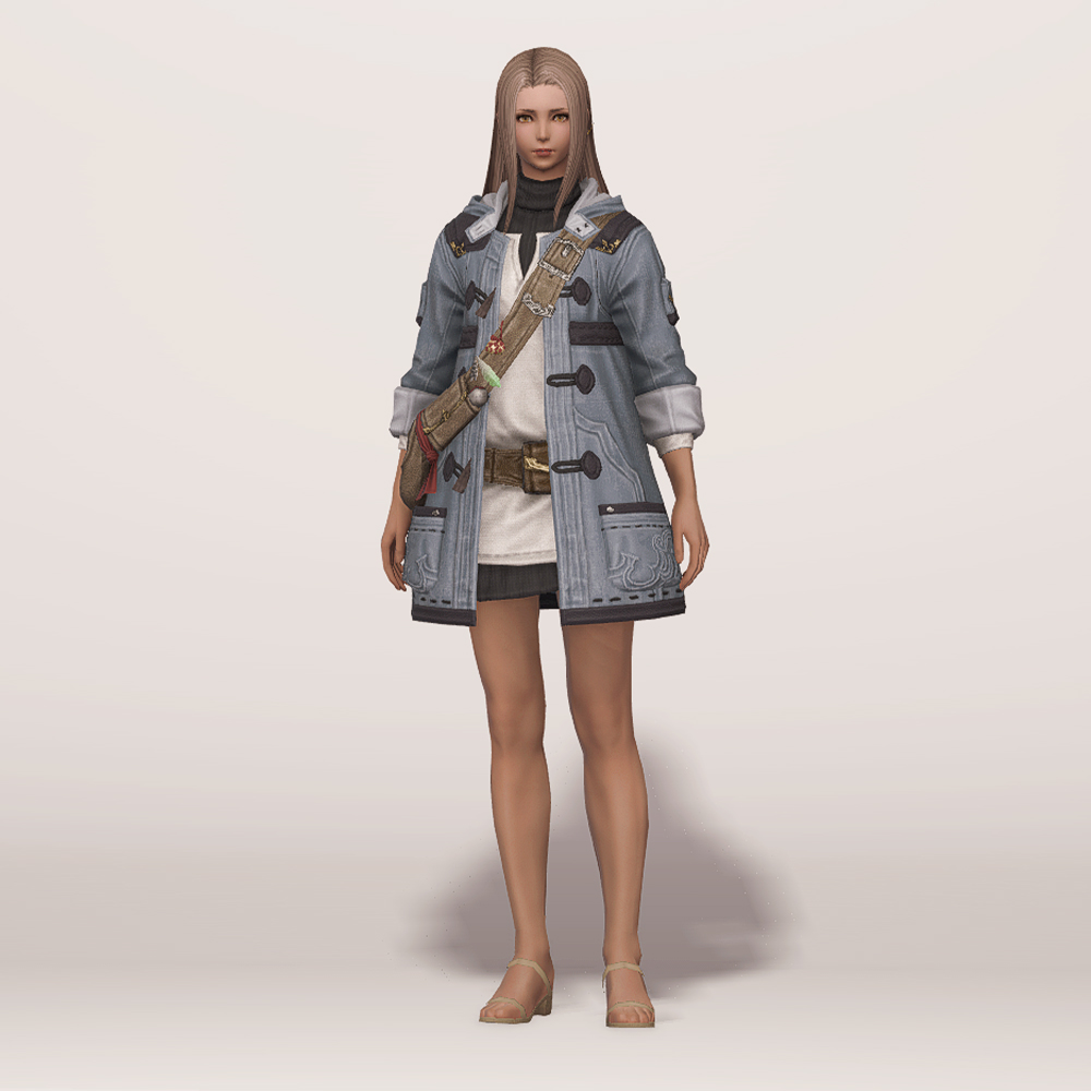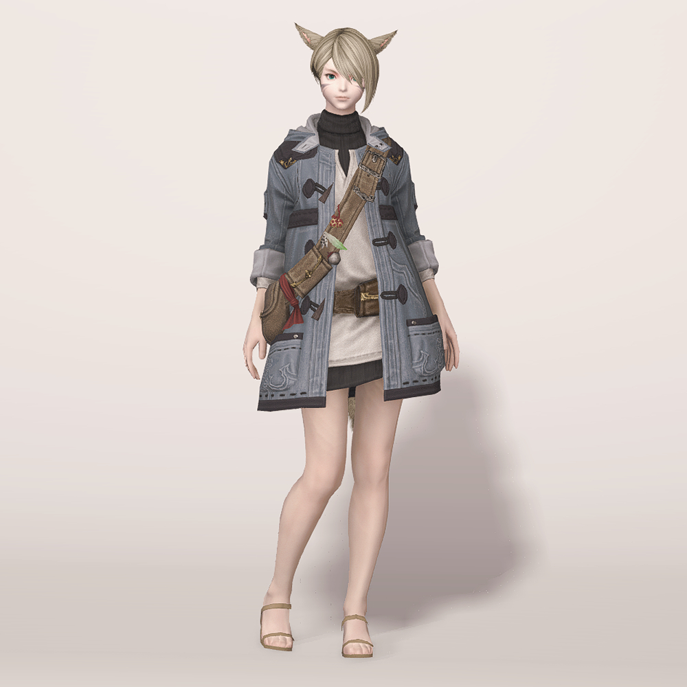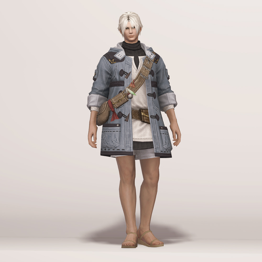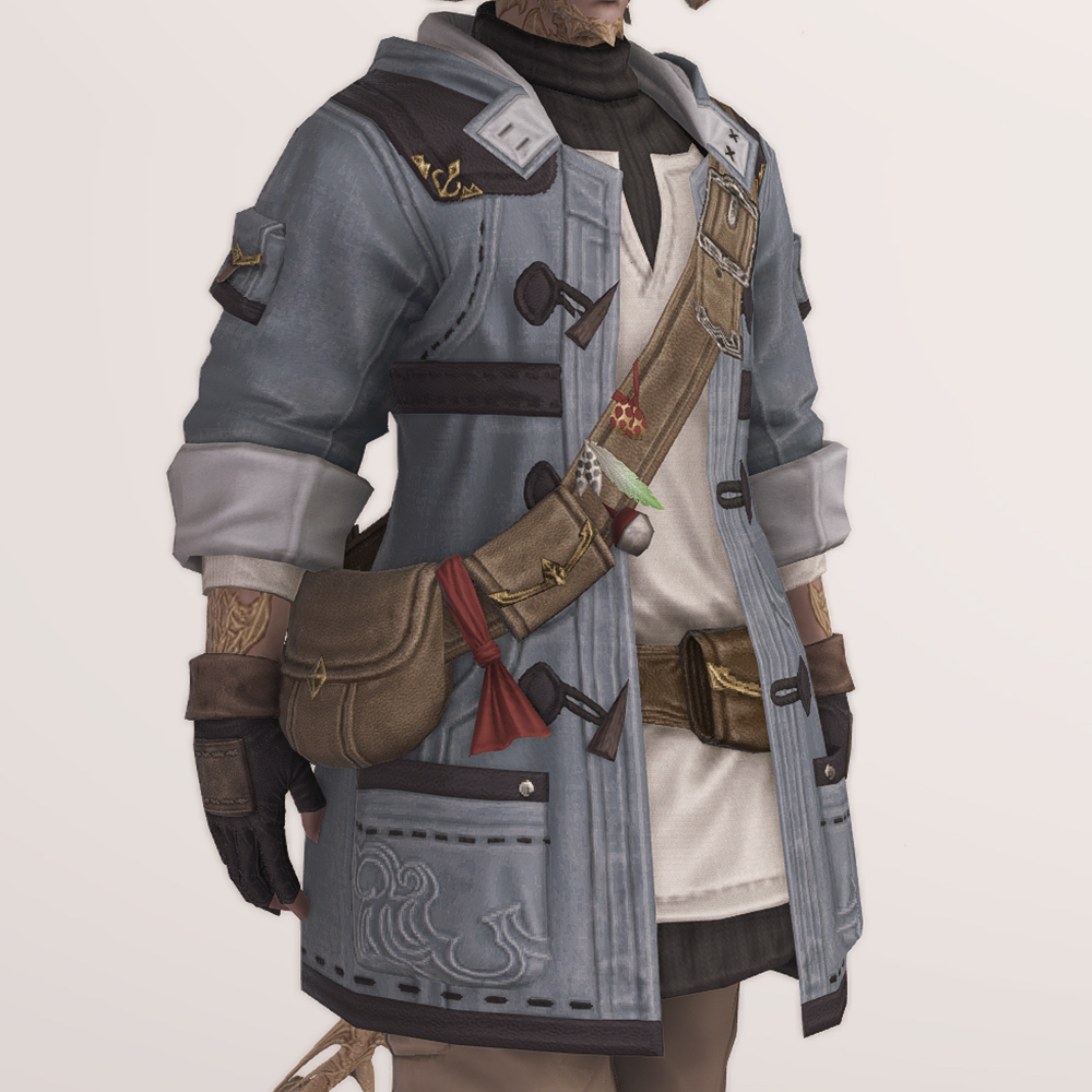 떡볶이 코트와 터틀넥의 조합이 귀여운 현대풍 상의입니다. 전체적으로 스티치가 귀엽게 포인트로 들어갔으며 주머니와 크로스백, 웨이스트백 등 수납공간이 많은 것이 특징입니다. 크로스백 끈에 루어가 줄줄이 매달려 있는 것을 제외하고는 어부 옷이라는 느낌이 적어 캐주얼하게 사복으로 입을 수 있습니다. 평화주창자 나팔바지, 캐주얼 반바지, 개척자 바지 등 현대풍이나 스티치가 들어간 하의와 매치하면 잘 어울려 추천드립니다.