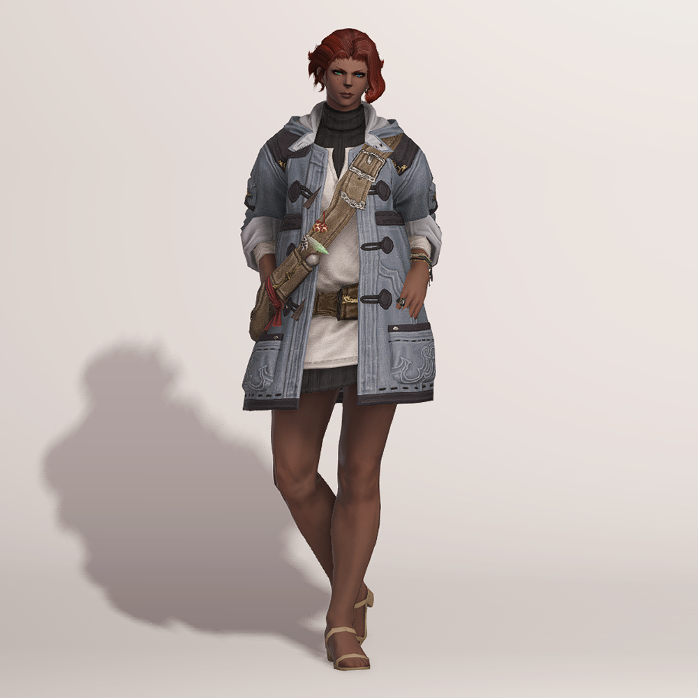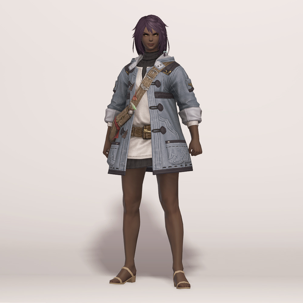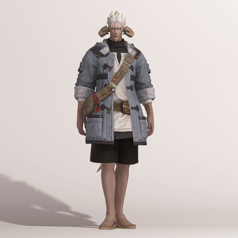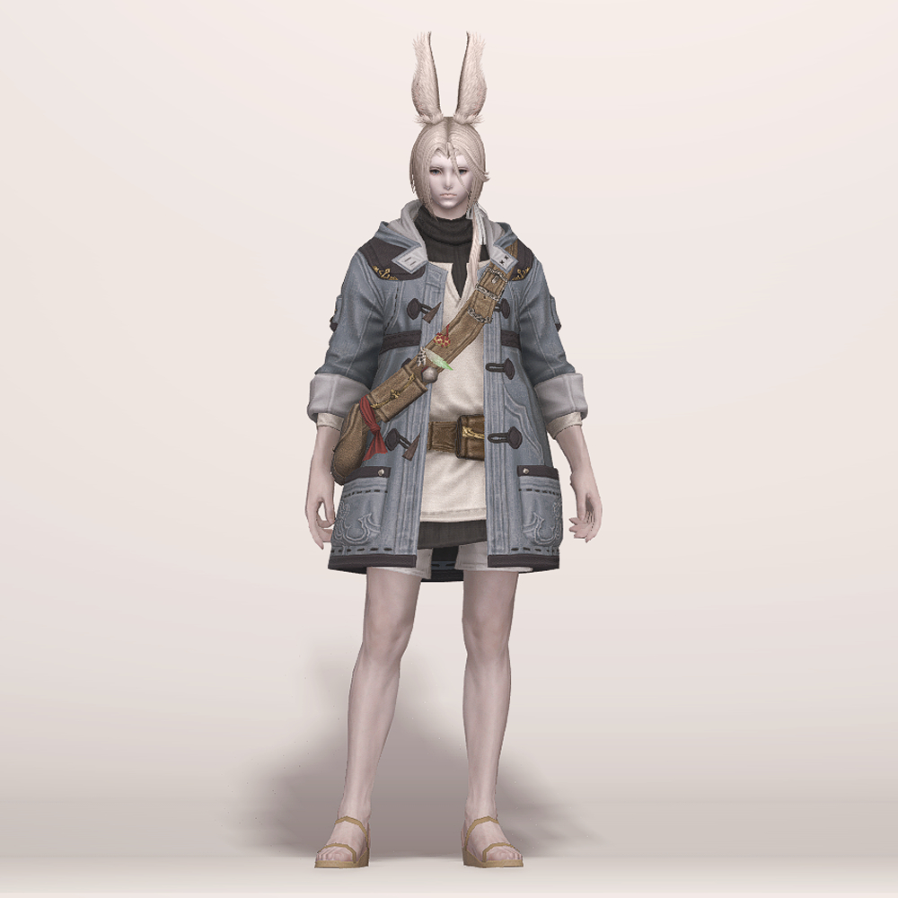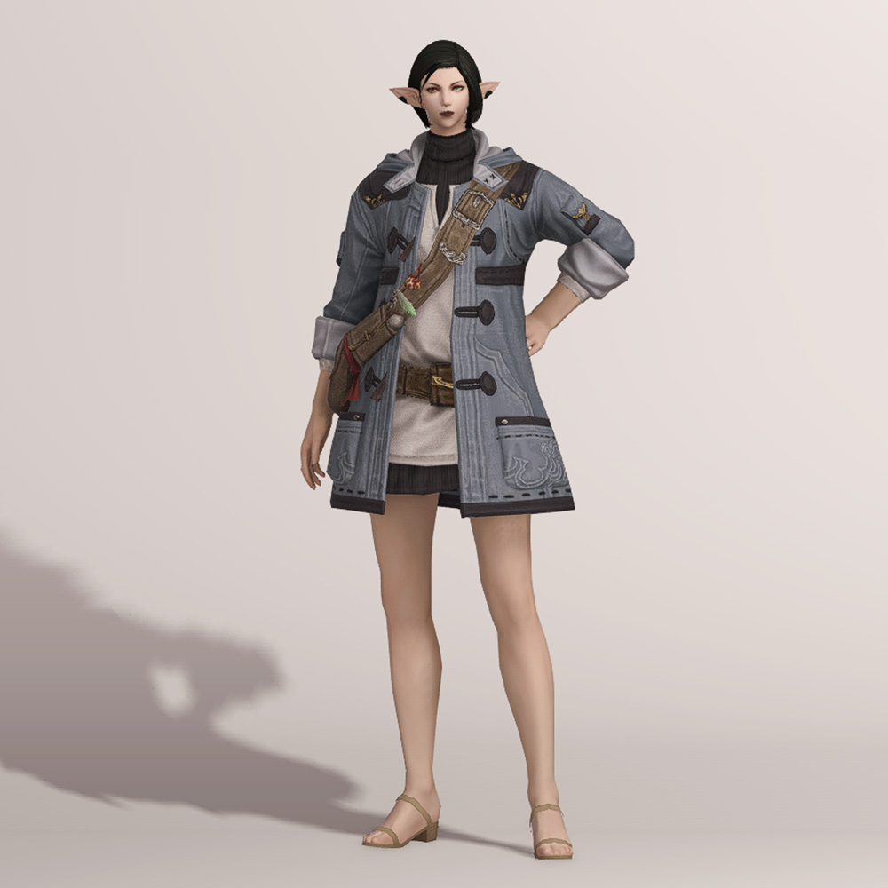 떡볶이 코트와 터틀넥의 조합이 귀여운 현대풍 상의입니다. 전체적으로 스티치가 귀엽게 포인트로 들어갔으며 주머니와 크로스백, 웨이스트백 등 수납공간이 많은 것이 특징입니다. 크로스백 끈에 루어가 줄줄이 매달려 있는 것을 제외하고는 어부 옷이라는 느낌이 적어 캐주얼하게 사복으로 입을 수 있습니다. 평화주창자 나팔바지, 캐주얼 반바지, 개척자 바지 등 현대풍이나 스티치가 들어간 하의와 매치하면 잘 어울려 추천드립니다.