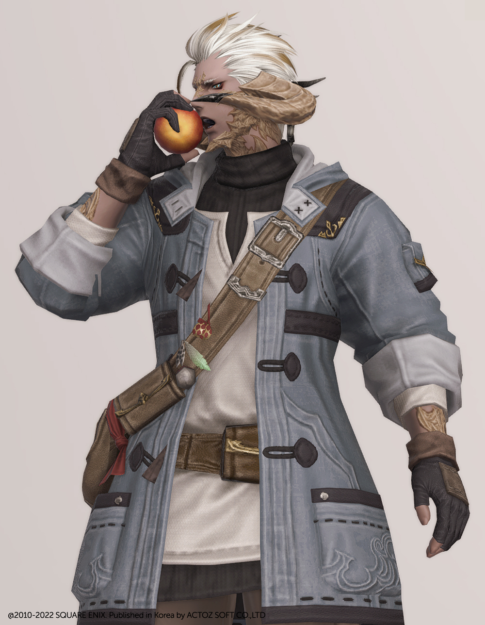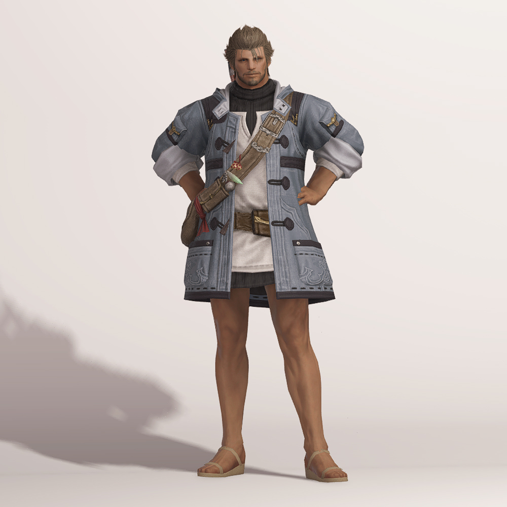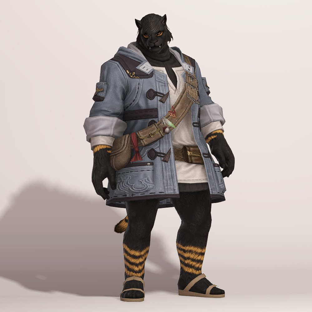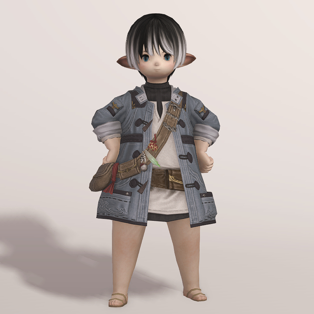 떡볶이 코트와 터틀넥의 조합이 귀여운 현대풍 상의입니다. 전체적으로 스티치가 귀엽게 포인트로 들어갔으며 주머니와 크로스백, 웨이스트백 등 수납공간이 많은 것이 특징입니다. 크로스백 끈에 루어가 줄줄이 매달려 있는 것을 제외하고는 어부 옷이라는 느낌이 적어 캐주얼하게 사복으로 입을 수 있습니다. 평화주창자 나팔바지, 캐주얼 반바지, 개척자 바지 등 현대풍이나 스티치가 들어간 하의와 매치하면 잘 어울려 추천드립니다.