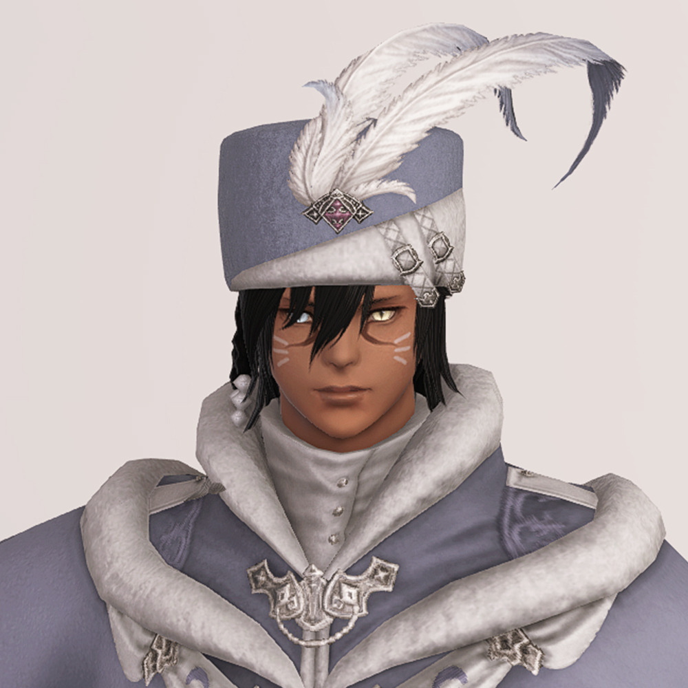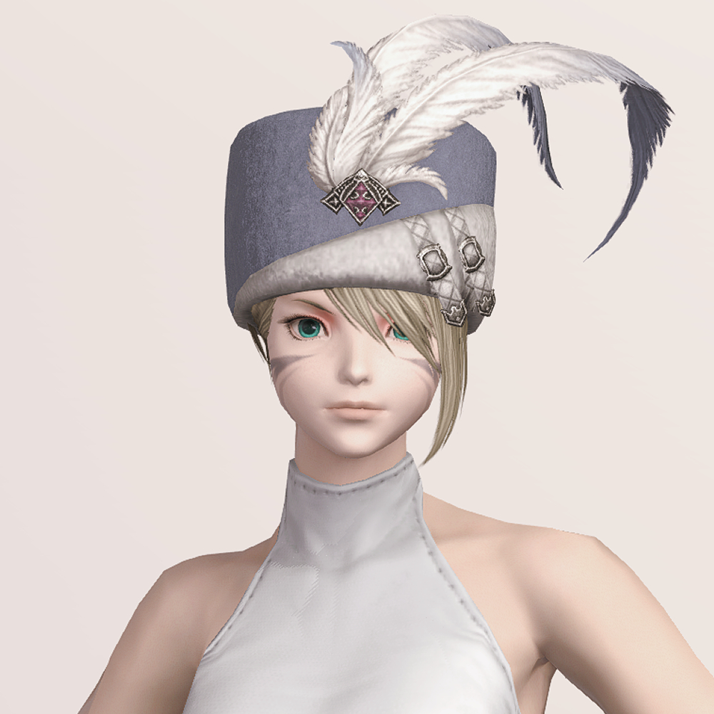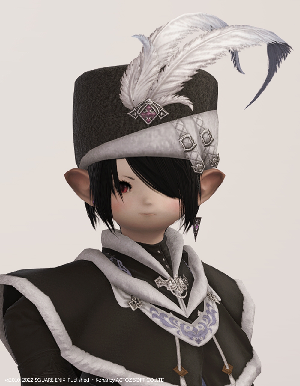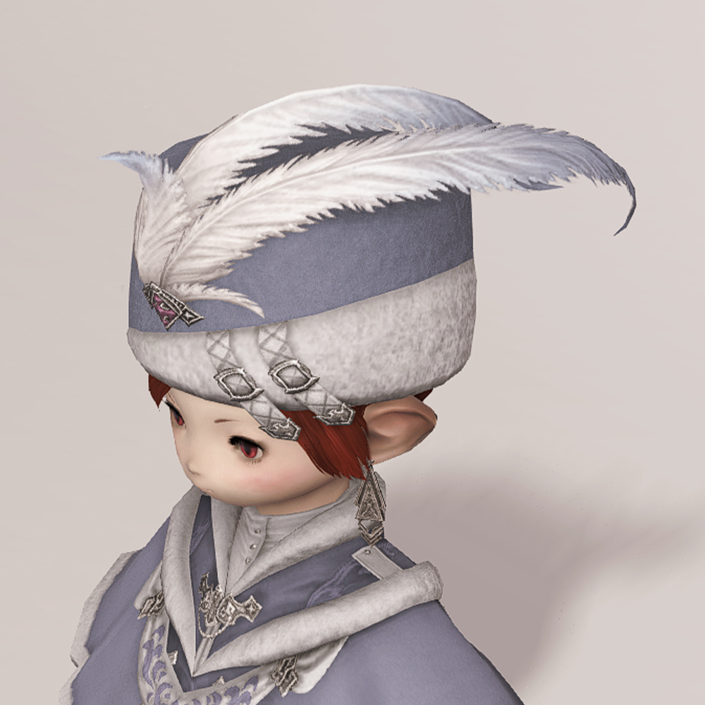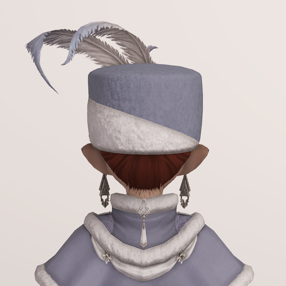 고급스러운 깃장식이 달린 보들보들한 재질의 통모자입니다. 아래로 스트랩으로 마무리한 부분이 캐주얼한 느낌을 가미하여 고급스러움과 캐주얼한 두가지 매력을 동시에 챙겼습니다. 스칼라/사이가 모자가 여름용 정복모자였다면, 겨울에는 궁정 유격대 통모자로 방한과 기품을 동시에 챙길 수 있겠습니다.