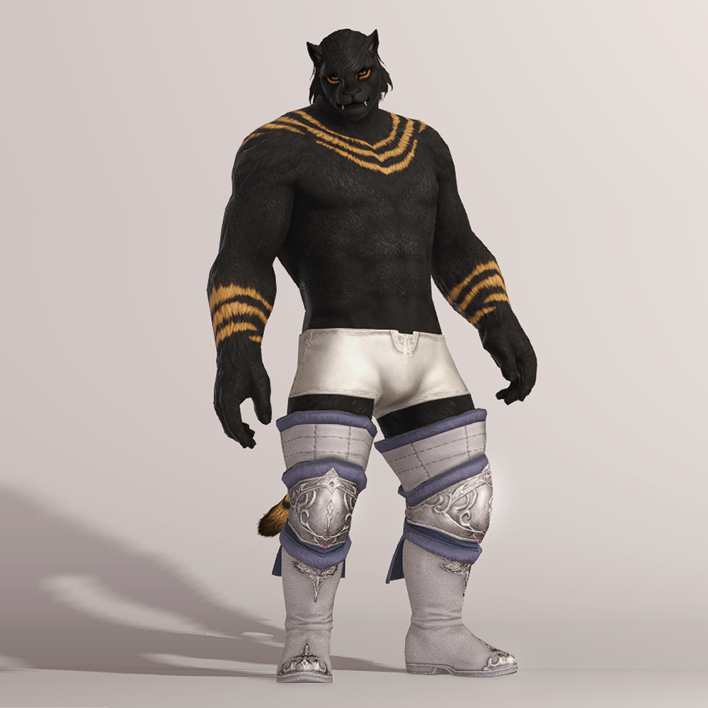 허벅지와 무릎의 털 장식과 무릎 안쪽에 위치한 천이 흰색입니다. 염색 부위는 동일합니다.