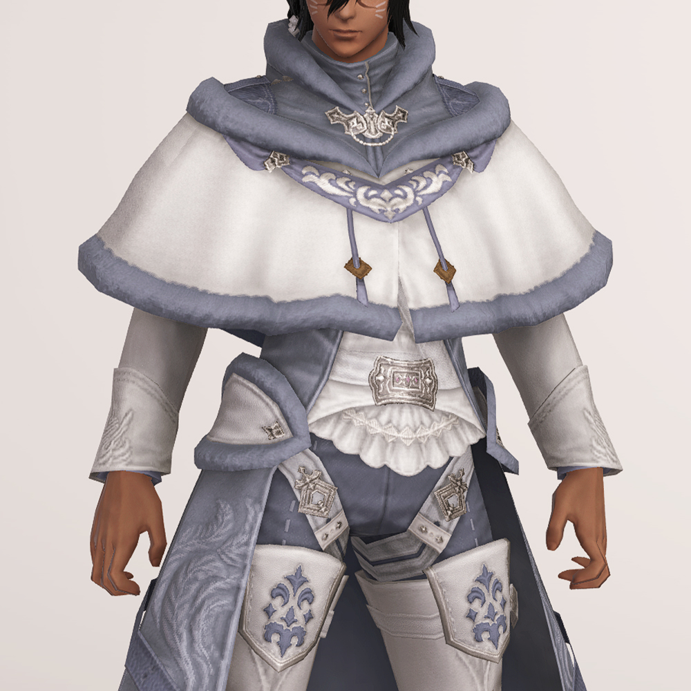 포근포근한 케이프에 고급스러운 문양이 새겨져 겨울철 정복을 연상하게 되는 외투입니다. 깔끔하게 마무리된 손목이나 뒤로 늘어진 장식등 꼼꼼하게 디테일을 신경 쓴 흔적이 있습니다. 좀 더 포근하게 마무리하고 싶다면 치유사나 마술사가 손모아 장갑으로 되어있는 점을 참고하세요.