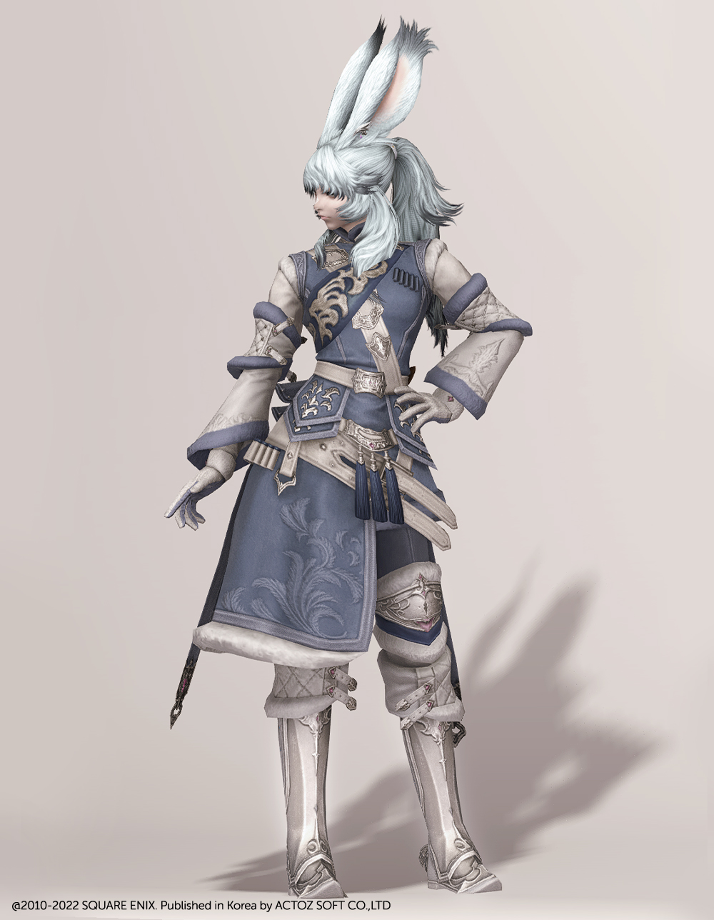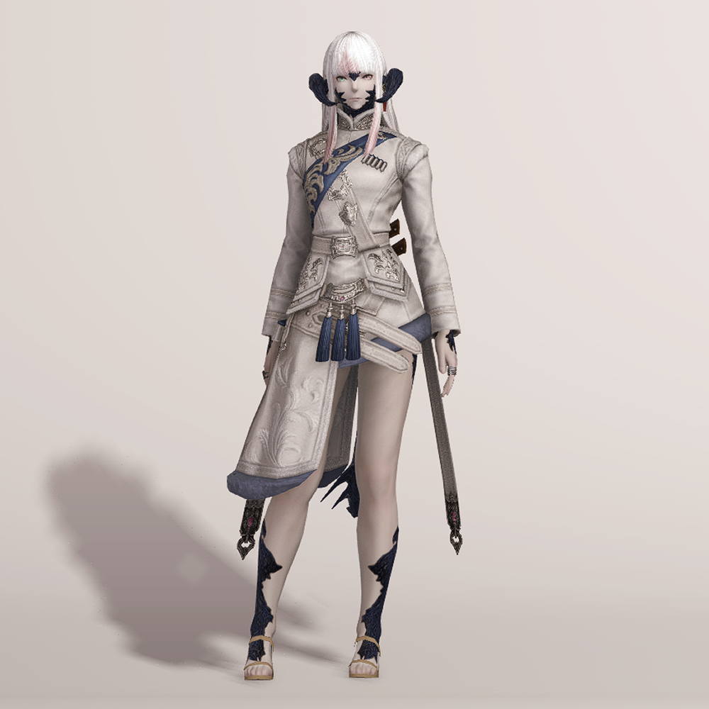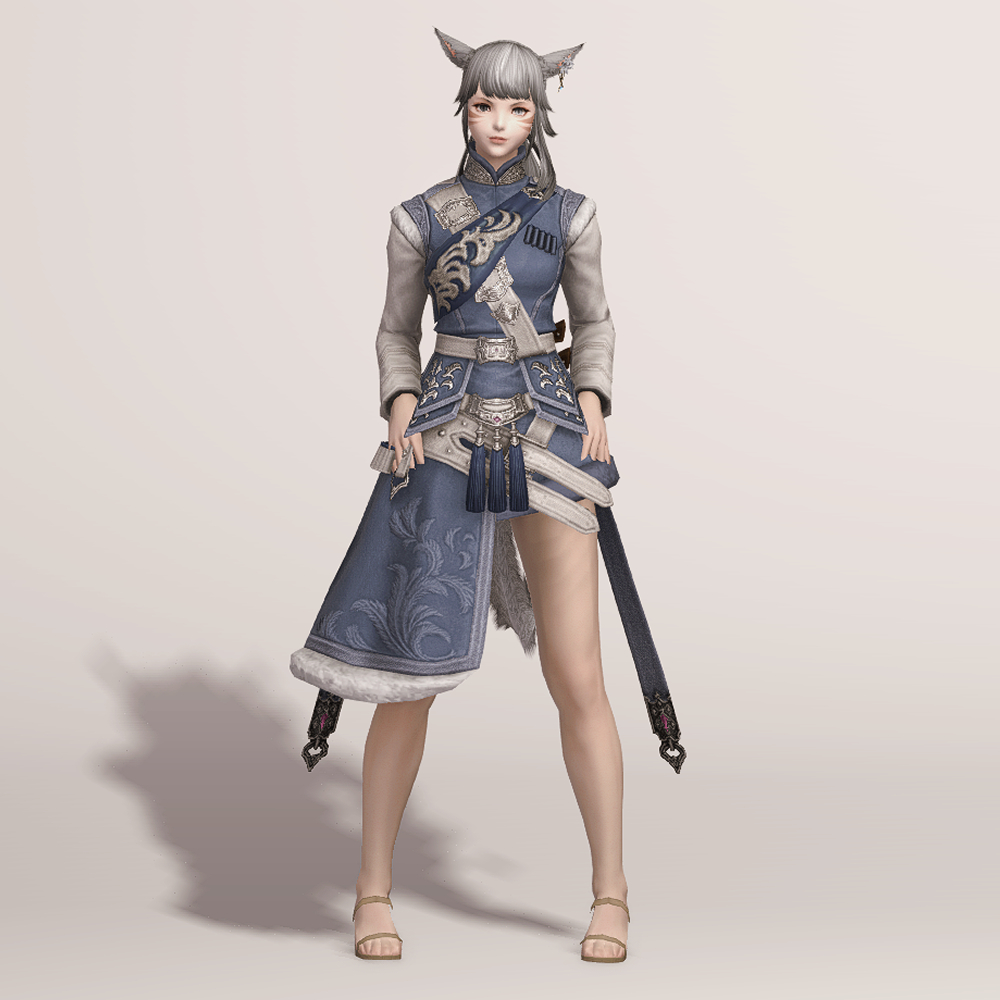 곳곳의 포근해 보이는 털 장식과 함께 고급스러운 문양이 새겨져 겨울철 정복을 연상하게 되는 외투입니다. 매서운 추위를 견딜 수 있도록 신경 썼으며, 전체적으로 디테일해 활동성을 고려했다는 것을 알 수 있습니다. 허리 뒤쪽의 나이프 2개와 함께 길게 내려온 스트랩이 눈에 띕니다.