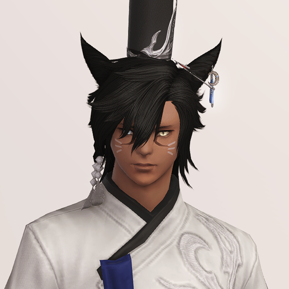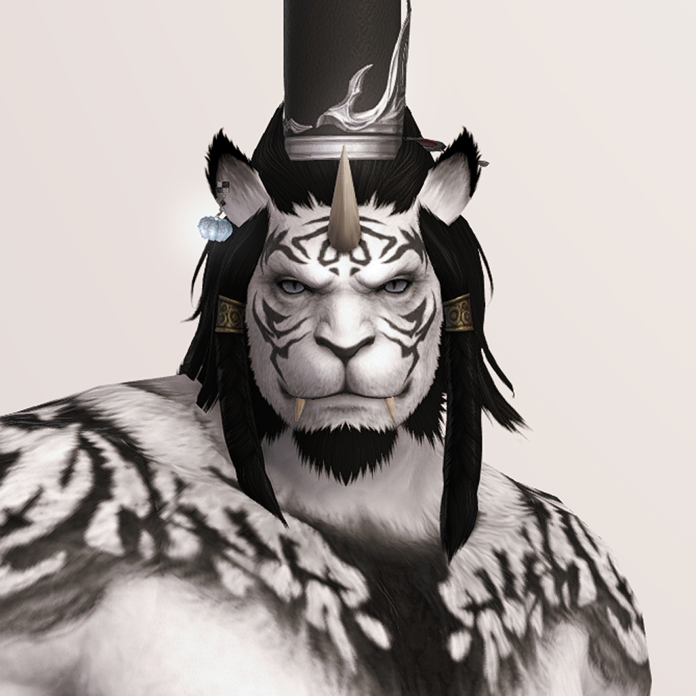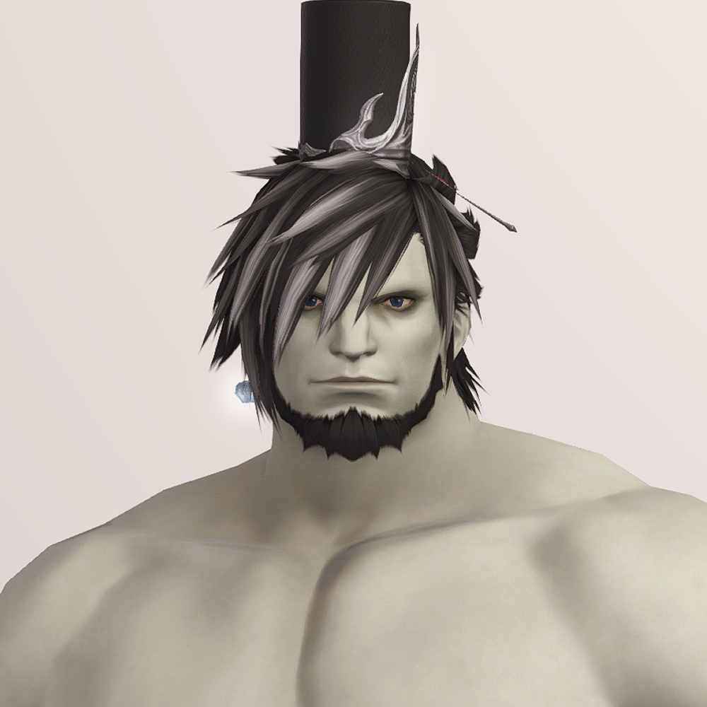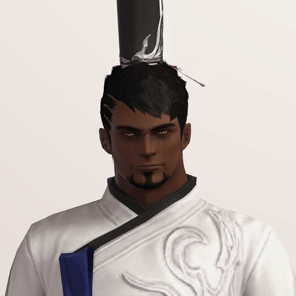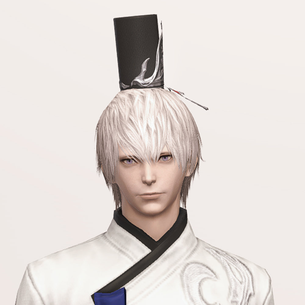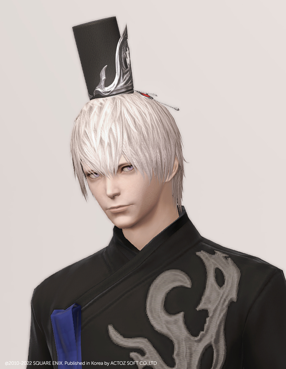 원통형으로 위가 높고 평평한 모양으로 되어 있어 전체적으로 실크햇과 유사하지만 챙이 없는 특이한 모자입니다. 구름이나 연기를 나타낸듯한 동양풍 무늬로 제작된 장식이 눈에 띕니다.