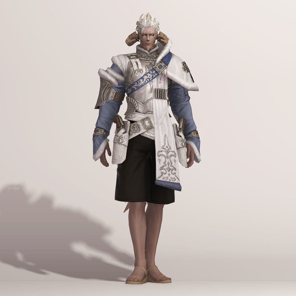 곳곳의 포근해 보이는 털 장식과 함께 고급스러운 문양이 새겨져 겨울철 정복을 연상하게 되는 상의입니다. 타 직군과 달리 흉갑과 어깨천을 덧대어 좀 더 방어력을 높인 모습입니다. 매서운 추위를 견딜 수 있도록 소매가 손등을 덮는 등 신경 썼으며, 전체적으로 디테일해 활동성을 고려했다는 것을 알 수 있습니다. 고급스러운 장식과 함께 길게 내려오는 긴 천 장식, 그리고 예비용 권총 2개가 예비 되어있는 것이 특징입니다. 깔끔한 하의와 같이 착용하여 상의가 화려한 느낌을 살리는 것도 좋겠습니다.
