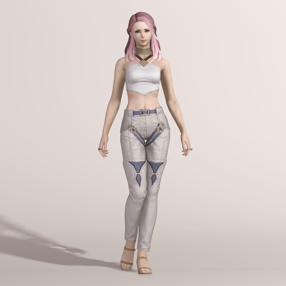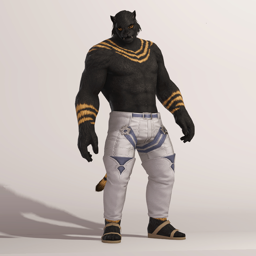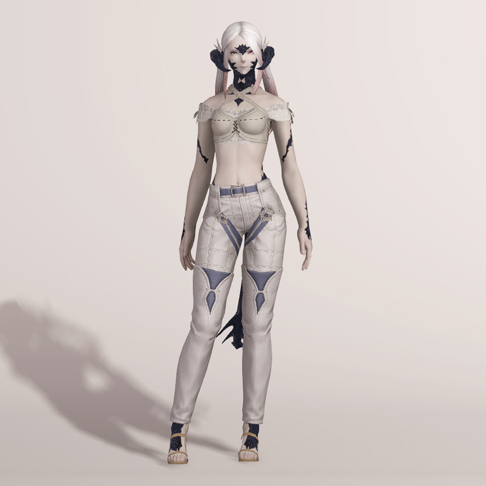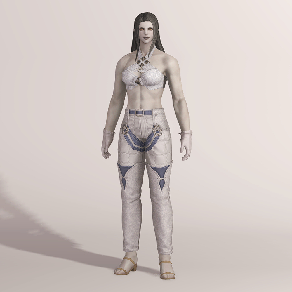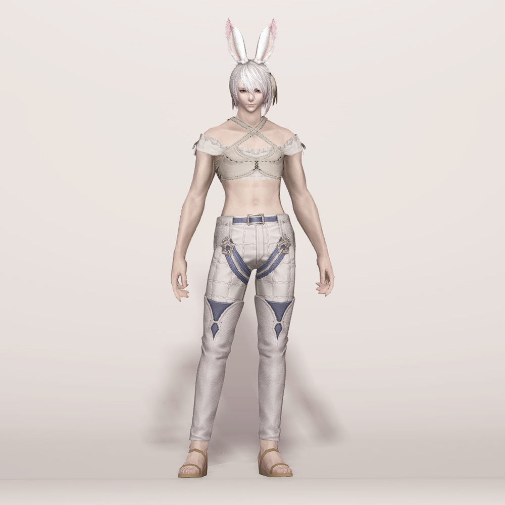 타 직업 궁정 하의들과 다르게 개성 있는 슬랙스입니다. 마치 모눈종이처럼 새겨진 격자무늬 스티치가 가장 먼저 눈에 띄며, 동시에 허리와 엉덩이에 덮인 가죽을 고정시켜주는 스트랩이 눈에 띕니다. 종아리도 아닌 허벅지까지 올라오는 가죽은 오버니부츠가 연상되며 추위를 이길 수 있을 정도로 두툼하지는 않지만, 질기고 정교해 최전선 앞에 나가 싸우는 학살자의 다리를 보호해 줍니다.