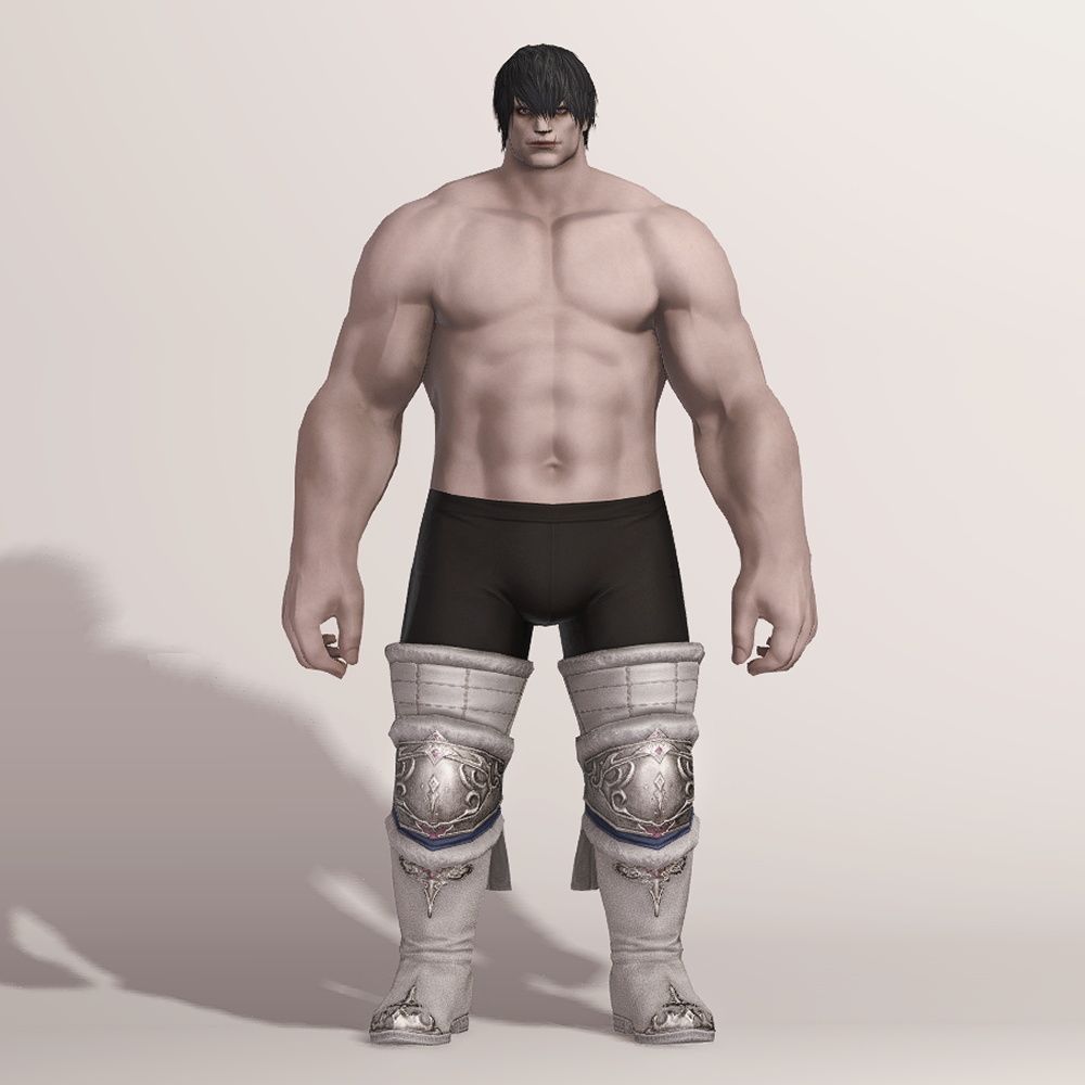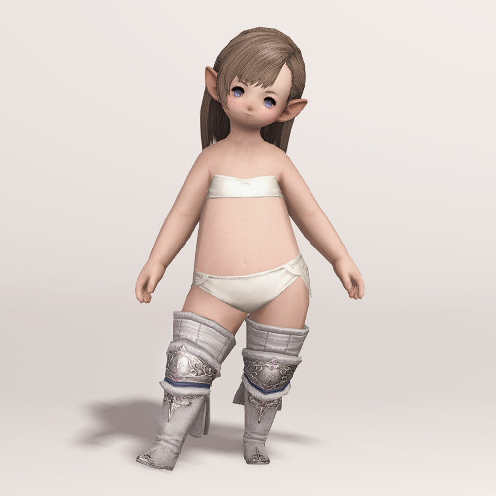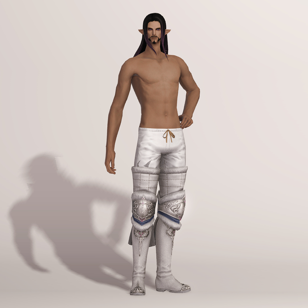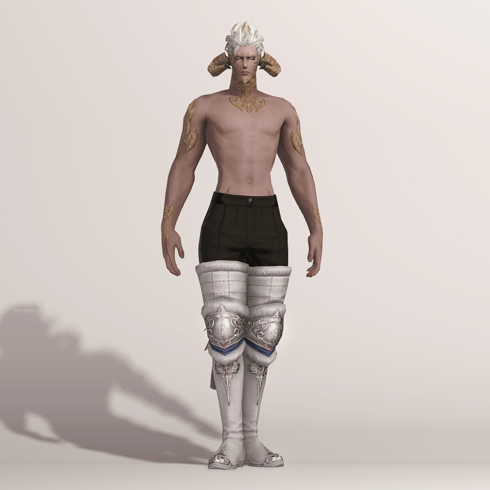 두툼하고 따뜻해 보이는 오버니부츠입니다. 무릎과 정강이, 발끝에 기품 있는 판타지풍 무늬가 디테일하게 새겨져 있어 고급스러워 보이며 마치 모눈종이처럼 새겨진 허벅지의 격자무늬 스티치가 눈에 띕니다. 이대로 입어도 좋지만 너무 두툼하고 화려해 부담스럽다고 느끼신다면 도회풍 장화, 악마의 허벅지장화 순백색의 조합을 추천드립니다.