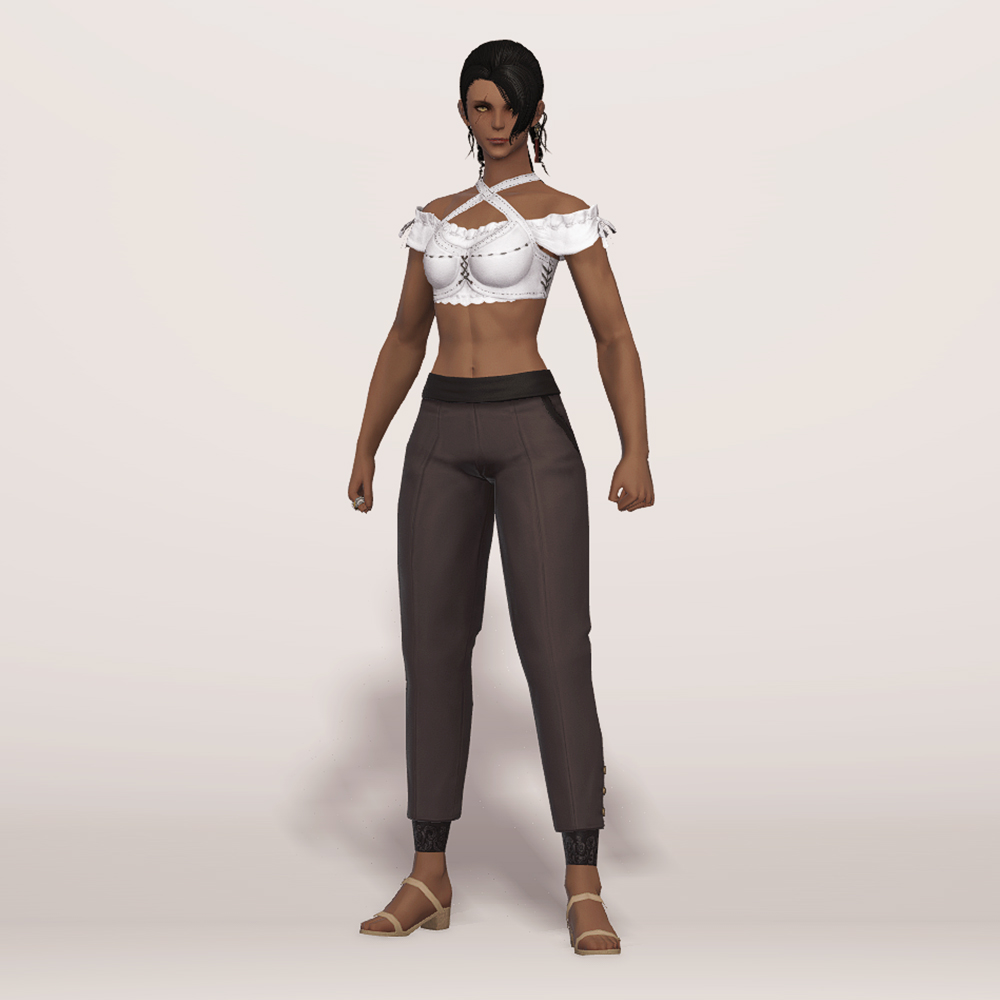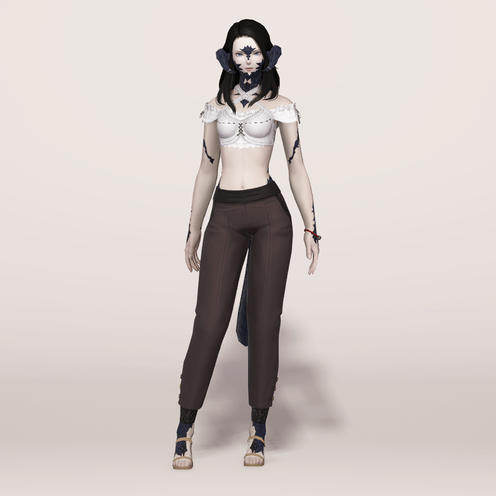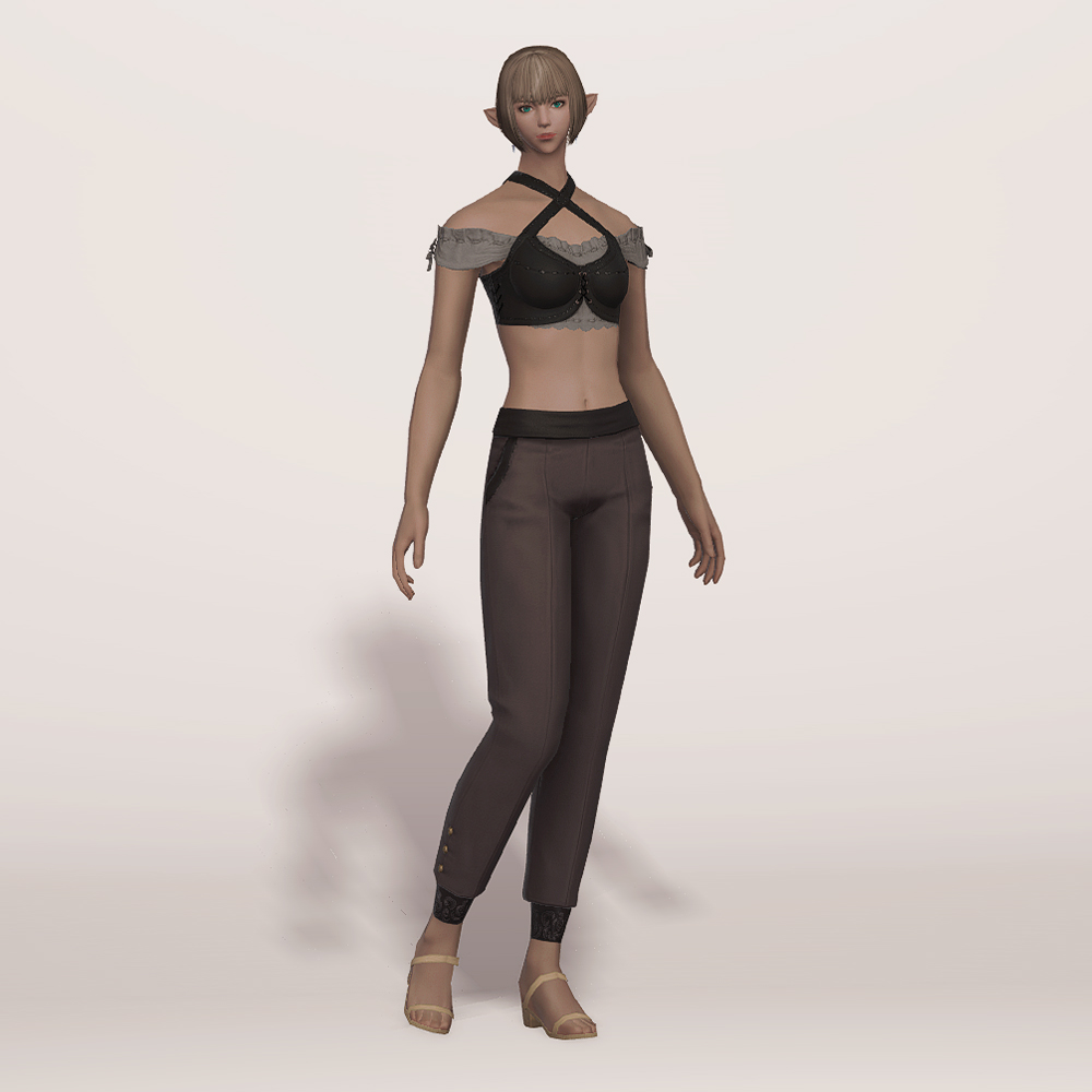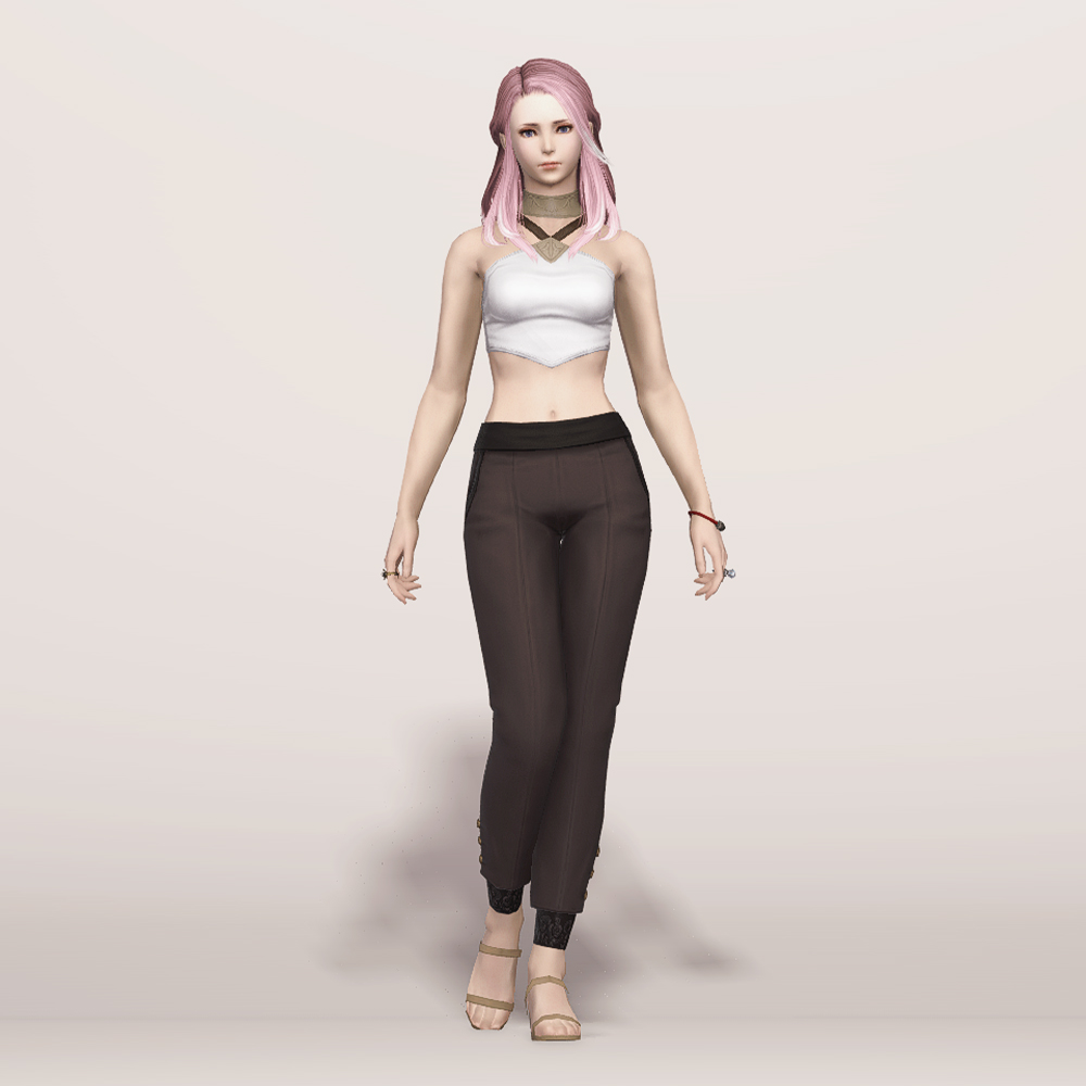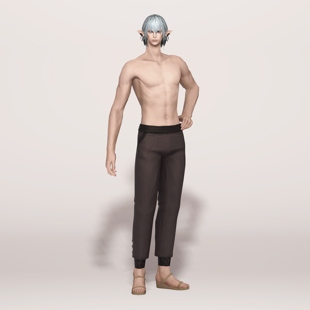 깔끔하고 예쁜 핏의 슬랙스입니다. 바지 밑단을 시보리 처리해 발목을 감싸고 있는 모습을 보면 조거팬츠 느낌도 납니다. 쓰리 버튼과 함께 동양풍스러운 발목의 자수가 포인트지만 호불호가 조금 갈리는 편입니다. 발목이 거슬리는 분들은 에오르제아 교복 로퍼: 장목양말 등과 같이 발목을 완전히 가려줄 수 있는 부츠나 워커 계열의 신발과 매치하시는 것을 추천드립니다.