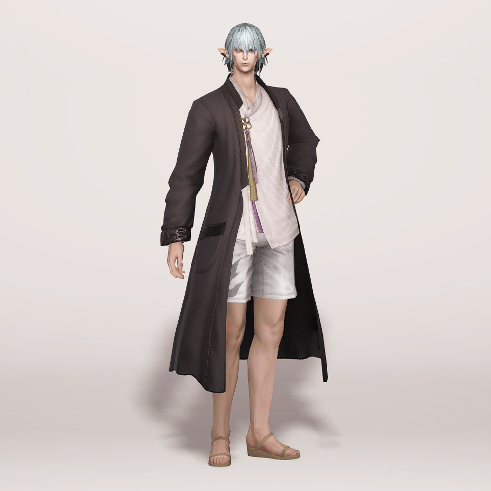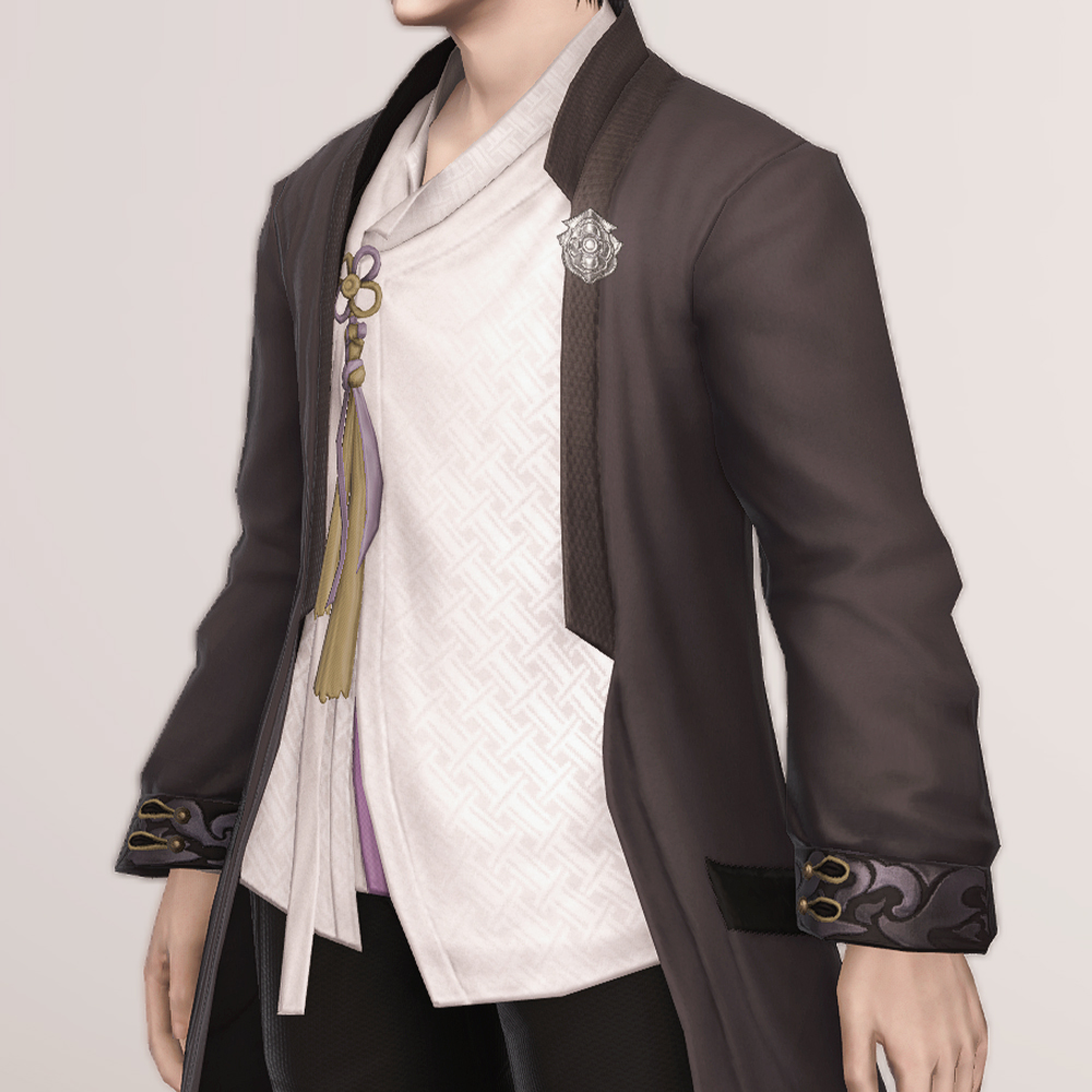 전통 문양을 본뜬 투톤 노리개 장식과 함께 고급스러운 자수 소매와 금장 단추의 조화가 디테일하면서도 아름다운 모던 한복입니다. 겉에 걸친 두루마기 덕분에 동작이 크고, 몸을 많이 움직이는 탱커나 딜러가 착용하면 펄럭거리는 옷깃이 너무 멋있어 추천드립니다.