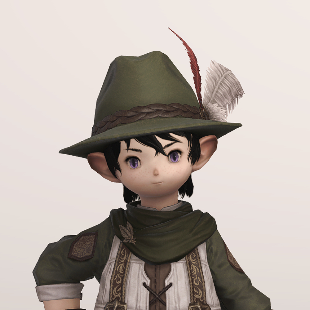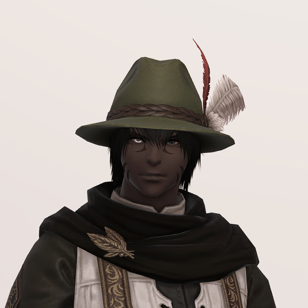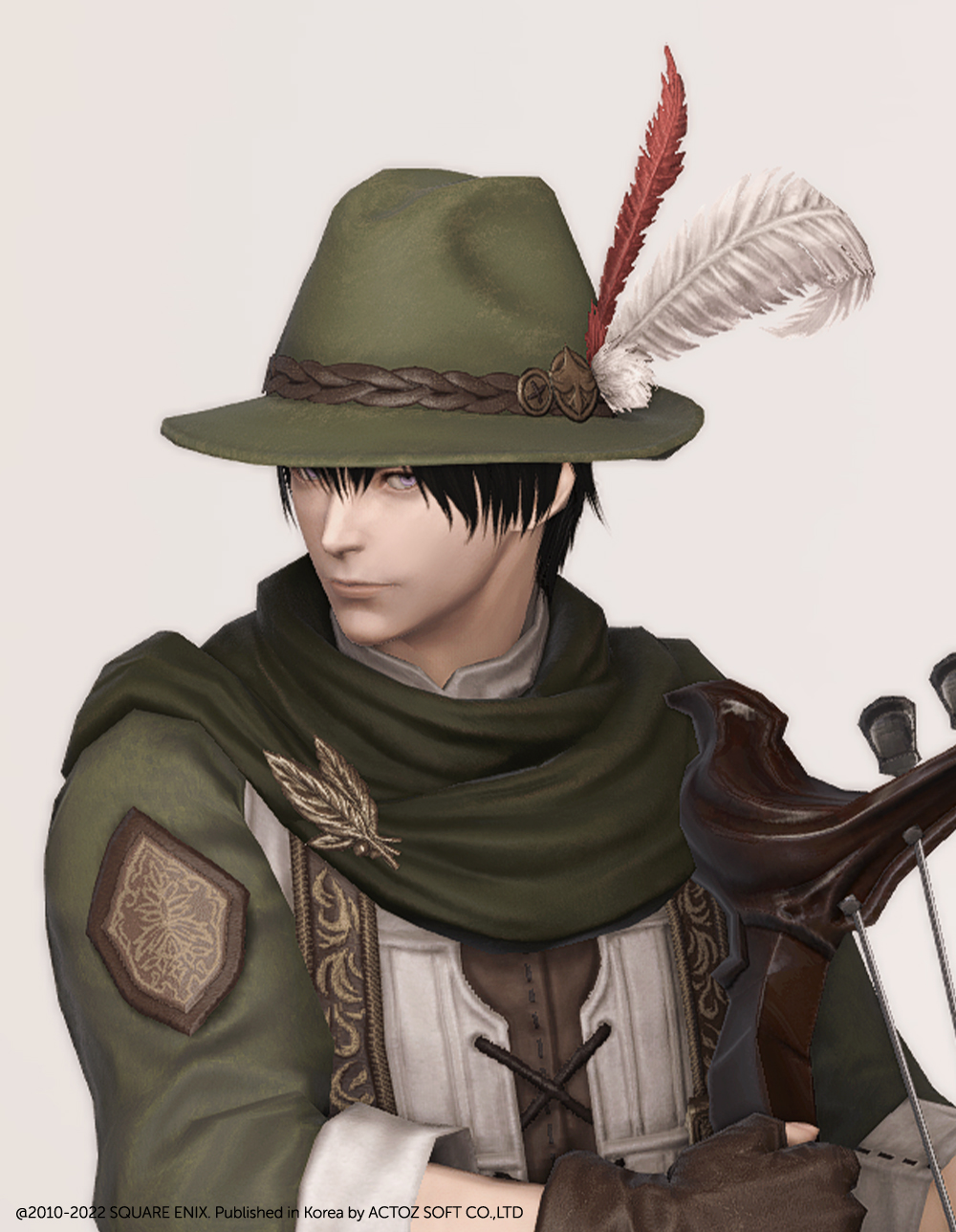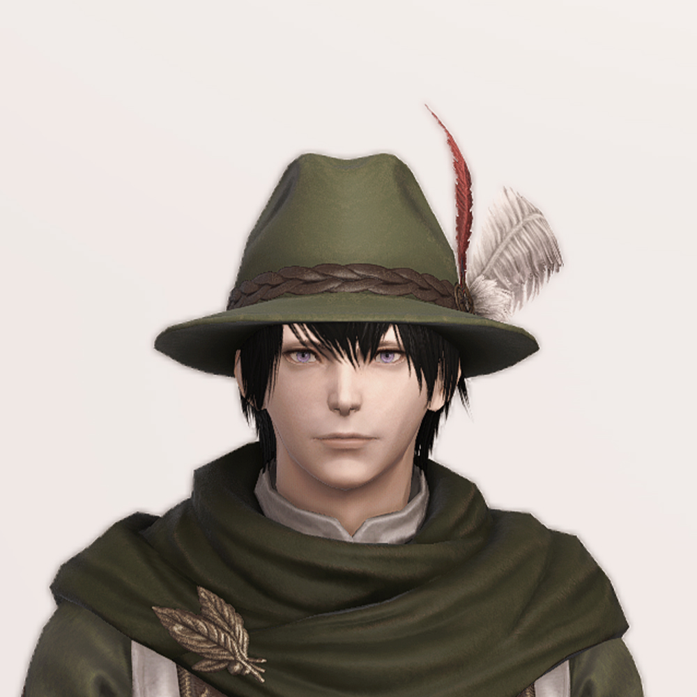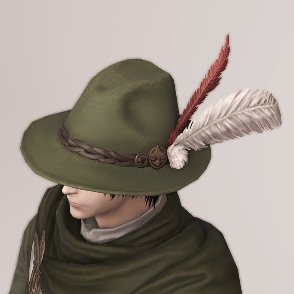 게임/판타지 속 음유시인이 쓸 법한 느낌의 깔끔하고 예쁜 중절모입니다. 사용감이 느껴지며 붉은색과 흰색 깃털이 포인트로 눈에 띄어 전체적으로 로빈 후드가 떠오릅니다. 좀 더 현대적이고 모던한 스타일의 대체 중절모 아이템으로는 성스러운 무지개 중절모, 동방 무신 모자, 문객 모자를 추천드립니다.