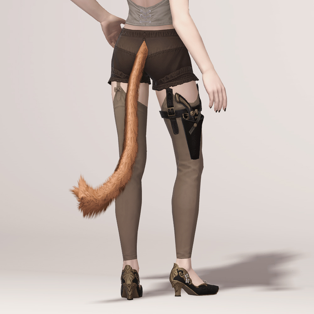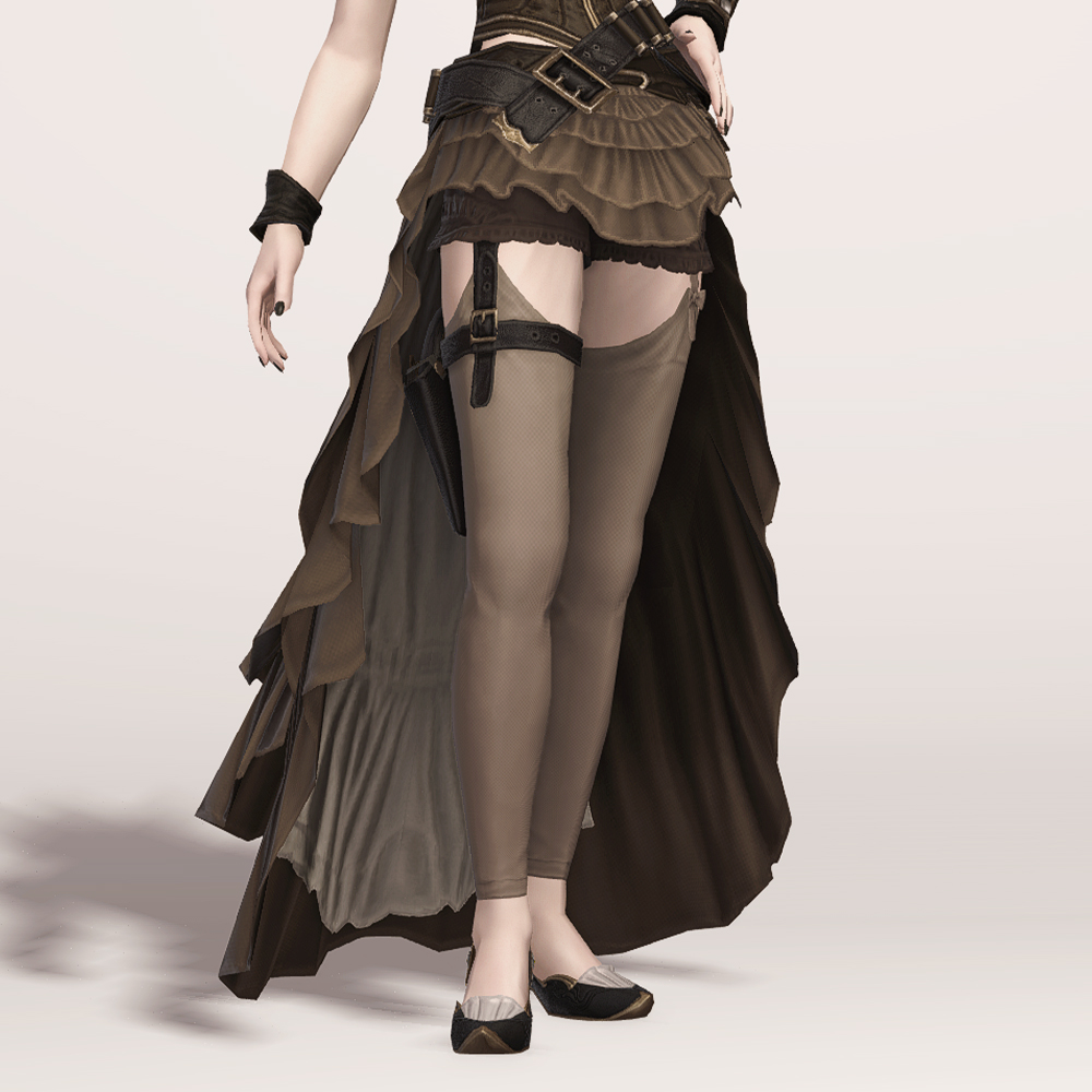 전체적으로 신이슈가르드 타격대 하의와 유사한 디자인으로 배꼽 아래 리본과 밑단이 호박바지처럼 약간 부풀어져 있는 귀여운 하의입니다. 속바지 느낌의 디자인으로 보는 사람을 기준으로 오른쪽 허벅지에는 리본 가터벨트가 흘러내리지 않도록 오버니삭스를 붙잡아 주고 있으며, 왼쪽 허벅지에는 가터링 벨트와 함께 권총으로 추정되는 무기가 꽂혀져 있습니다.