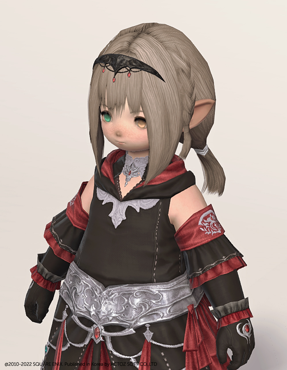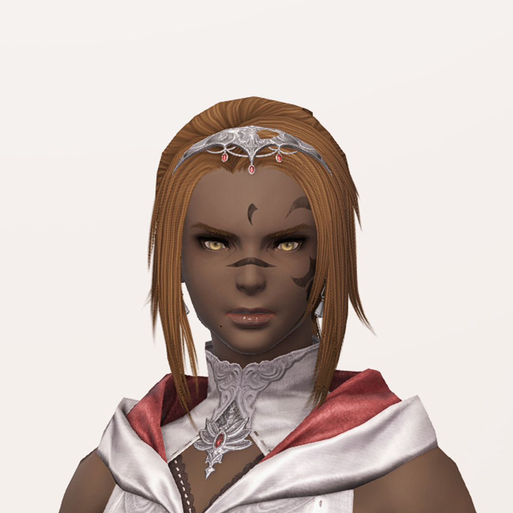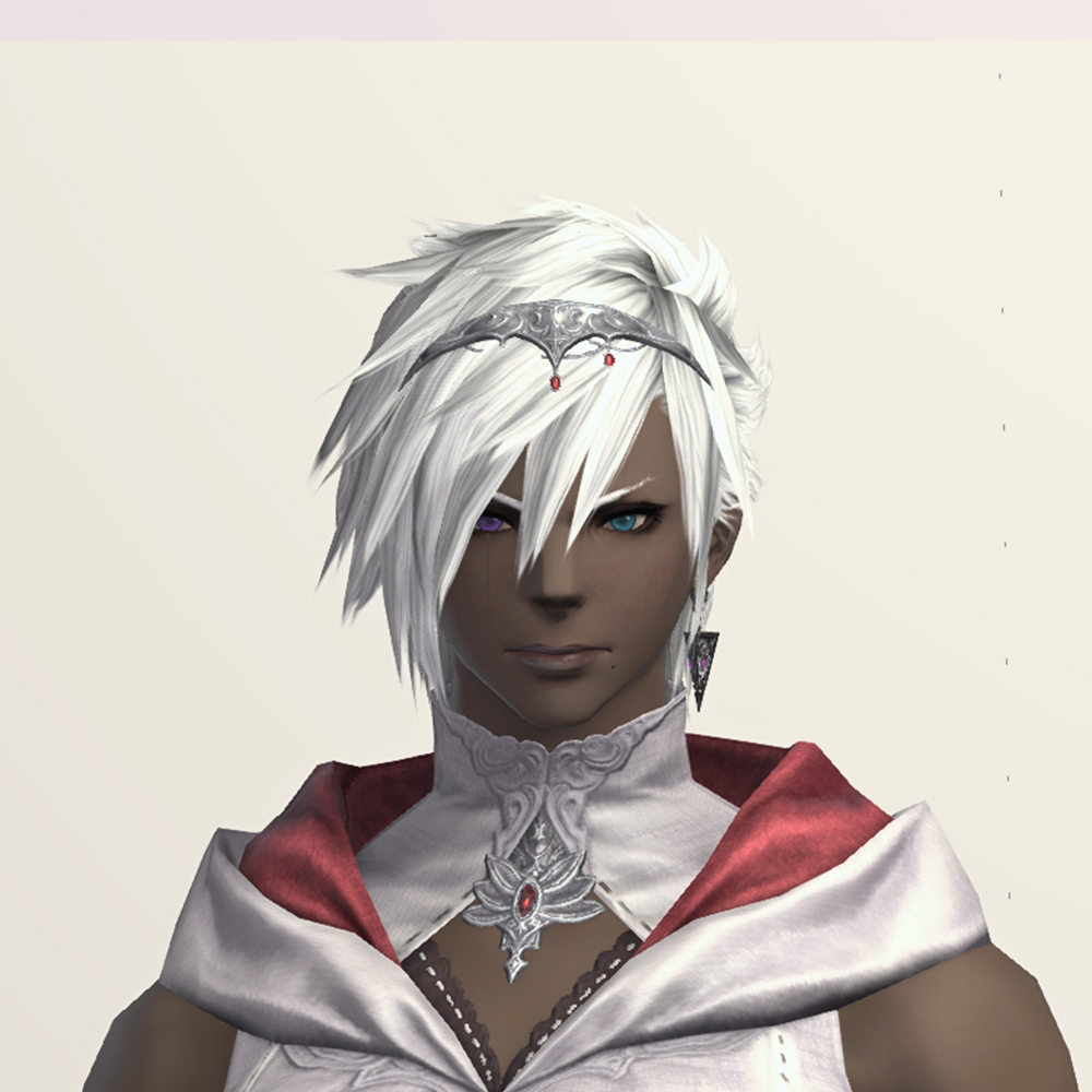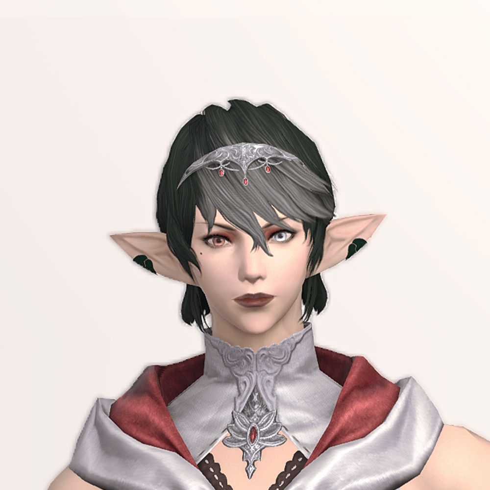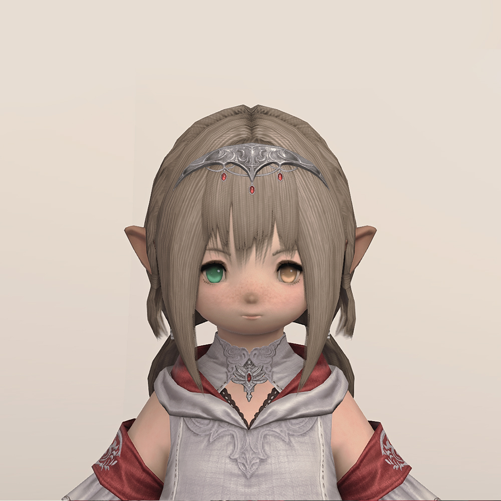 머리띠같은 심플한 실루엣에 루비장식이 섬세하게 장식된 고급스러운 서클릿입니다. 여캐는 머리띠 부분에, 남캐는 이마 부분에 위치해있습니다. 전체적인 느낌은 비슷하나 남캐가 살짝 더 심플한 디자인입니다.