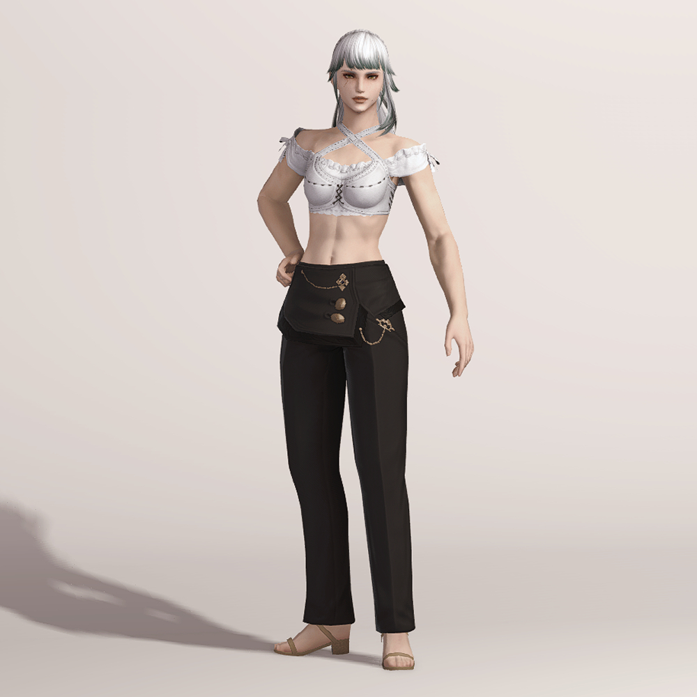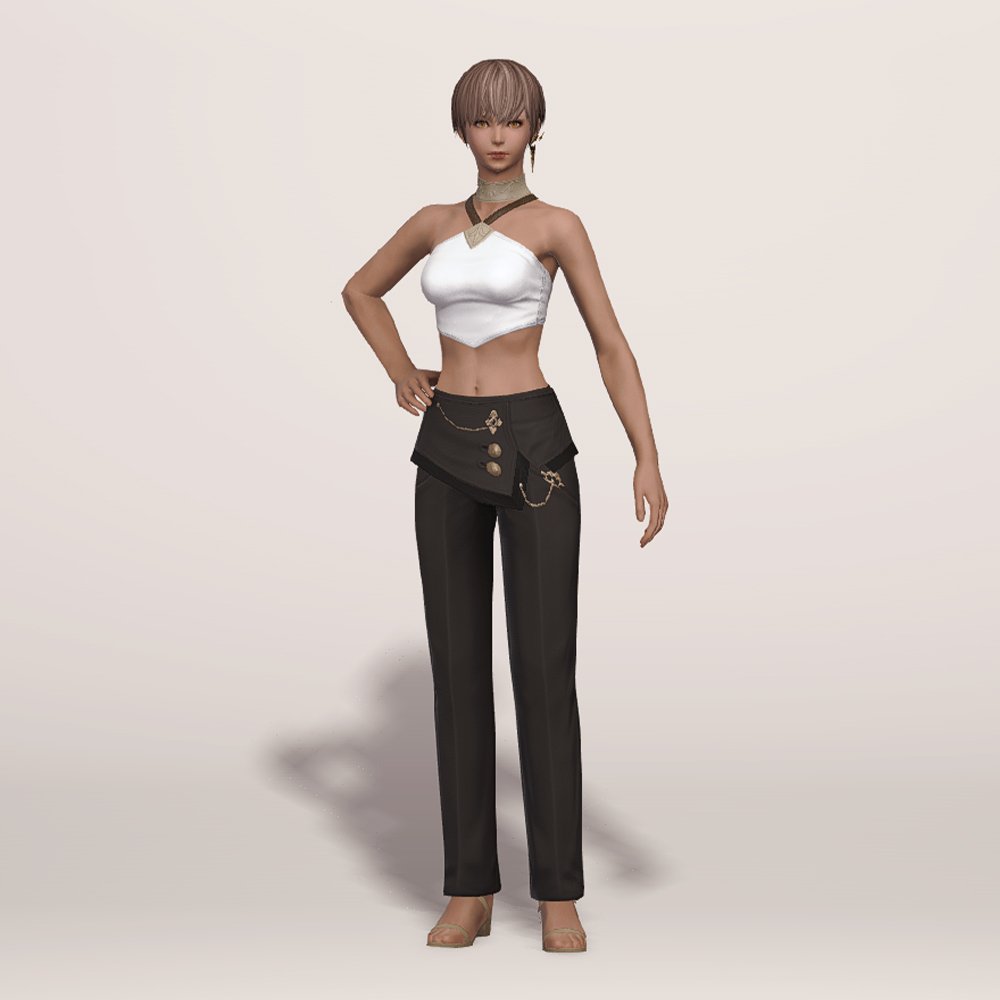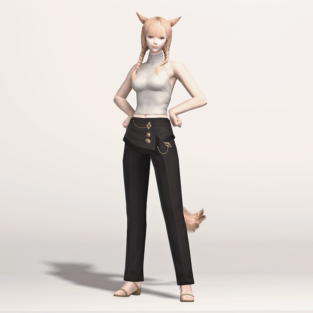 깔끔하고 예쁜 핏을 자랑하는 슬랙스입니다. 허리의 덧댄 천 위로 단추와 함께 고급스러운 금장 장식이 포인트로 들어가 세련되었습니다. 허리나 엉덩이를 약간이라도 덮을 수 있는 상의와 매치할 경우 덧댄 천과 장식들이 사라져 깔끔한 슬랙스만 만나보실 수 있습니다.