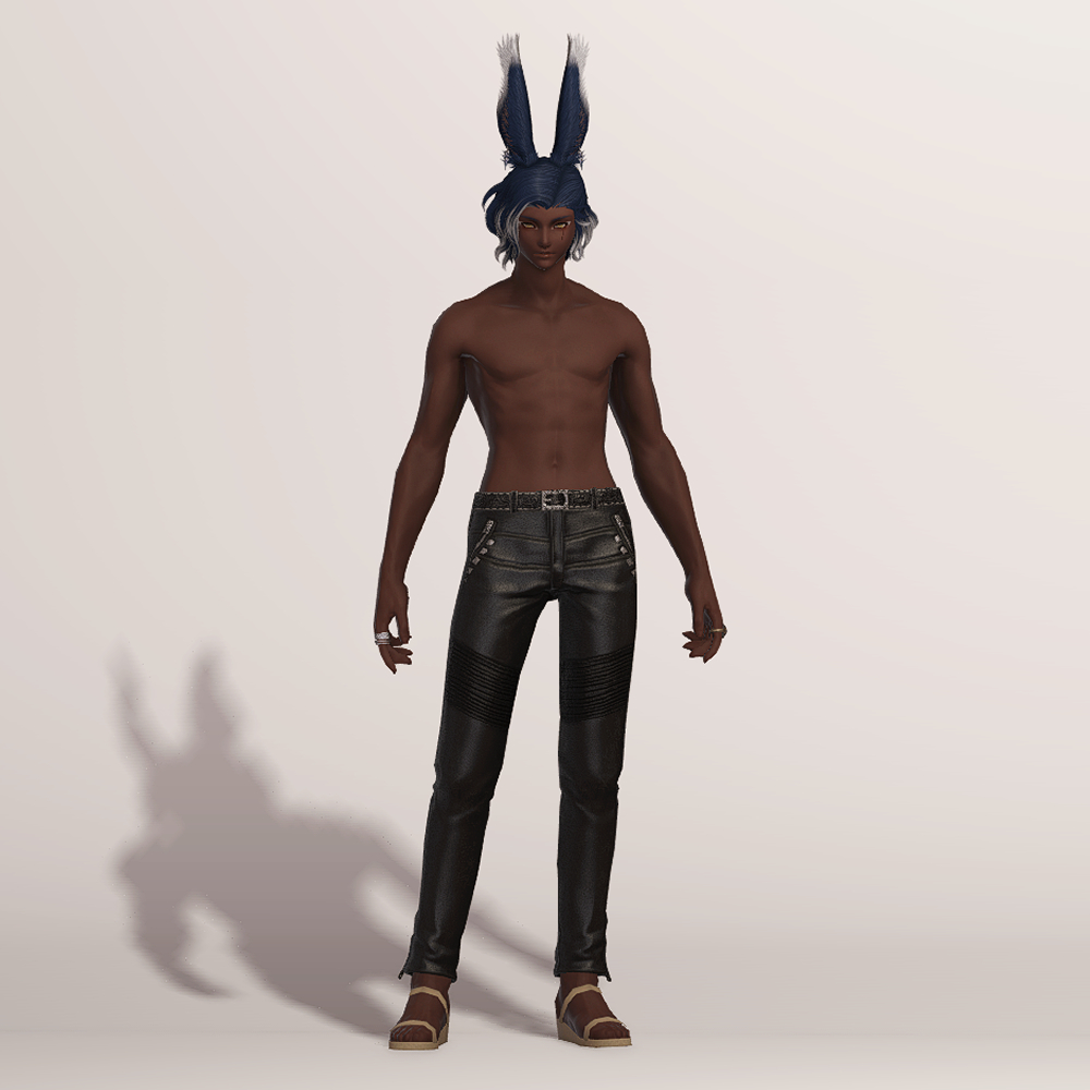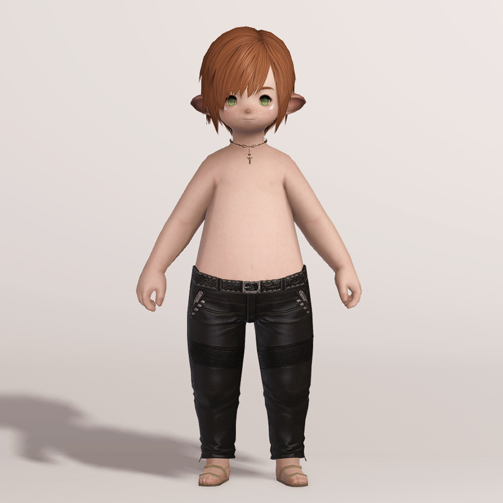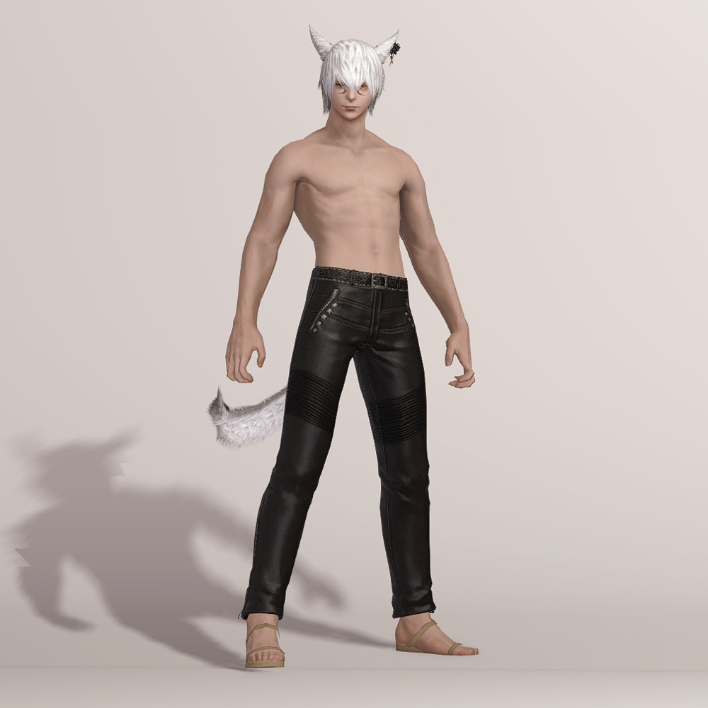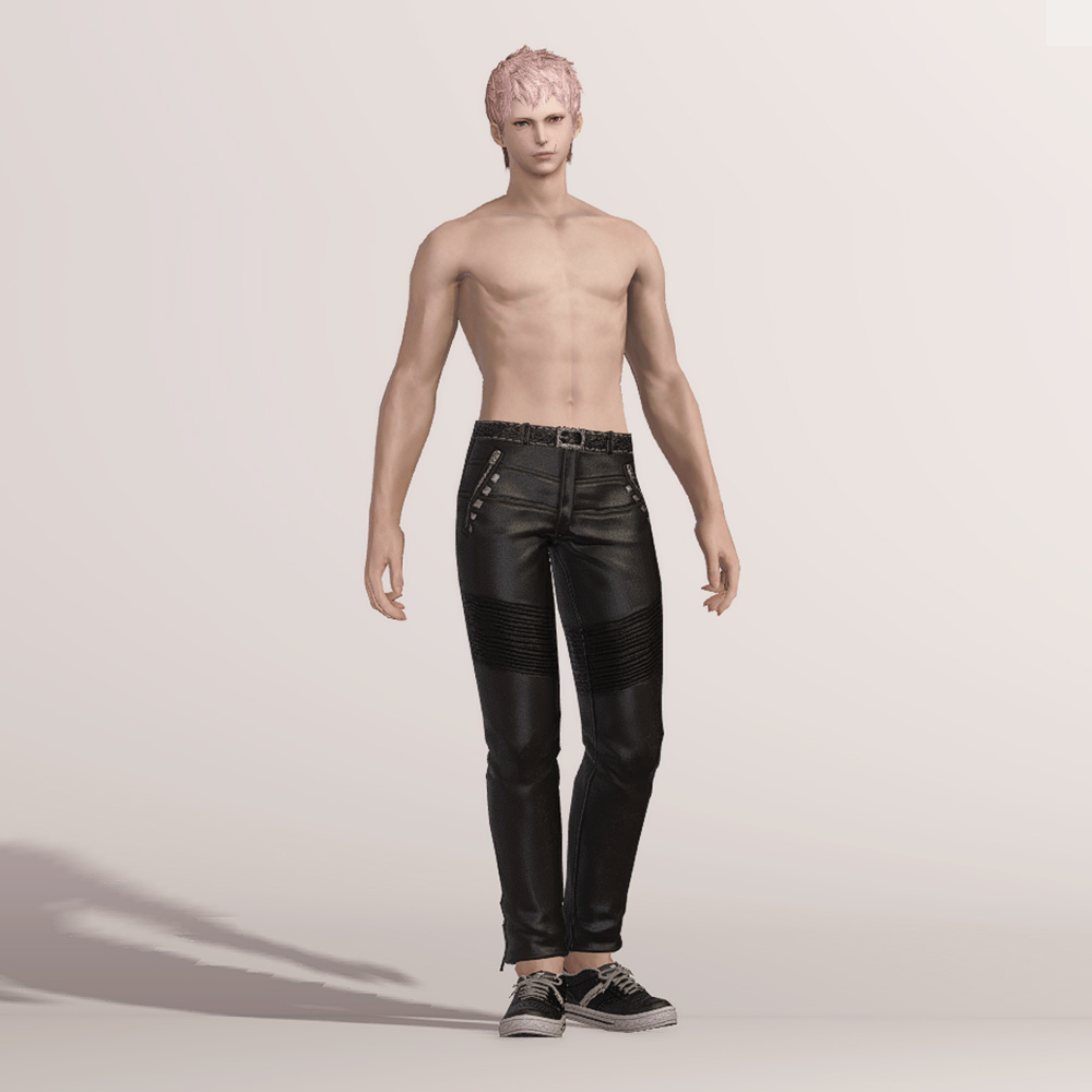 송아지 가죽으로 만들어진 고급스러운 슬랙스입니다. 화려한 무늬를 갖고 있는 벨트와 함께 지퍼와 스터드 장식에 의해서 묘하게 갱스터스러운 디자인을 갖고 있어 암흑기사의 90잡룩 불명예 긴바지가 떠오릅니다. 건메탈색으로 염색하면 가죽 반사광이 좀 더 살아나며 힙 스트리트 세트와 매치하면 처음부터 한 세트였던 것처럼 어색함 없이 잘 어울립니다. 현대풍을 선호하시는 분들께 추천드립니다.