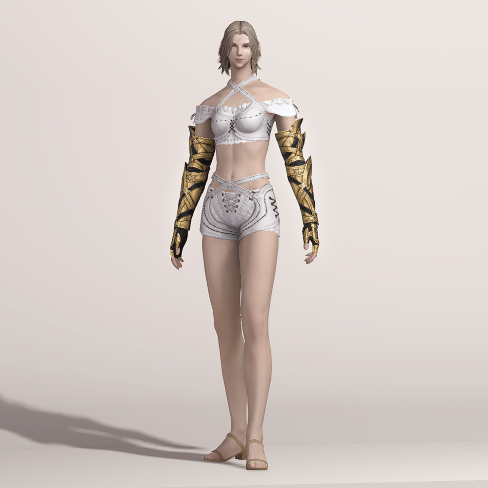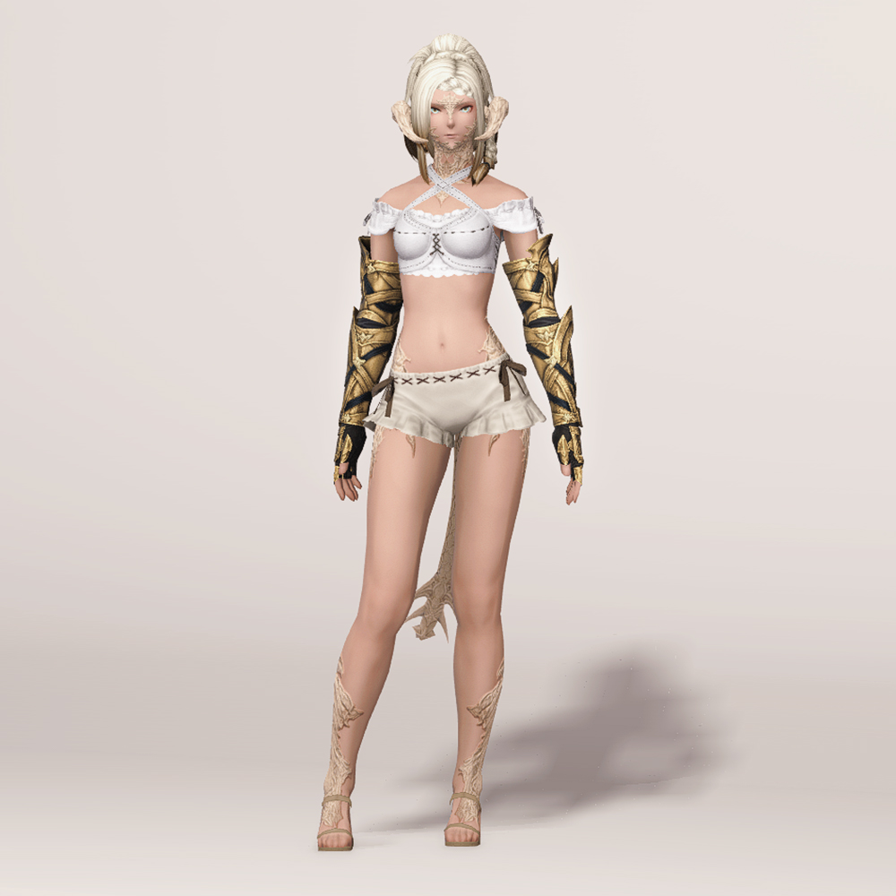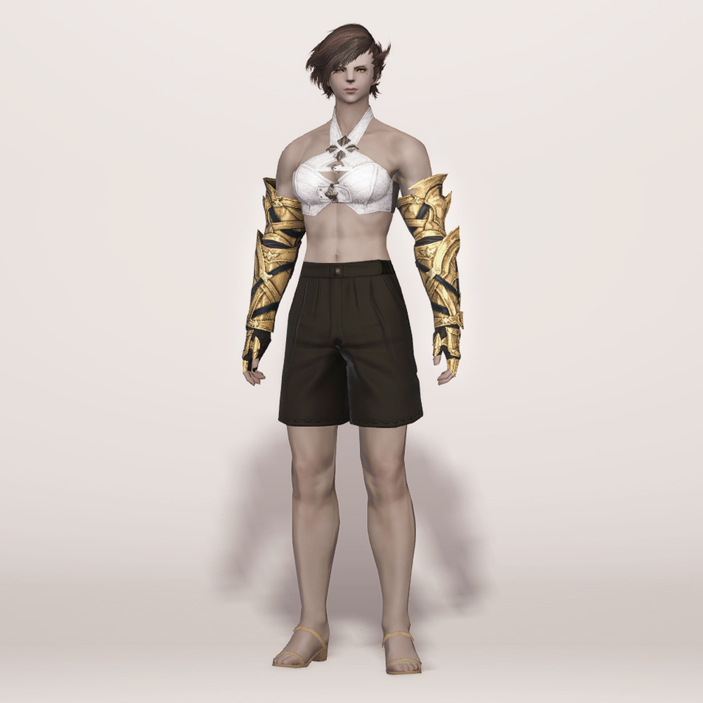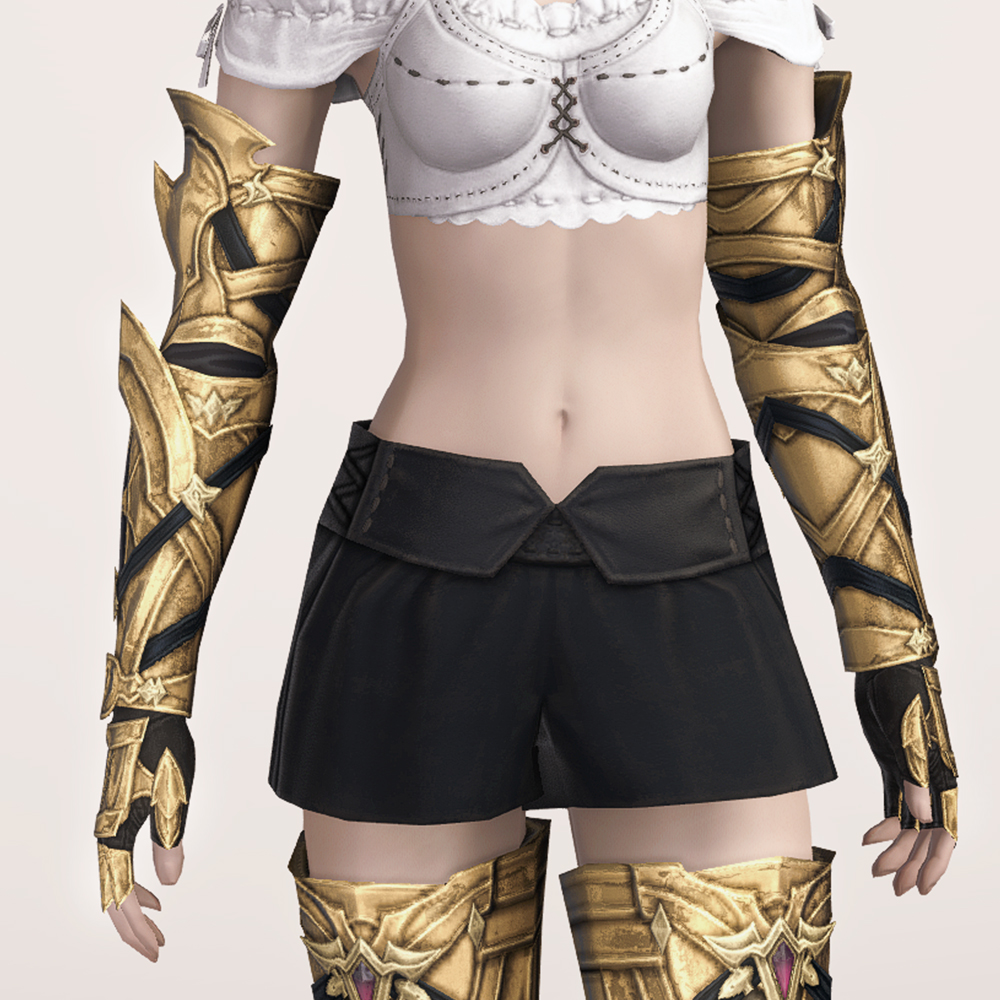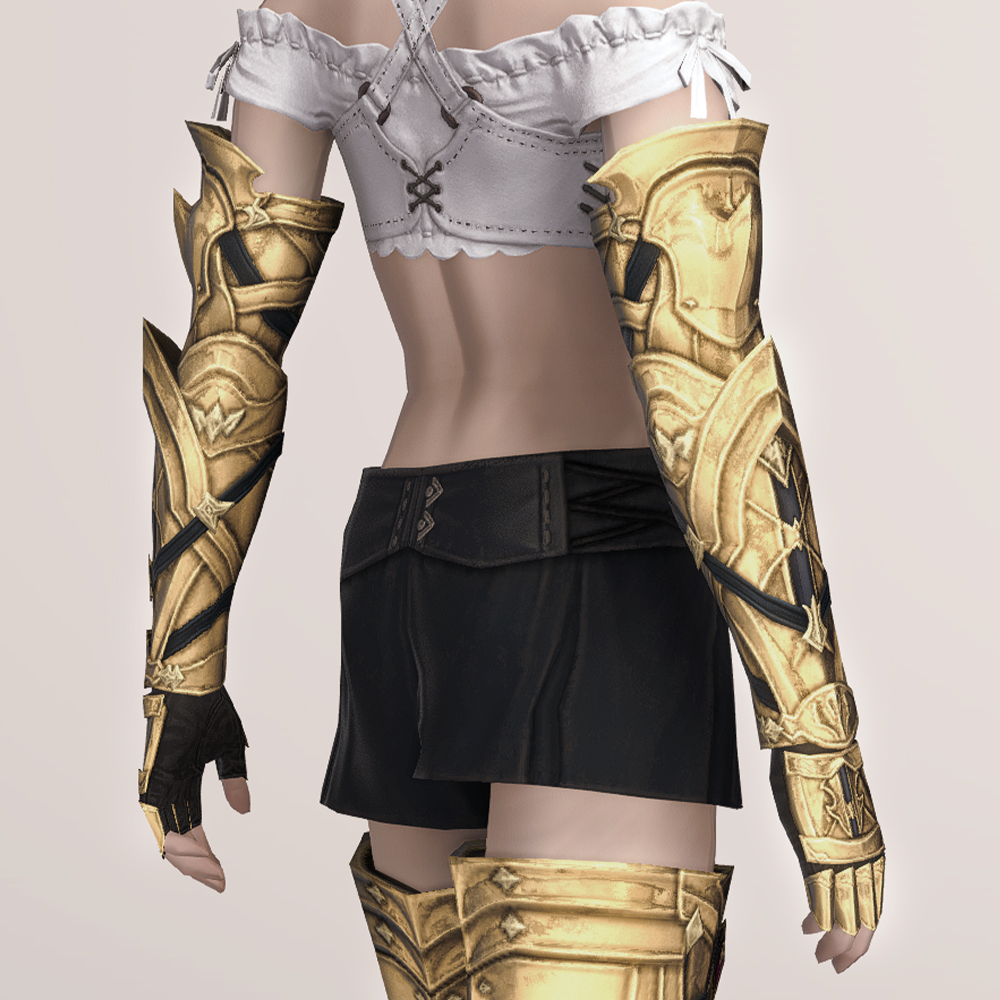 신축성이 좋아 보이는 팔 토시에 가죽으로 제작된 반장갑을 끼고, 그 위에 팔을 보호할 수 있는 뱀 브레이스와 손등을 보호할 수 있는 건틀릿으로 이루어진 보호구입니다. 공격으로부터 팔과 손등을 안전하게 보호할 수 있으며, 관절이 꺾이는 부분들은 비어두어 활동이 자유롭습니다. 팔 곳곳에 스트랩이 둘러져 있으며, 학살자 장비라서 그런가 묘하게 곳곳이 뾰족해 눈에 띕니다.