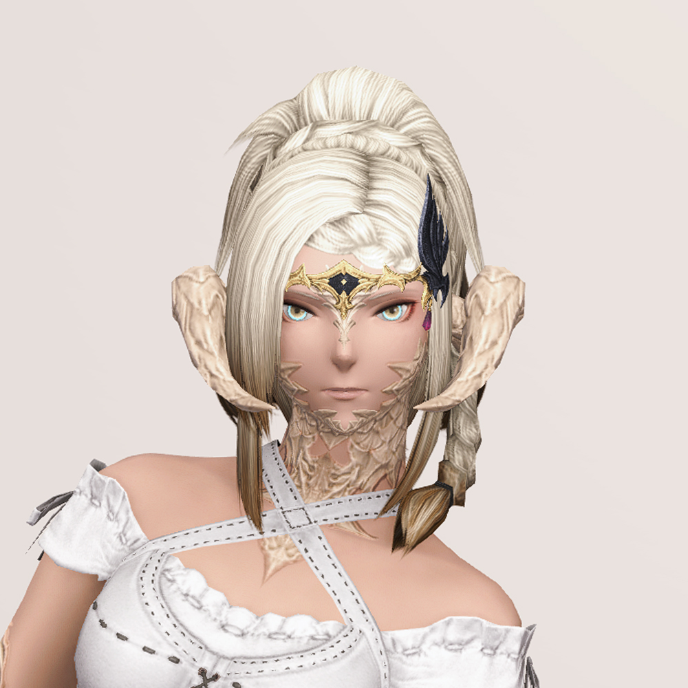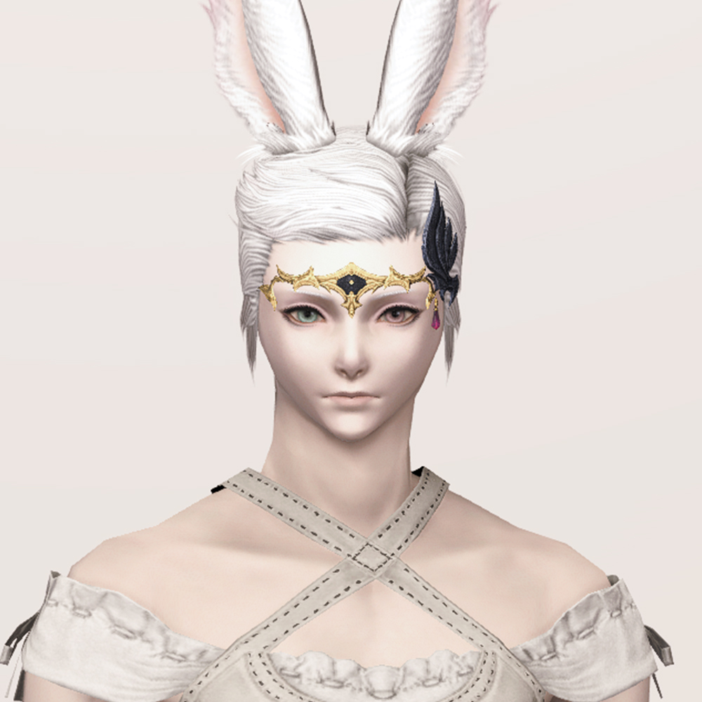 머리에 살짝 걸치게 쓰는 좁은 띠 형태의 금속관, 서클릿입니다. 보는 사람을 기준으로 오른쪽에 날개 장식이 있으며, 이마 중앙과 날개 장식 끝에 끝에 보석이 달려 있습니다. 날개 장식에 의해서 묘하게 발키리가 떠오릅니다. 앞머리가 있는 경우 서클릿과 장식이 묻혀 조금만 보입니다.