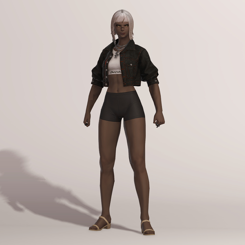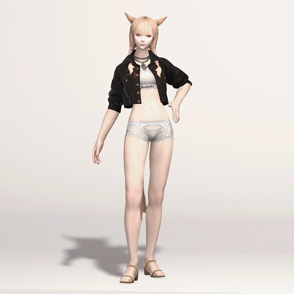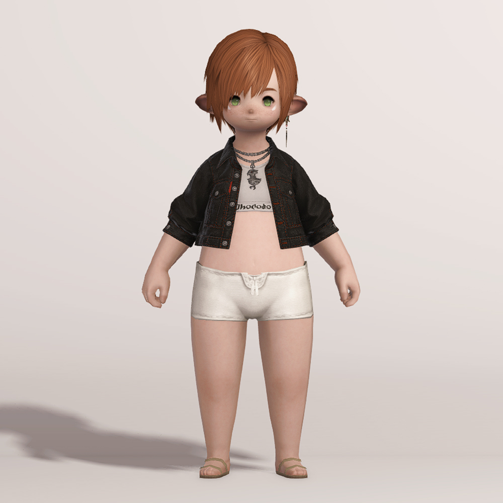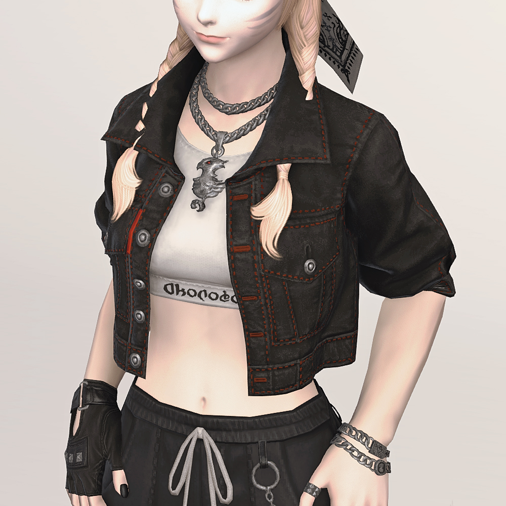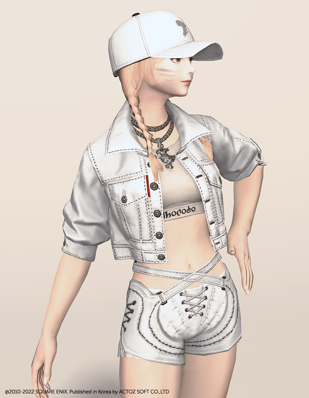 상큼한 데님 크롭재킷과 크롭나시를 곁들여 시원시원한 스포티스러운 연출이 매력적인 힙 스트리트 상의입니다. 여기에 초코보 목걸이와 백에 힙한 모그리,초코보의 자수도 들어가 앞뒤 매력을 둘다 챙겼습니다.