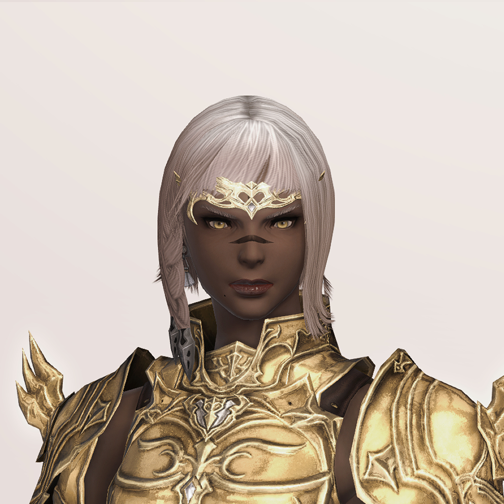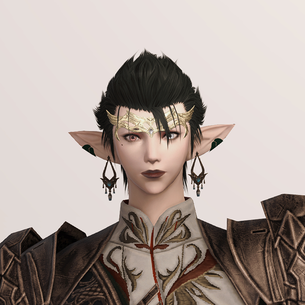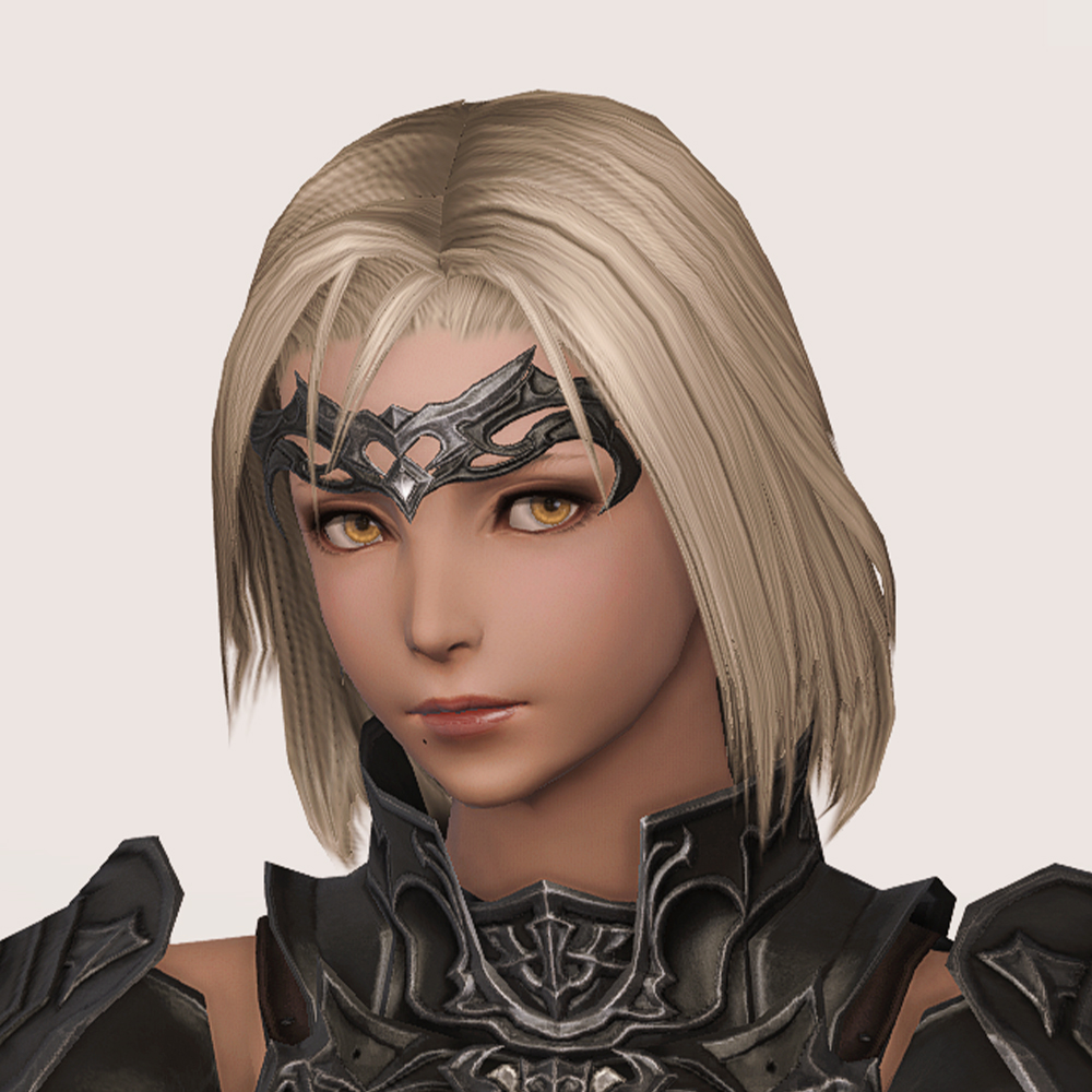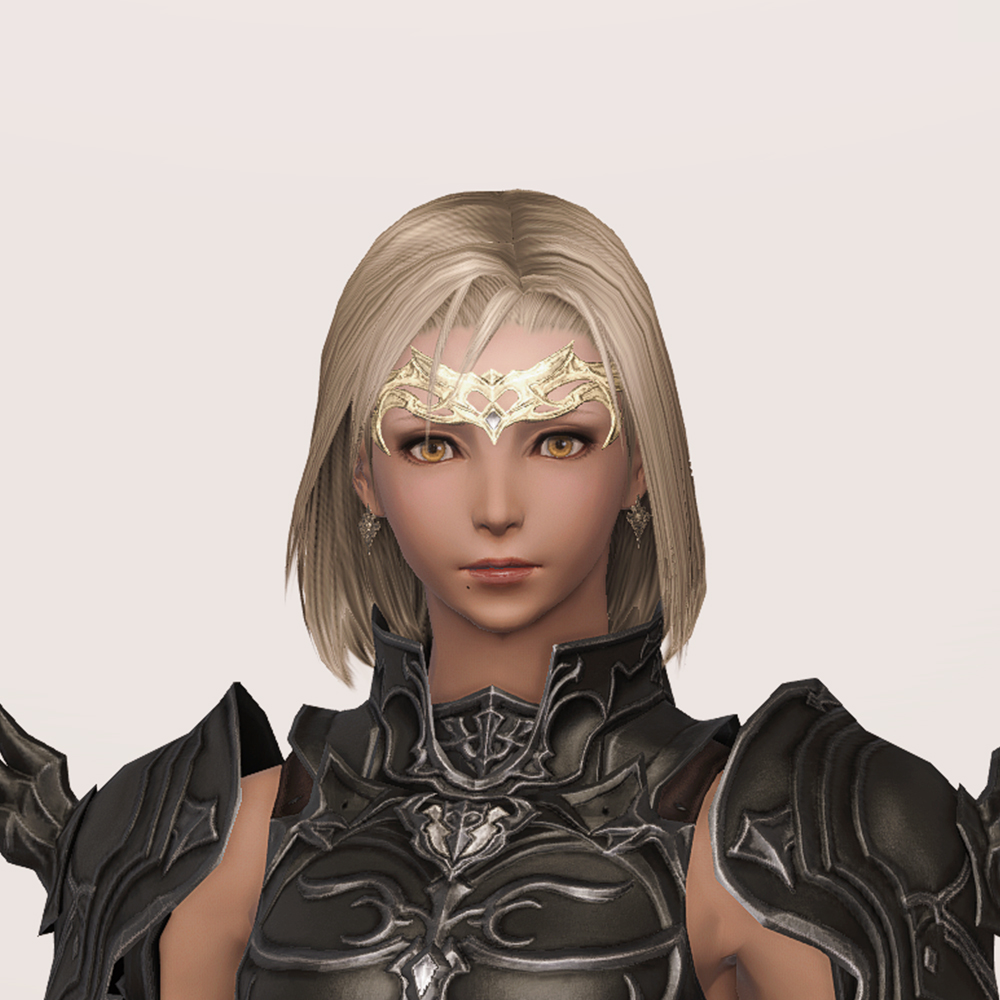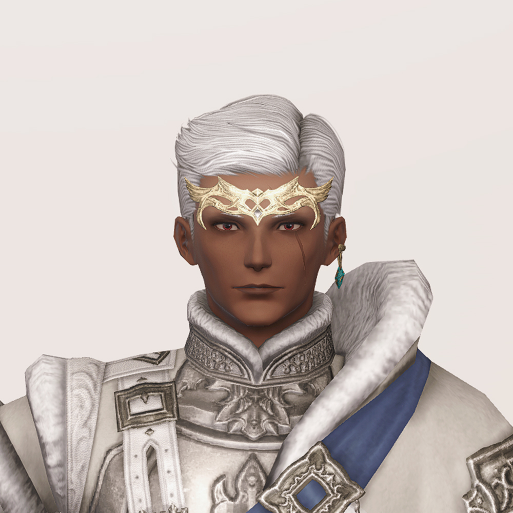머리에 살짝 걸치게 쓰는 좁은 띠 형태의 금속관, 서클릿입니다. 미간에 위치한 작은 보석 장식을 중심으로 양옆으로 뾰족하게 뻗어있는 모습은 날개 같으며, 안쪽으로 휘어지는 곡선 부분은 종족/성별에 따라 눈꼬리와 가깝게 위치합니다. 신전 타격대/학살자 머리장식에 비해서 비교적 심플한 편이며 앞머리가 있는 경우 서클릿과 장식이 묻혀 조금만 보입니다.