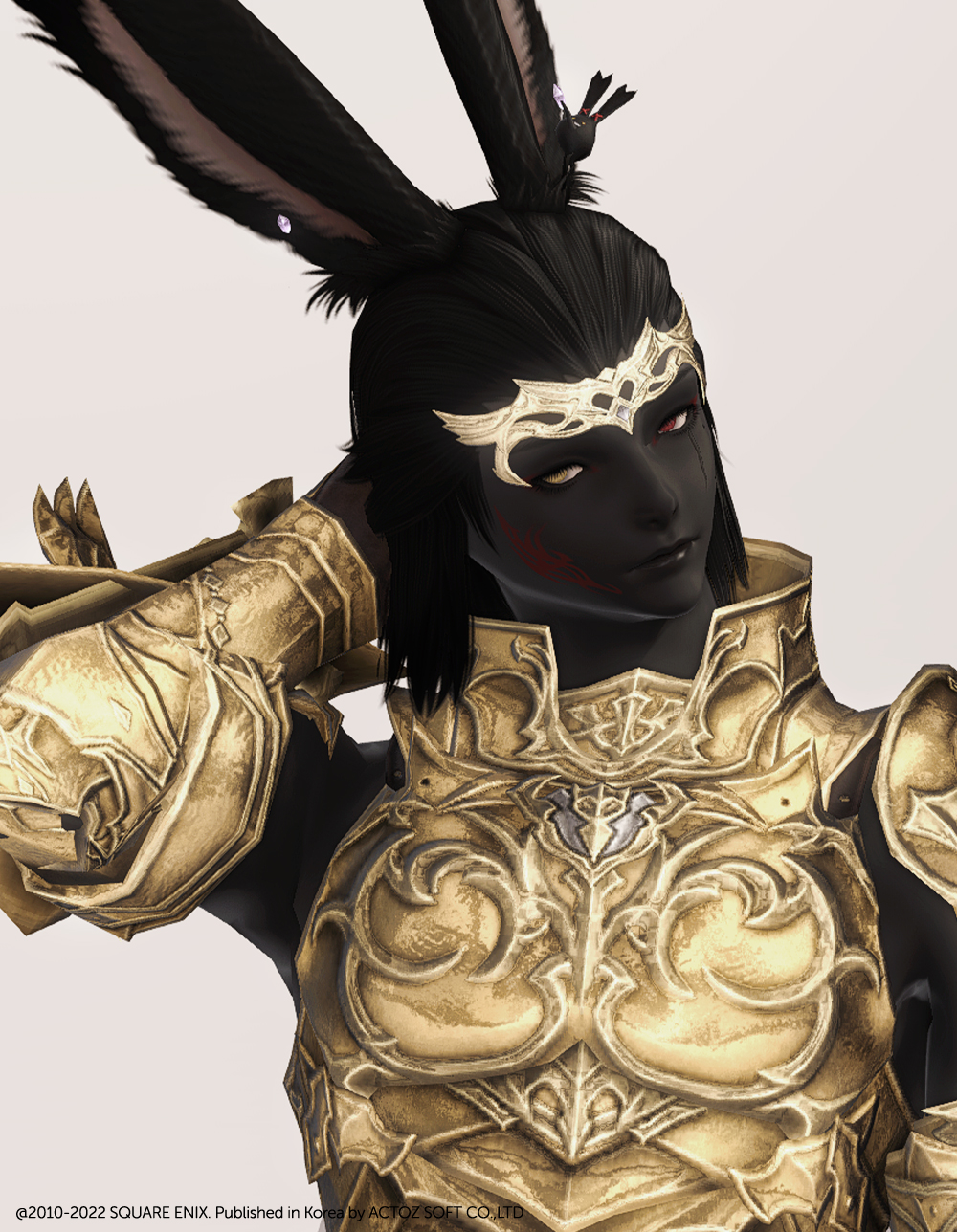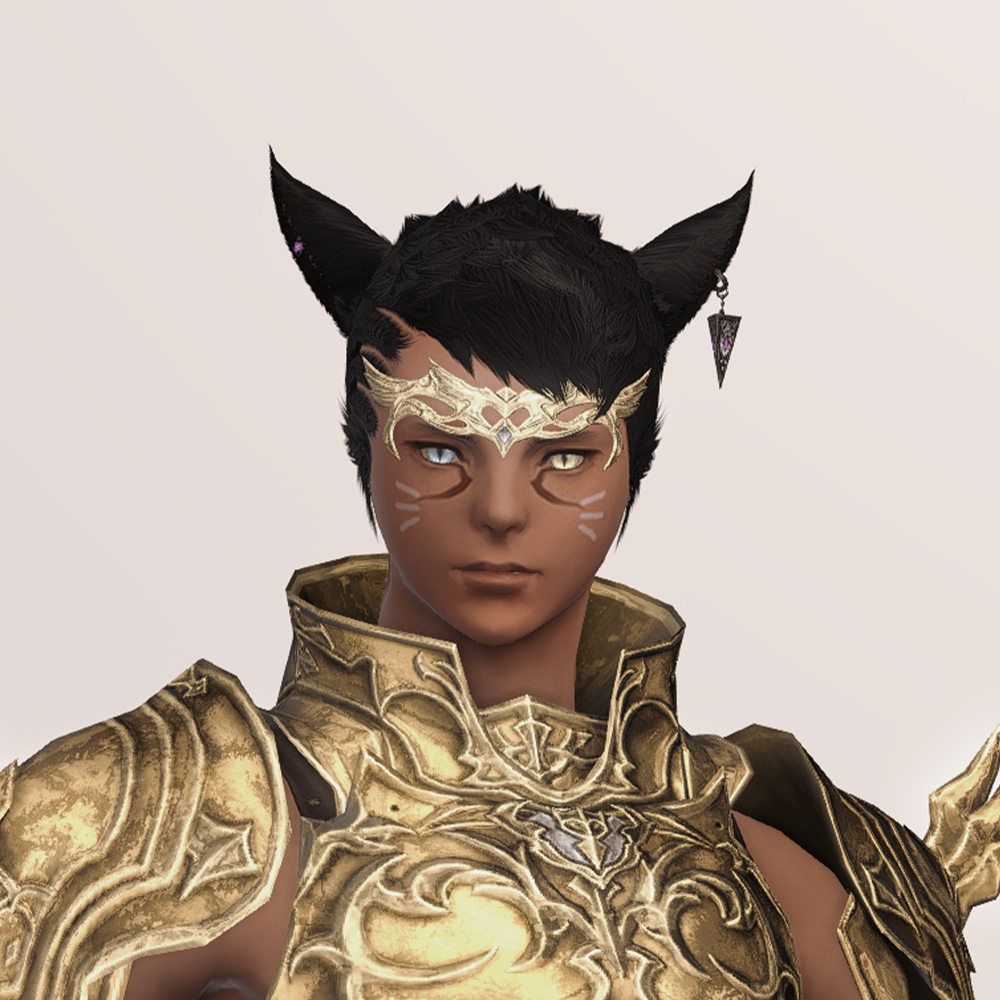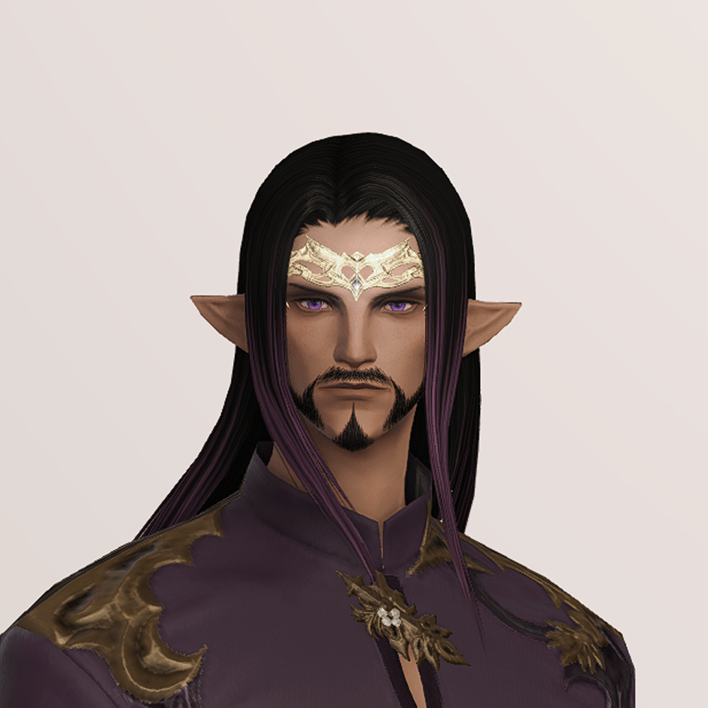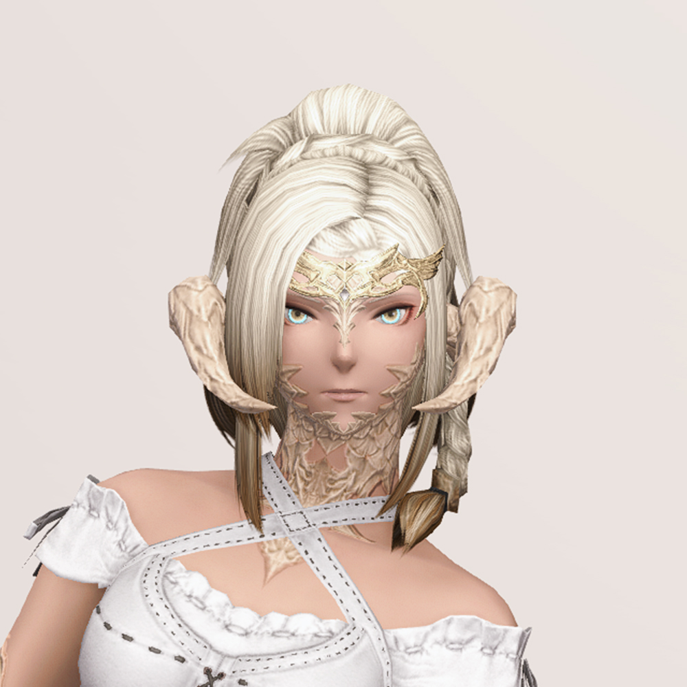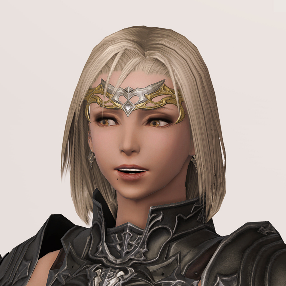 머리에 살짝 걸치게 쓰는 좁은 띠 형태의 금속관, 서클릿입니다. 미간에 위치한 작은 보석 장식을 중심으로 양옆으로 뾰족하게 뻗어있는 모습은 날개 같으며, 안쪽으로 휘어지는 곡선 부분은 종족/성별에 따라 눈꼬리와 가깝게 위치합니다. 신전 타격대/학살자 머리장식에 비해서 비교적 심플한 편이며 앞머리가 있는 경우 서클릿과 장식이 묻혀 조금만 보입니다.