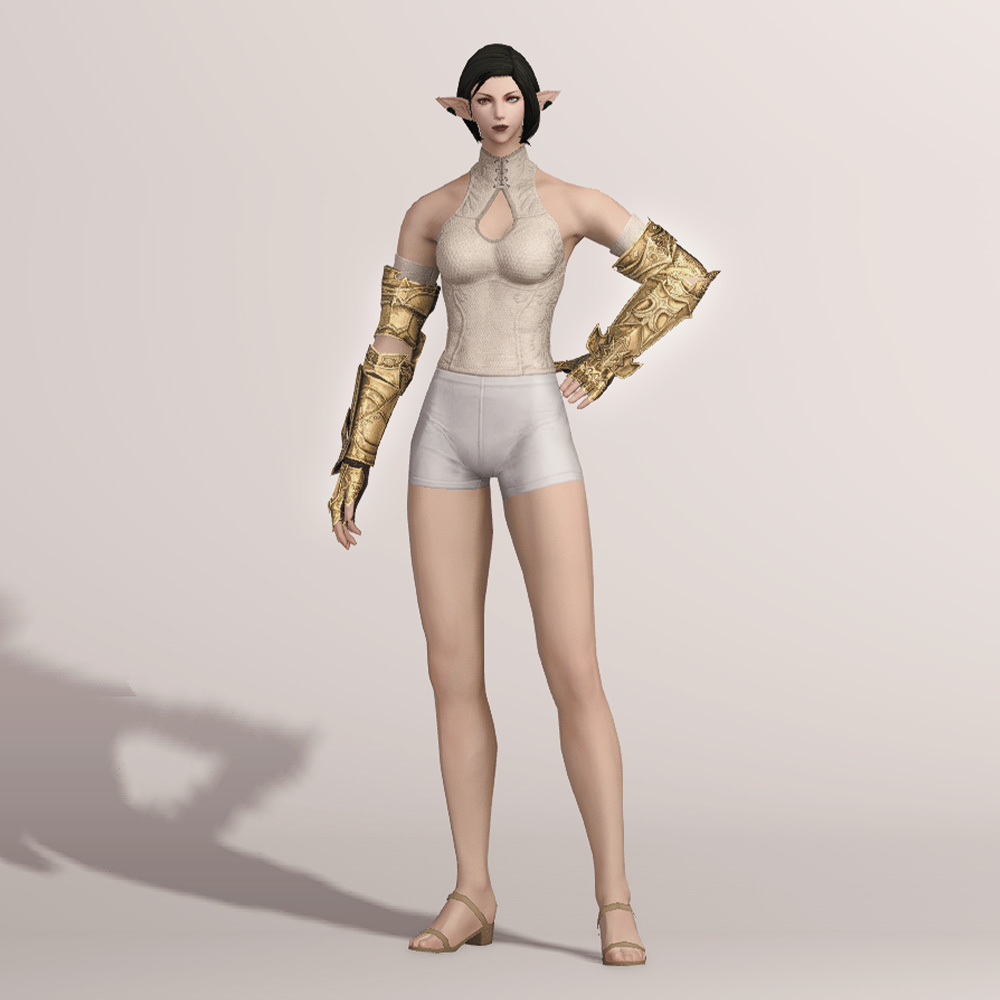 가죽으로 제작된 반장갑 위에 팔을 보호할 수 있는 뱀 브레이스와 손등을 보호할 수 있는 건틀릿으로 이루어진 보호구입니다. 공격으로부터 팔과 손등을 안전하게 보호할 수 있으며, 관절이 꺾이는 부분들은 비어두어 활동이 자유롭습니다. 탱커용 건틀릿은 투박한 것이 많아 머리부터 발끝까지 갑옷으로 맞추지 않으면 코디하기 어려움을 느끼는데, 신전 학살자/타격대 건틀릿처럼 슬림하게 나와 천의 비율이 높은 경갑옷 계열과 정말 잘 어울립니다. 이발리스 성기사 갑옷, 궁정 수호자 재킷 등 이외의 다양한 경갑옷과 함께 활용하실 수 있습니다.