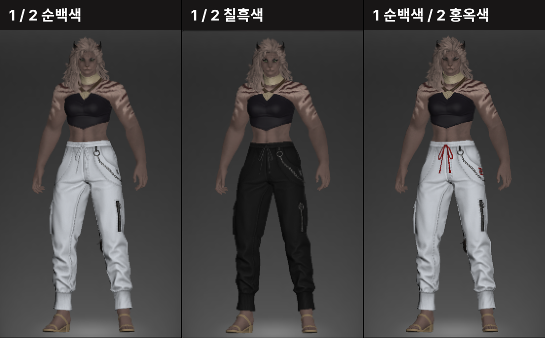 회색으로 염색시 츄리닝 룩으로, 흰색이나 검정으로 매치시에는 깔끔한 스포티 룩으로 조합 가능합니다.