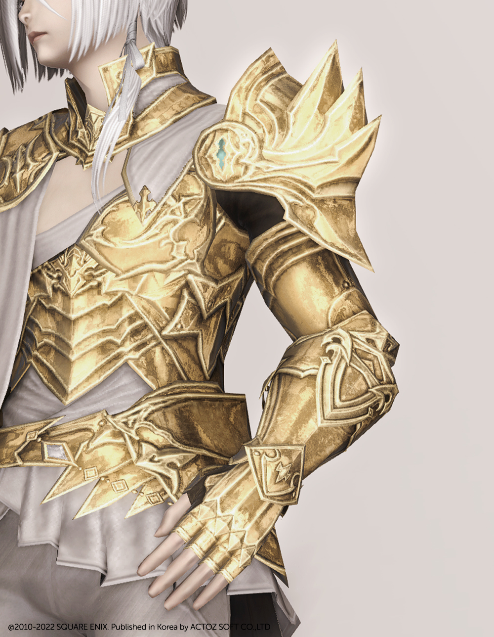 신전 정찰대 팔보호구는 마감장식 부분이 흰색입니다. 염색 부위는 동일합니다.