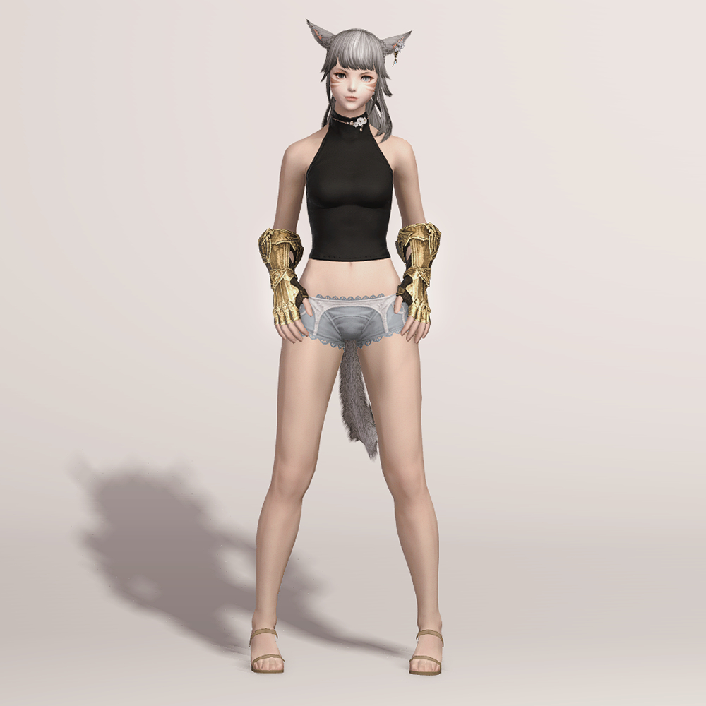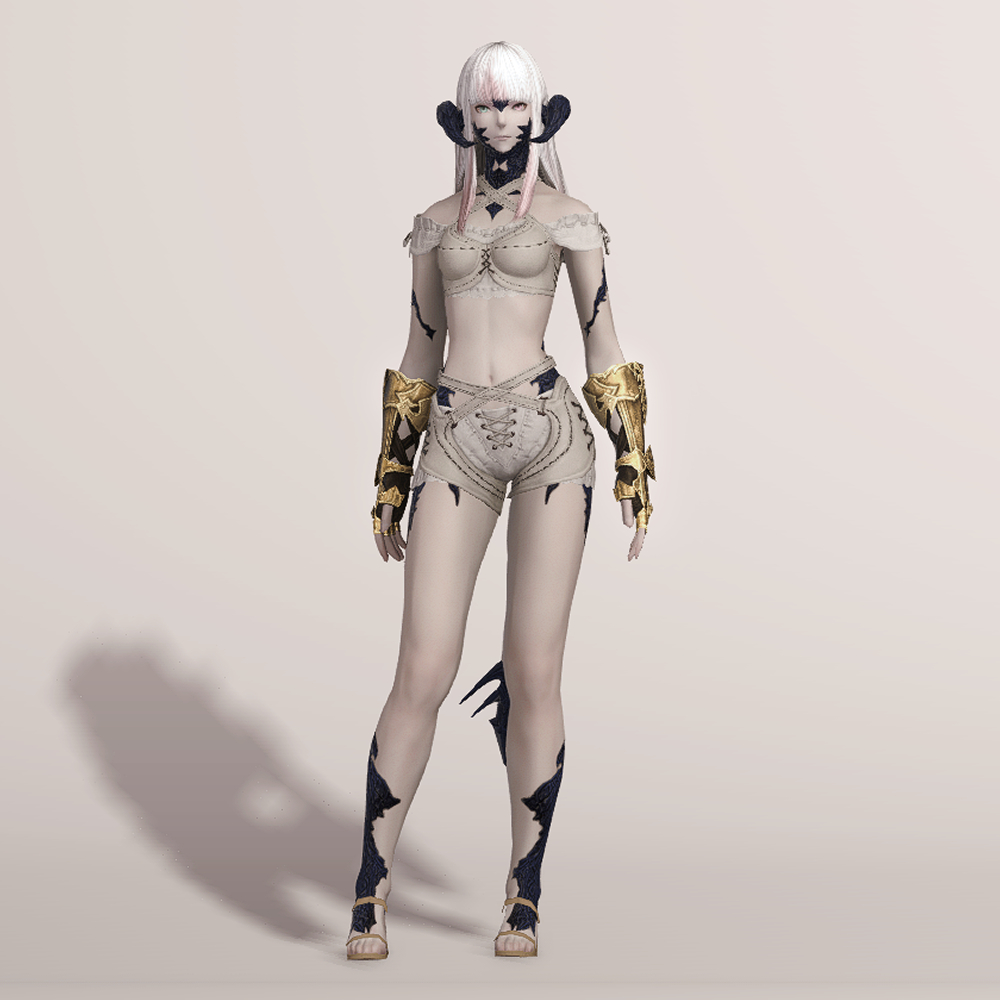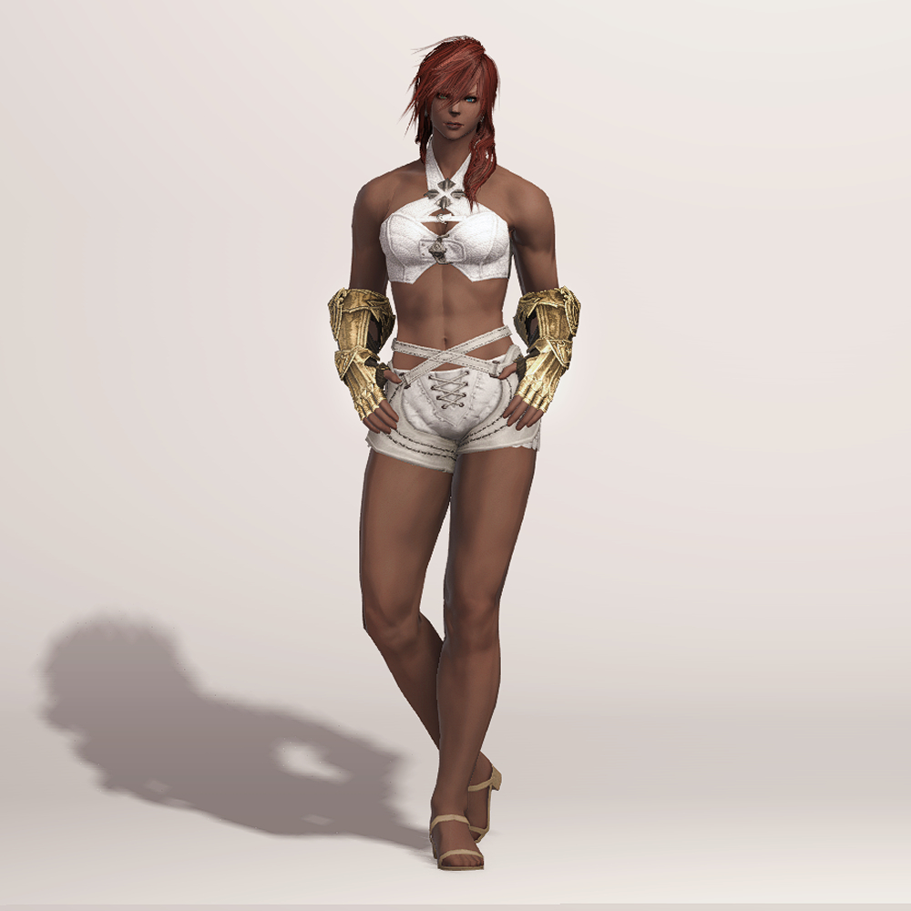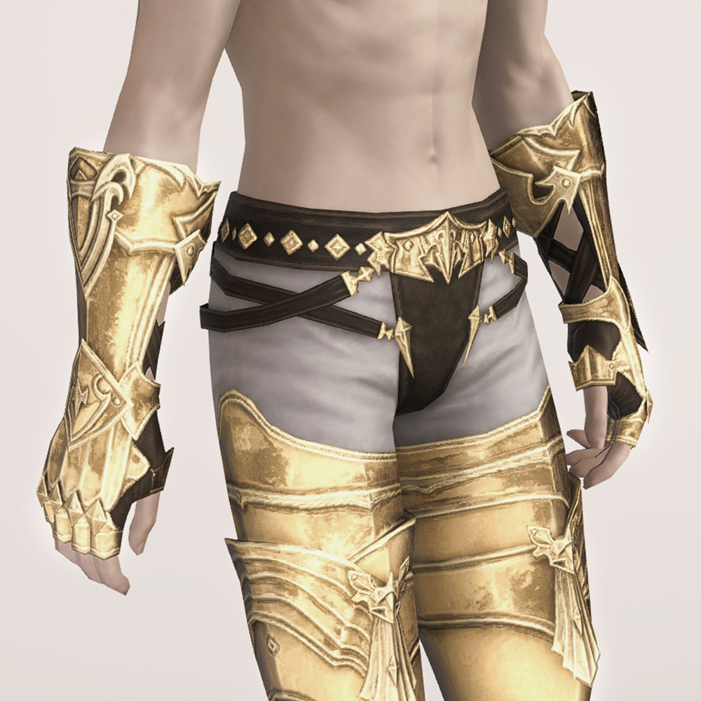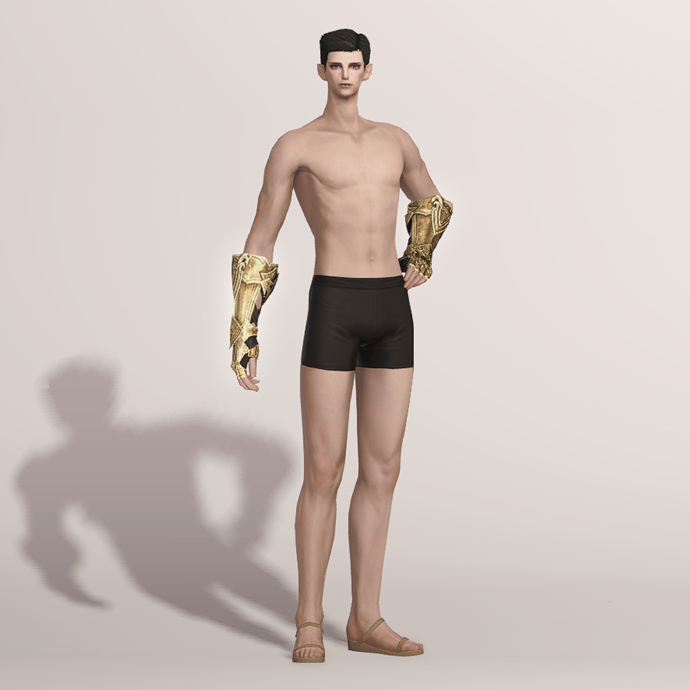 가죽으로 제작된 반장갑과 함께 팔꿈치까지 올라오는 뱀브레이스와 건틀릿으로 팔을 보호합니다. 어두운색으로 염색시 마무리쪽부분이 조금 밝은 색으로 염색되어 비슷한 금속재질소재의 의상과 착용시 잘어울립니다.