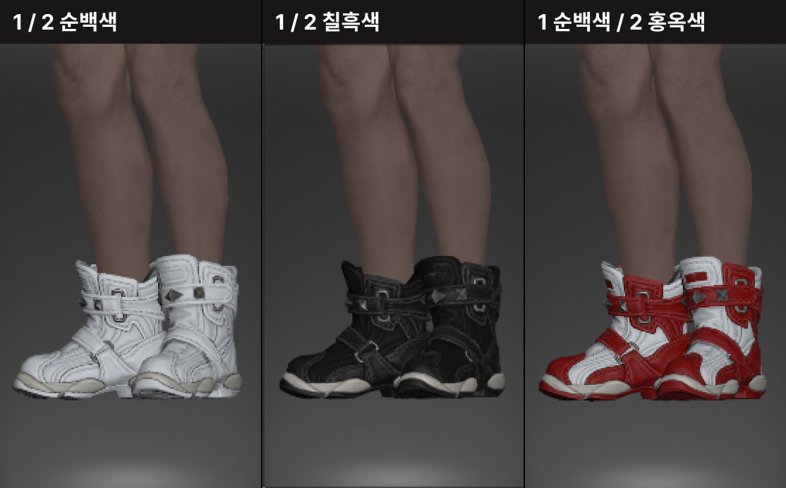 1염색 - 운동화 몸통의 흰색부분 / 2염색 - 기존 검은색 장식 부분