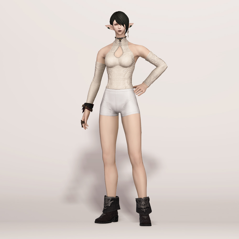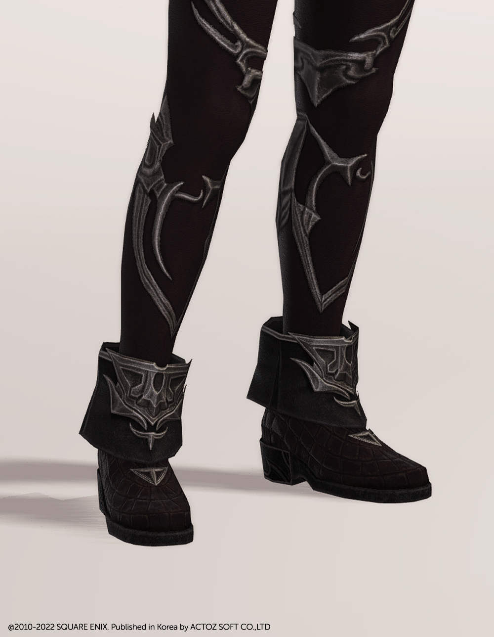 가죽으로 만들어 튼튼한 외관을 자랑하는 부츠입니다. 접혀 있는 발목과 함께 디테일하게 새겨진 금속 장식이 포인트로 끝이 뾰족하고 날카롭습니다. 발 부분의 무늬가 조금 특이해 마치 악어나 뱀가죽 같은 느낌이 있으며, 전체적인 외관만 보면 나름 캐주얼하면서도 귀여운 매력이 있습니다.