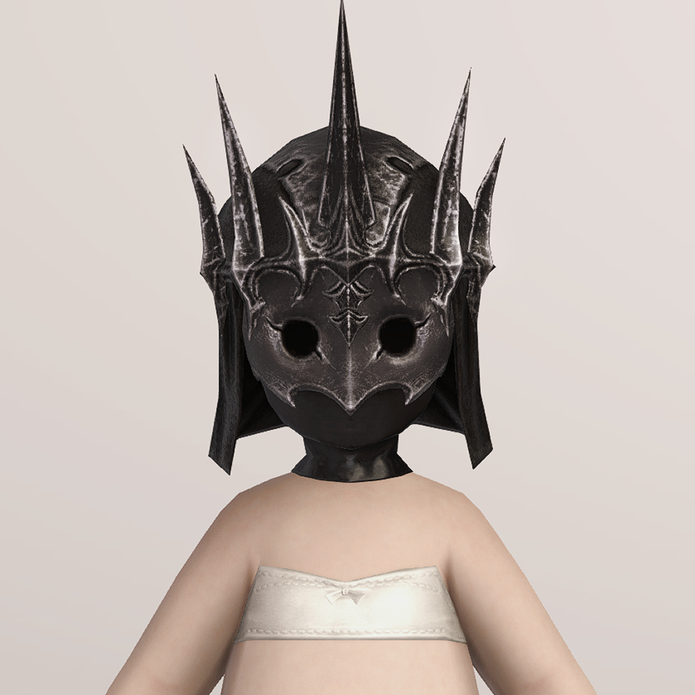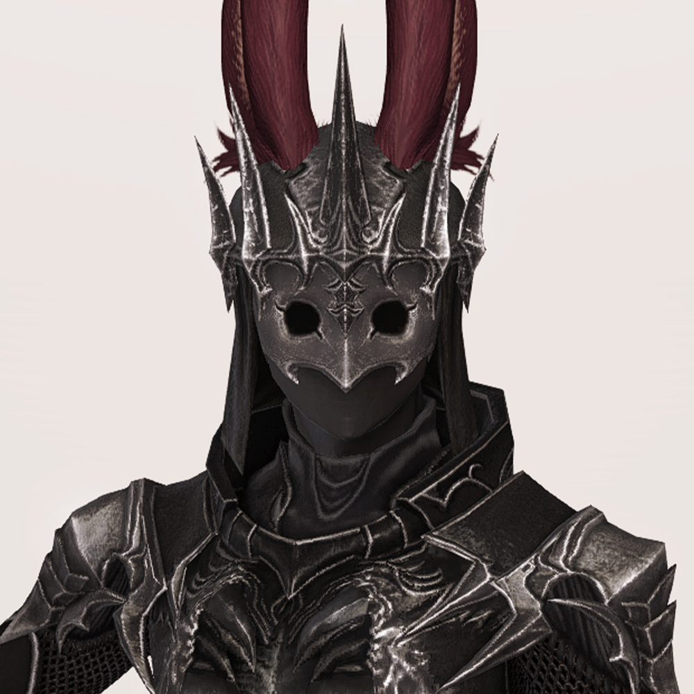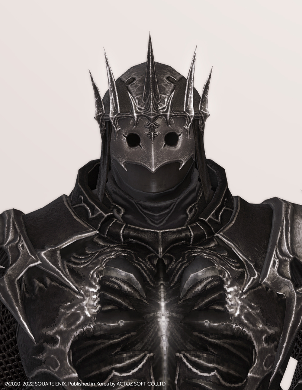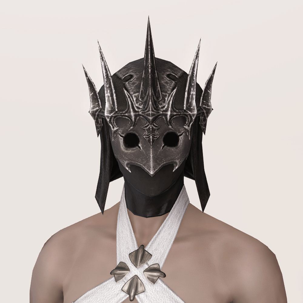 머리카락 길이에 상관없이, 머리 전체를 완벽하게 가릴 수 있는 베일입니다. 머리 위에 솟아있는 날카로운 금속 장식은 마치 왕관처럼 보입니다. 전체적으로 조물원 수호자 가면과 유사하지만 천 길이가 짧고, 얼굴을 천이 아닌 가면과 복면으로 덮었다는 차이가 있지만 동일하게 현재 모험가가 어떤 표정을 짓고 있는지 전혀 알아볼 수 없다는 점이 좋습니다. 머리의 장식과 가면의 눈구멍이 공허해 묘하게 할로우 나이트의 창백의 왕이 떠오릅니다.