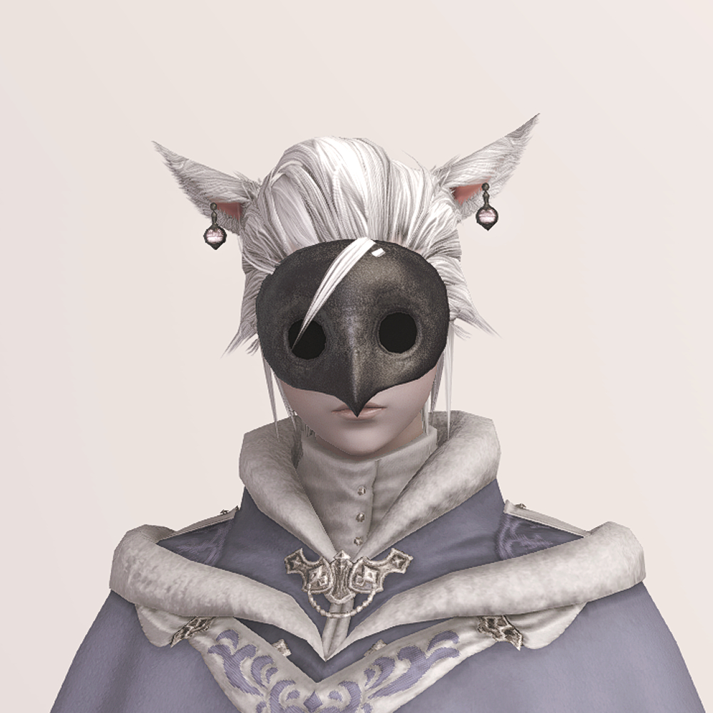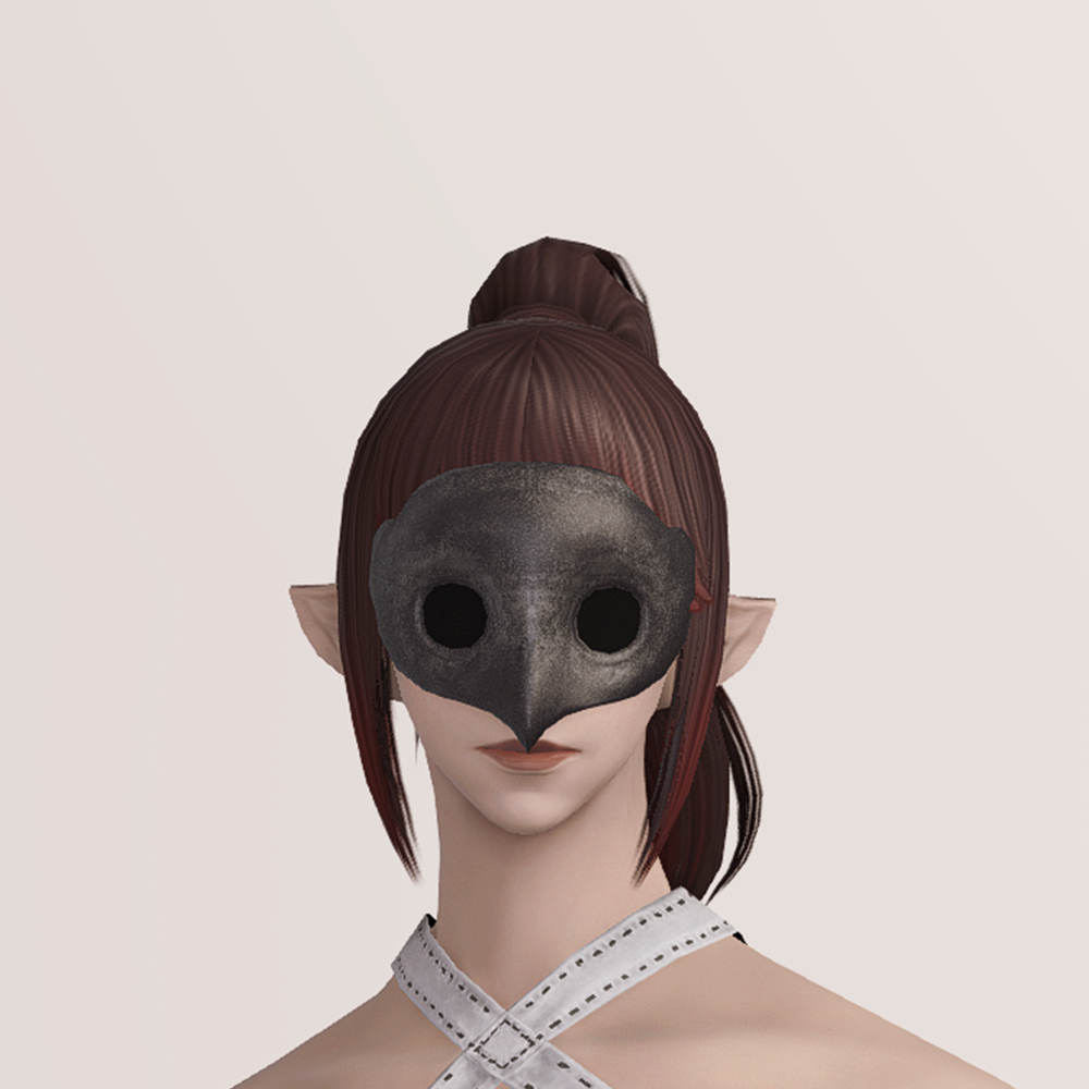 눈부터 코까지를 덮는 금속 반가면으로, 매끈하지 않고 자글자글한 금속 질감을 가지고 있습니다. 눈구멍이 뚫려 있지만 그 안은 까맣게 보일 뿐 캐릭터의 실제 눈동자는 드러나지 않습니다. 고대인들이 쓰던 가면과 외형이 흡사하기 때문에 토론가 로브와 함께 착용한다면 좀더 고대인처럼 보일 수 있을지도 모릅니다.