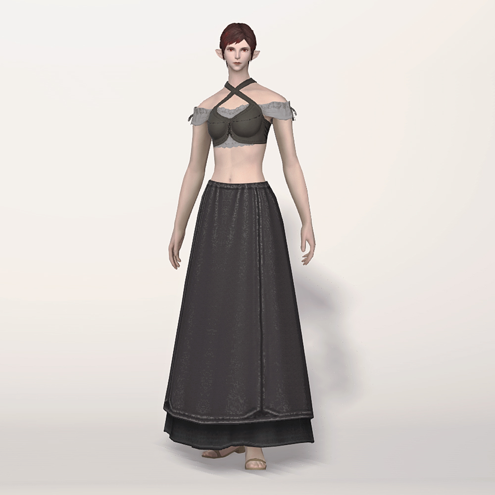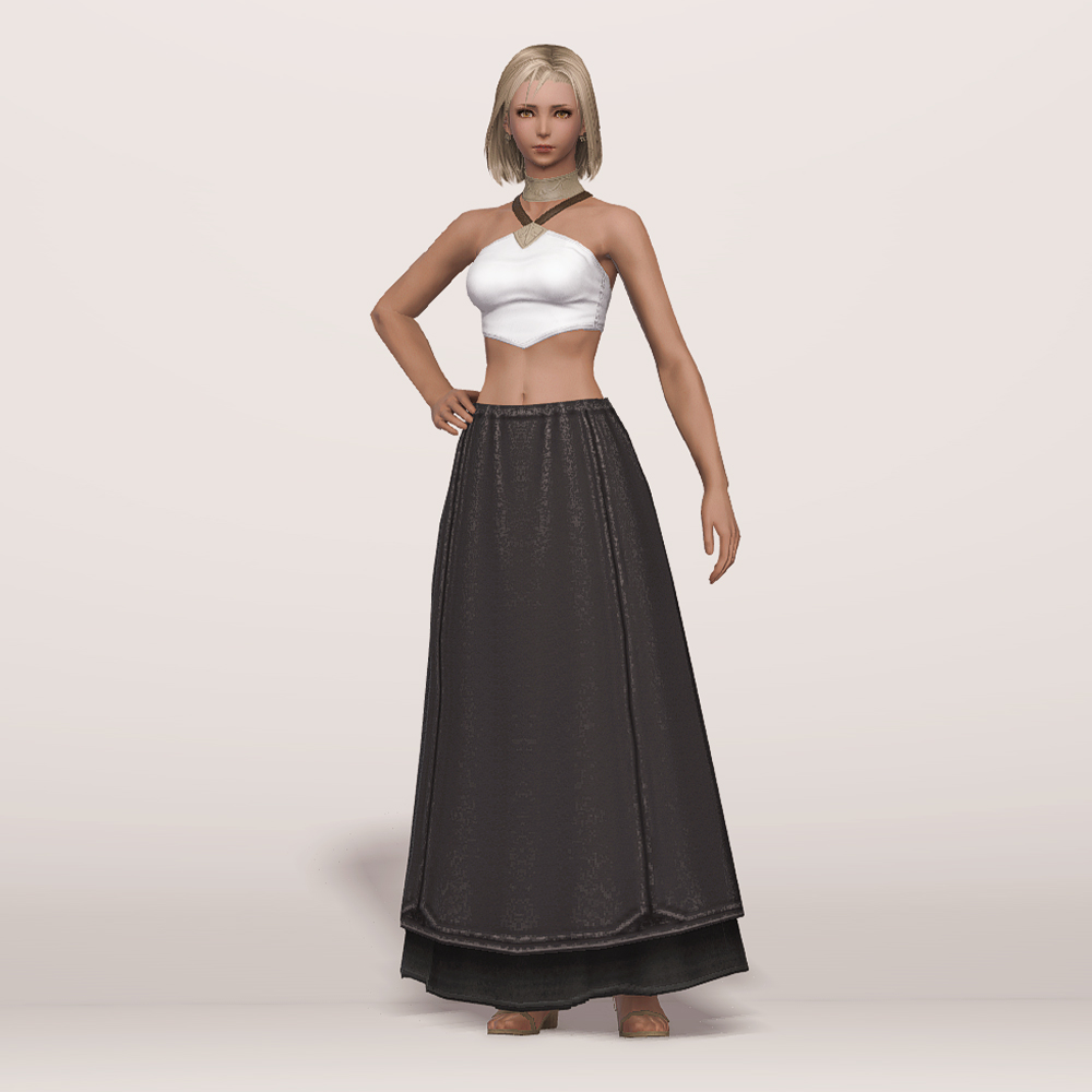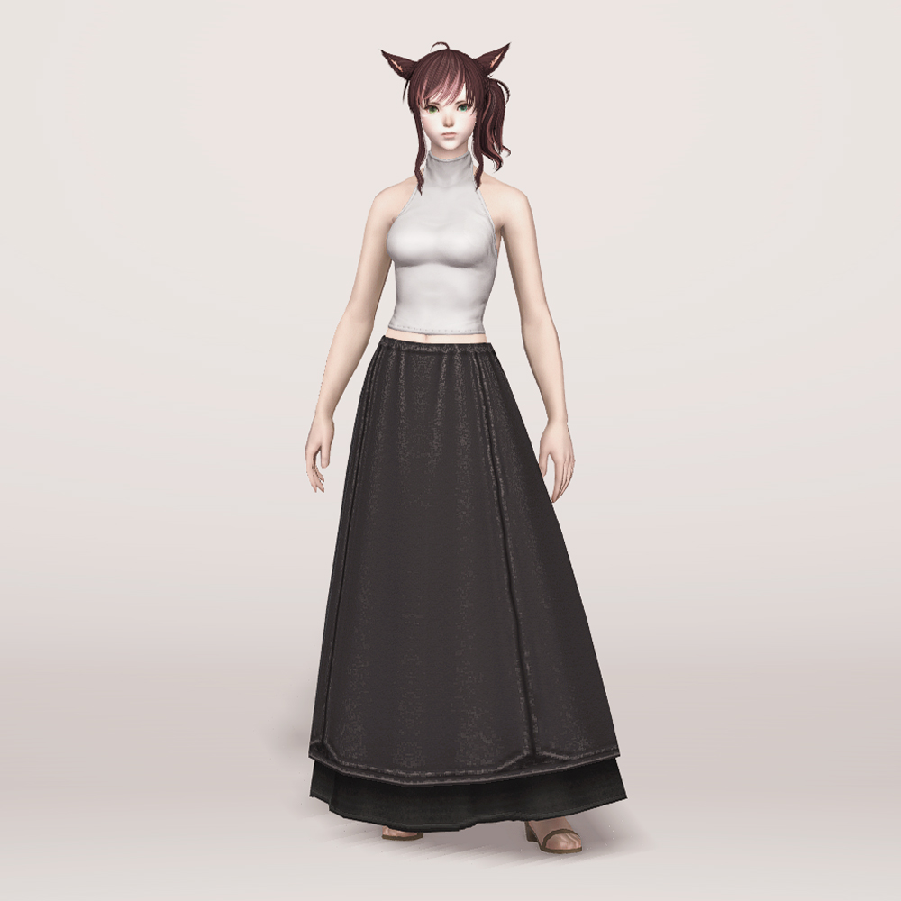 하복부를 다 덮을 정도로 높게 올려 입는 하이웨스트 형식의 A라인 롱스커트입니다. 발등까지 내려올 정도로 긴 기장감을 자랑하며, 민무늬의 깔끔한 스커트라서 다양하게 활용하실 수 있습니다. 일반적인 평범한 스커트처럼 보이지만 안쪽은 발을 제외한 하체를 보호할 수 있도록 견고한 금속 보호구들로 이루어져 있어 탱커 전용 장비의 역할을 훌륭하게 해낼 수 있습니다. 변옥/저승 수호자 키톤, 이발리스 성기사 갑옷, 라자한 모직 가을 셔츠 등과 함께 매치하면 잘 어울립니다.