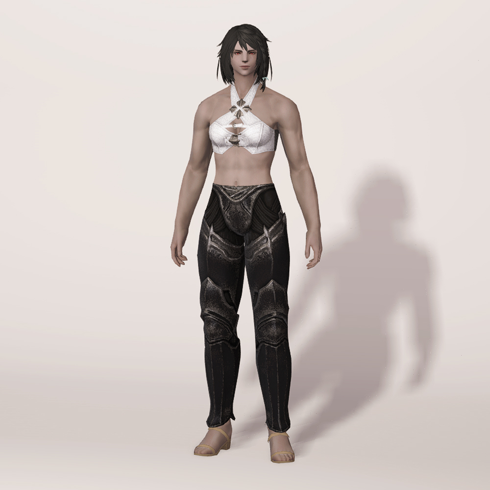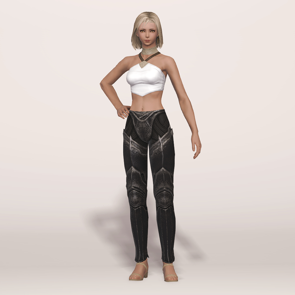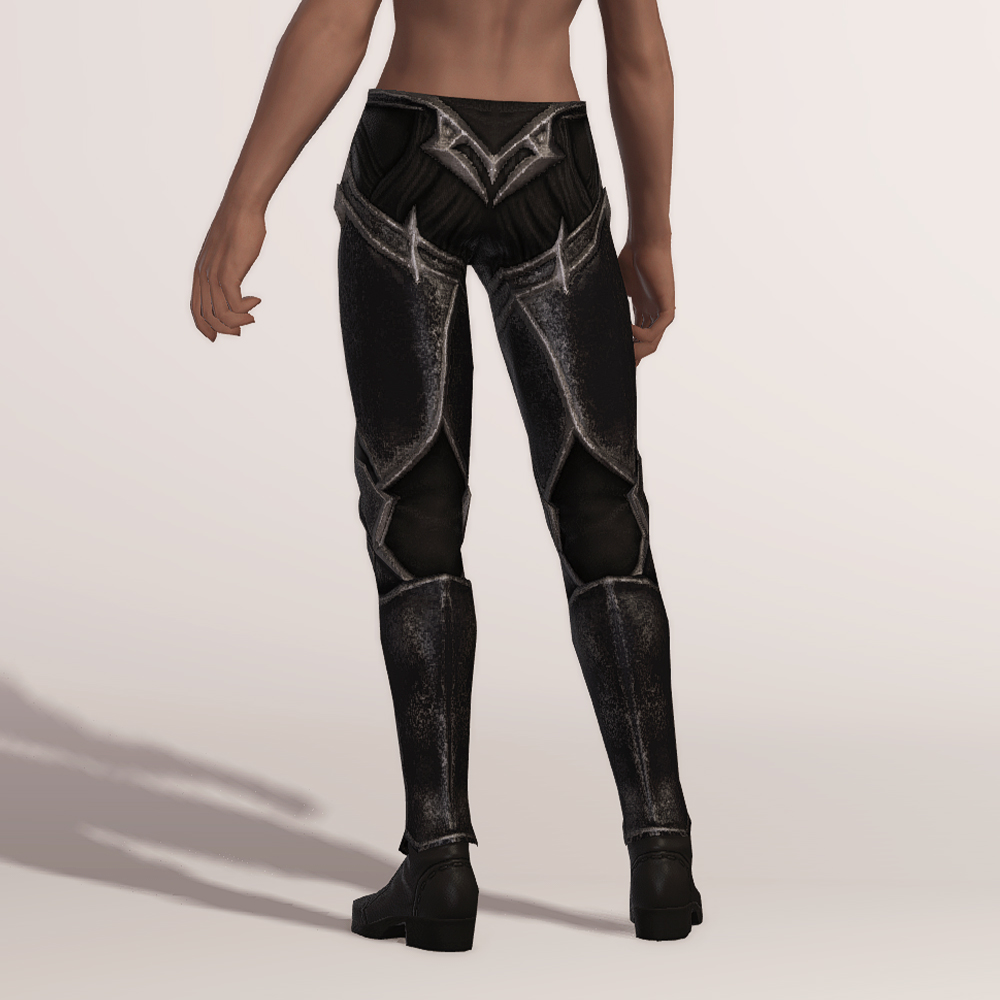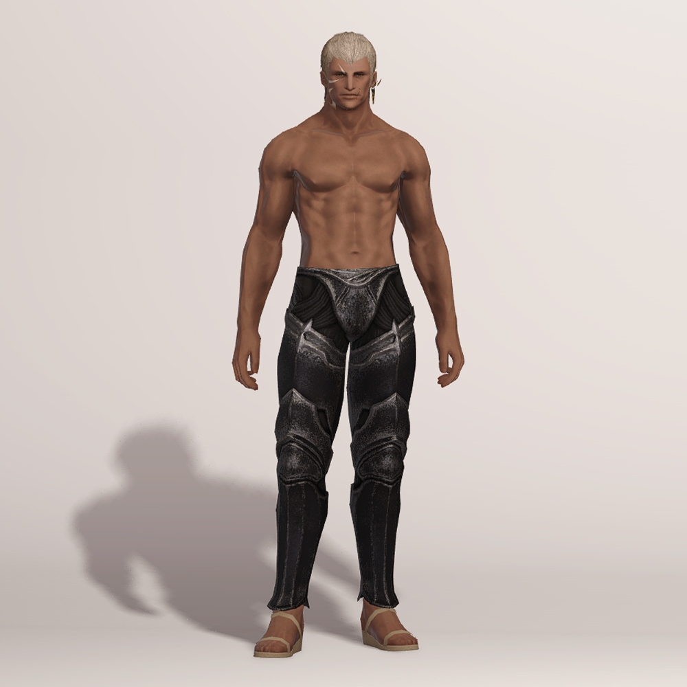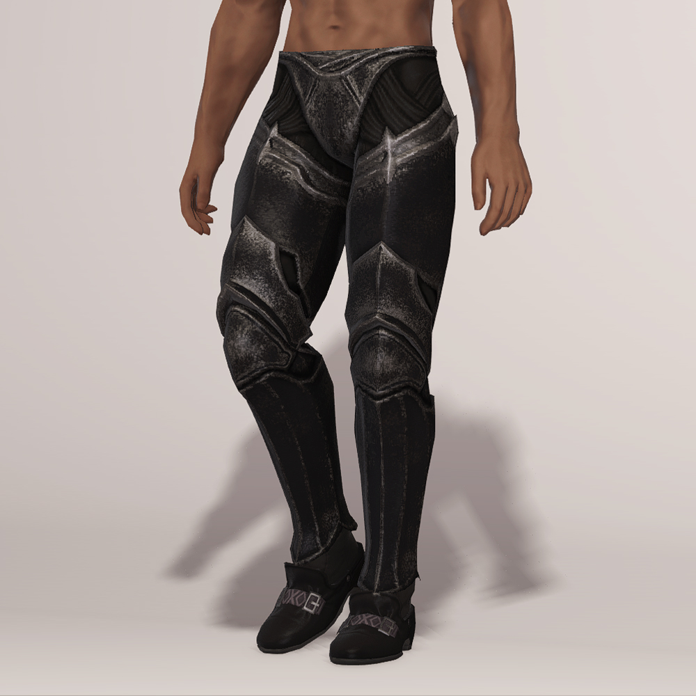 무늬가 조금 특이한 레깅스 위로 고간과 허벅지, 무릎, 종아리를 보호할 수 있도록 판금으로 제작된 보호구들로 이루어진 하의입니다. 퀴스, 그리브 등 다리 갑옷에 필요한 요소들로 구성되어 있어 튼튼하며, 동시에 갑옷치고는 슬림하고 깔끔한 편이라서 가볍고 예쁜 갑옷을 좋아하시는 분들께 추천드립니다. 용창기사 복갑, 별빛전사단 학살자 미늘갑옷, 신전 학살자 쇠구두 등과 함께 매치하면 꽤나 잘 어울립니다.