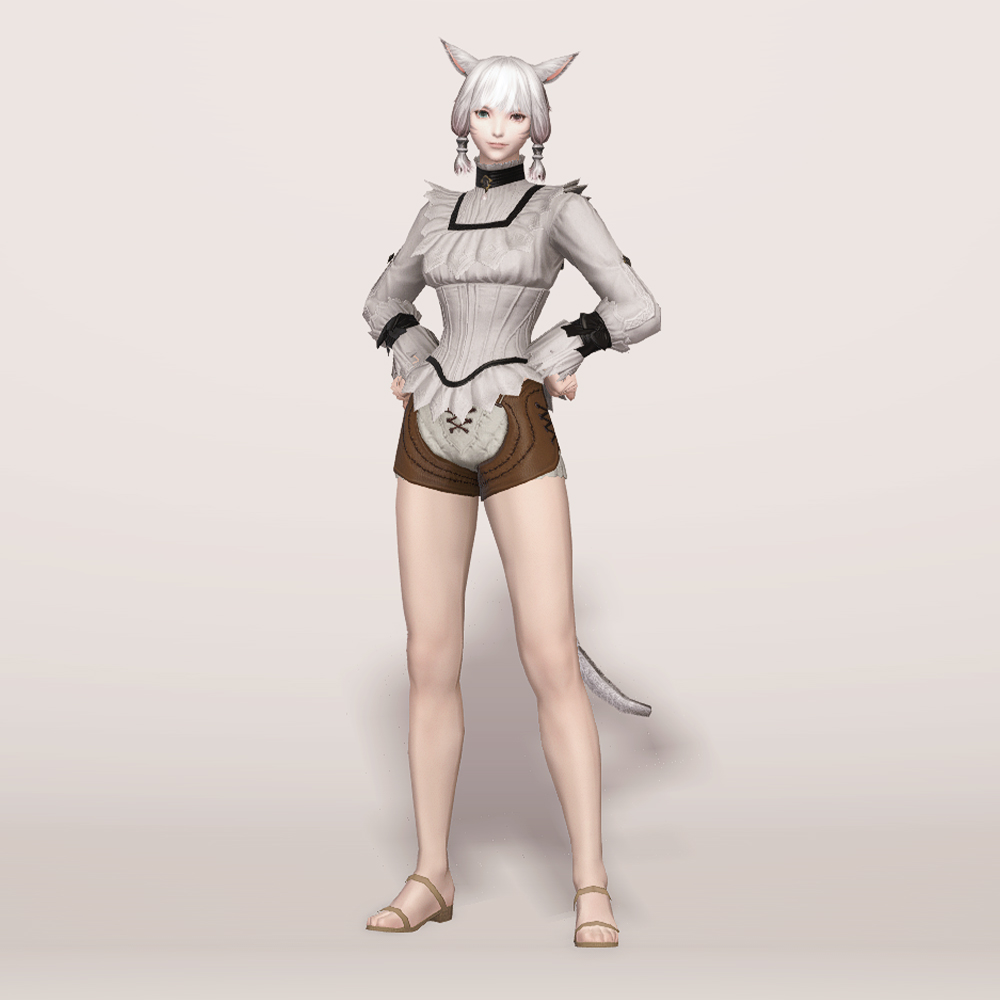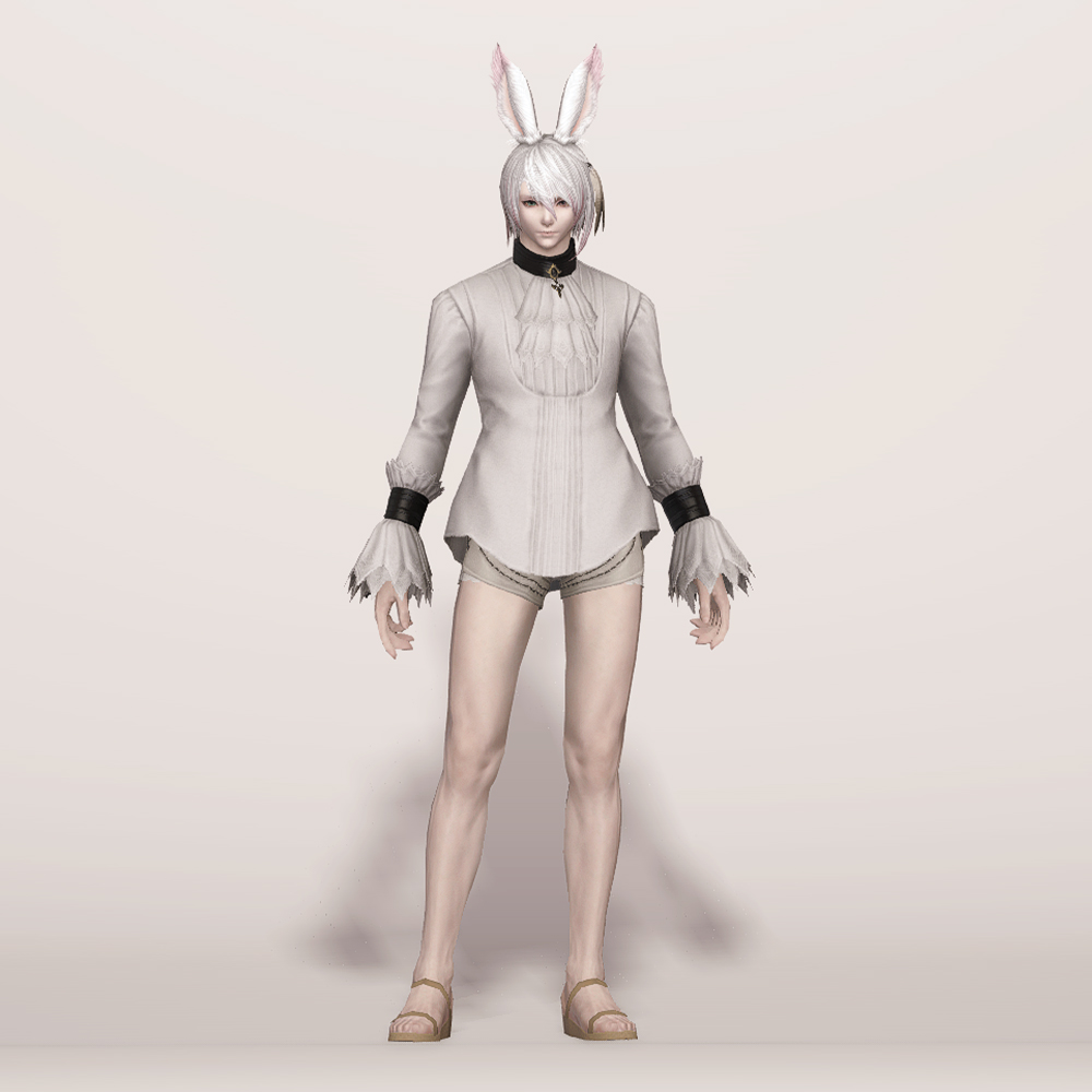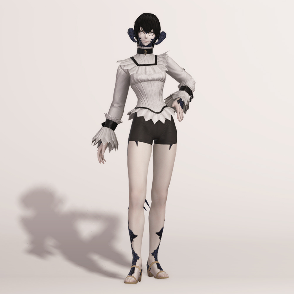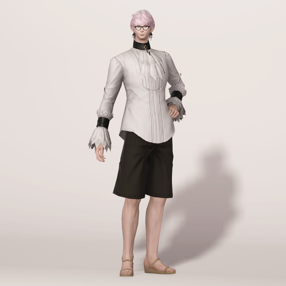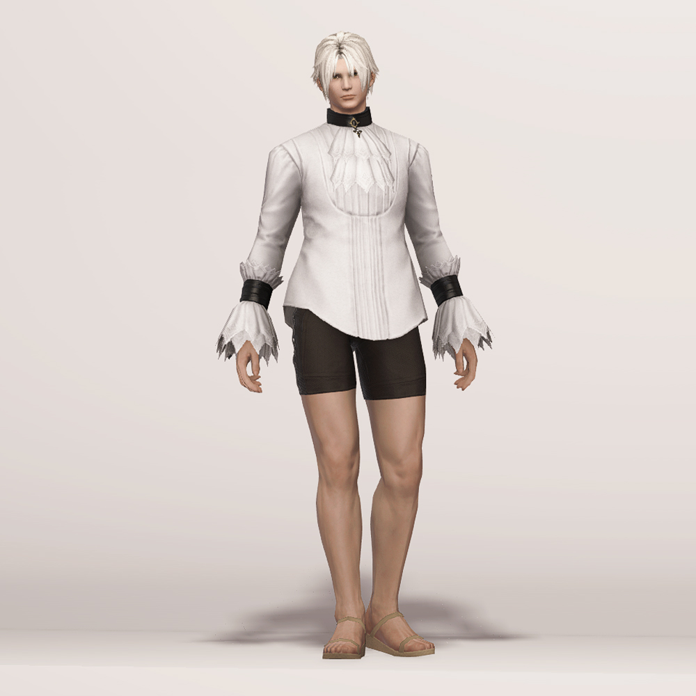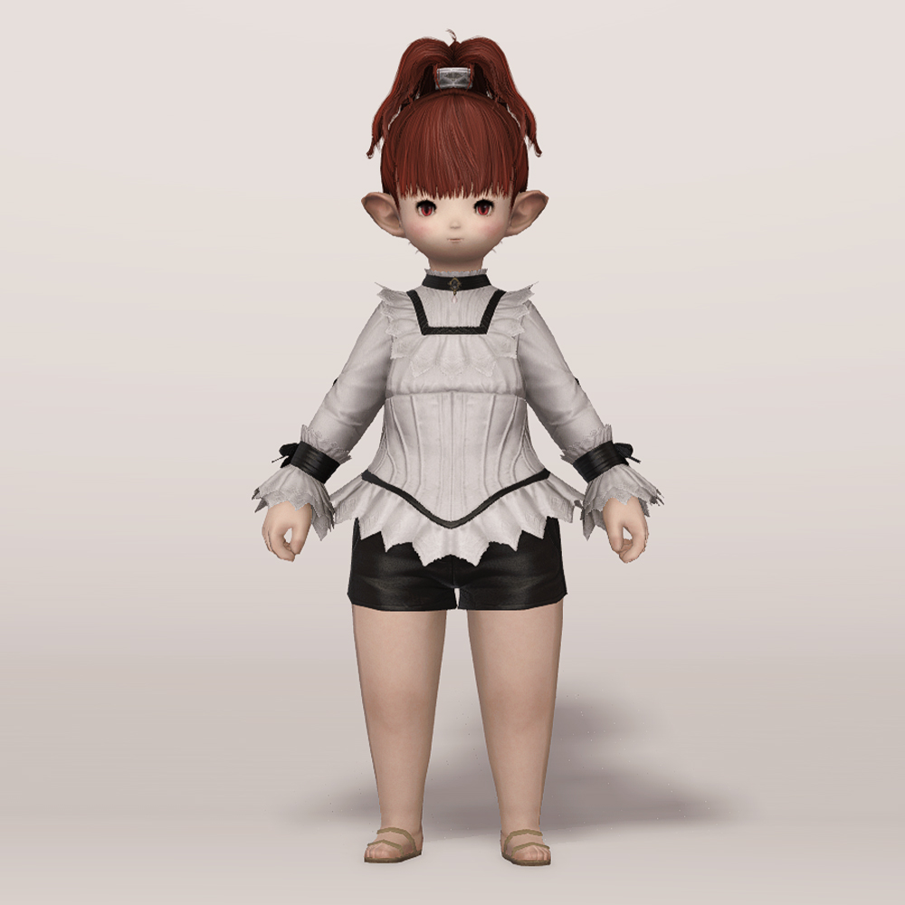 곳곳에 자수 프릴 장식으로 고급스러움을 더한 겨울용 모직 셔츠입니다. 목 부분의 검은색 장식 덕분에 초커를 착용한 듯한 인상을 줍니다. 목을 완전히 감싸는 디자인으로 고전적이고 우아한 느낌이 강하며, 귀족적인 분위기를 연출하기 좋습니다. 여성의 경우 롱스커트(ex. 긴치마, 봄처녀 치마, 산악 소녀 긴치마)와 함께 적절히 염색해 매치하면 한 벌의 드레스처럼 보이기도 합니다.