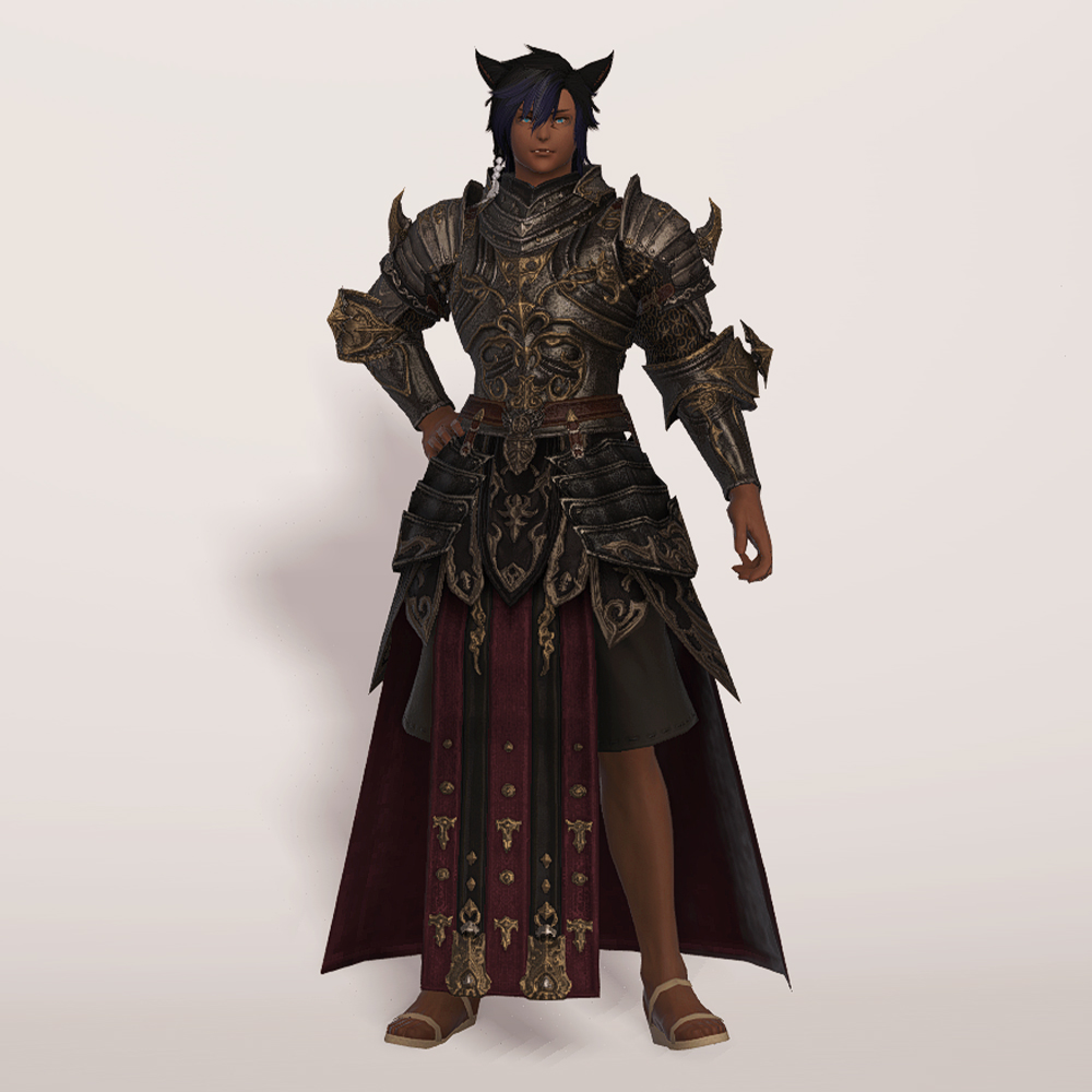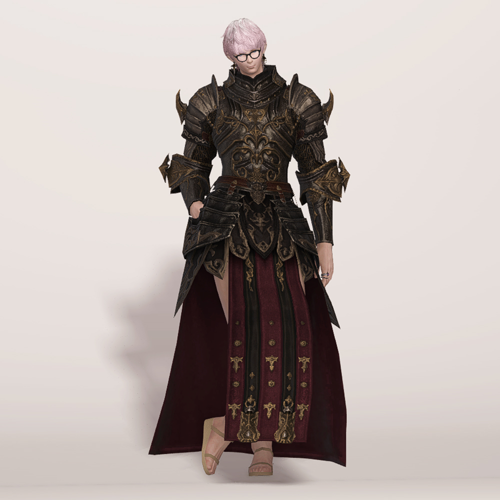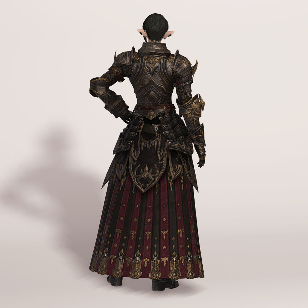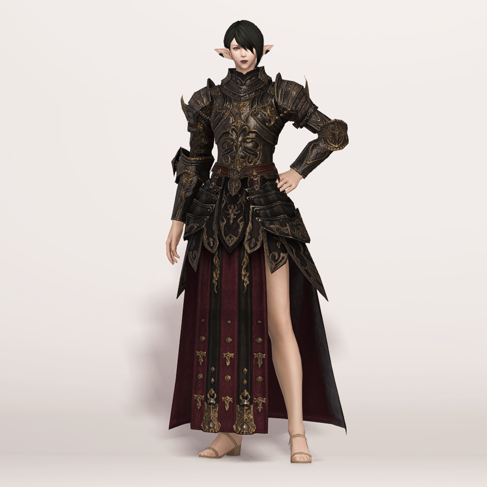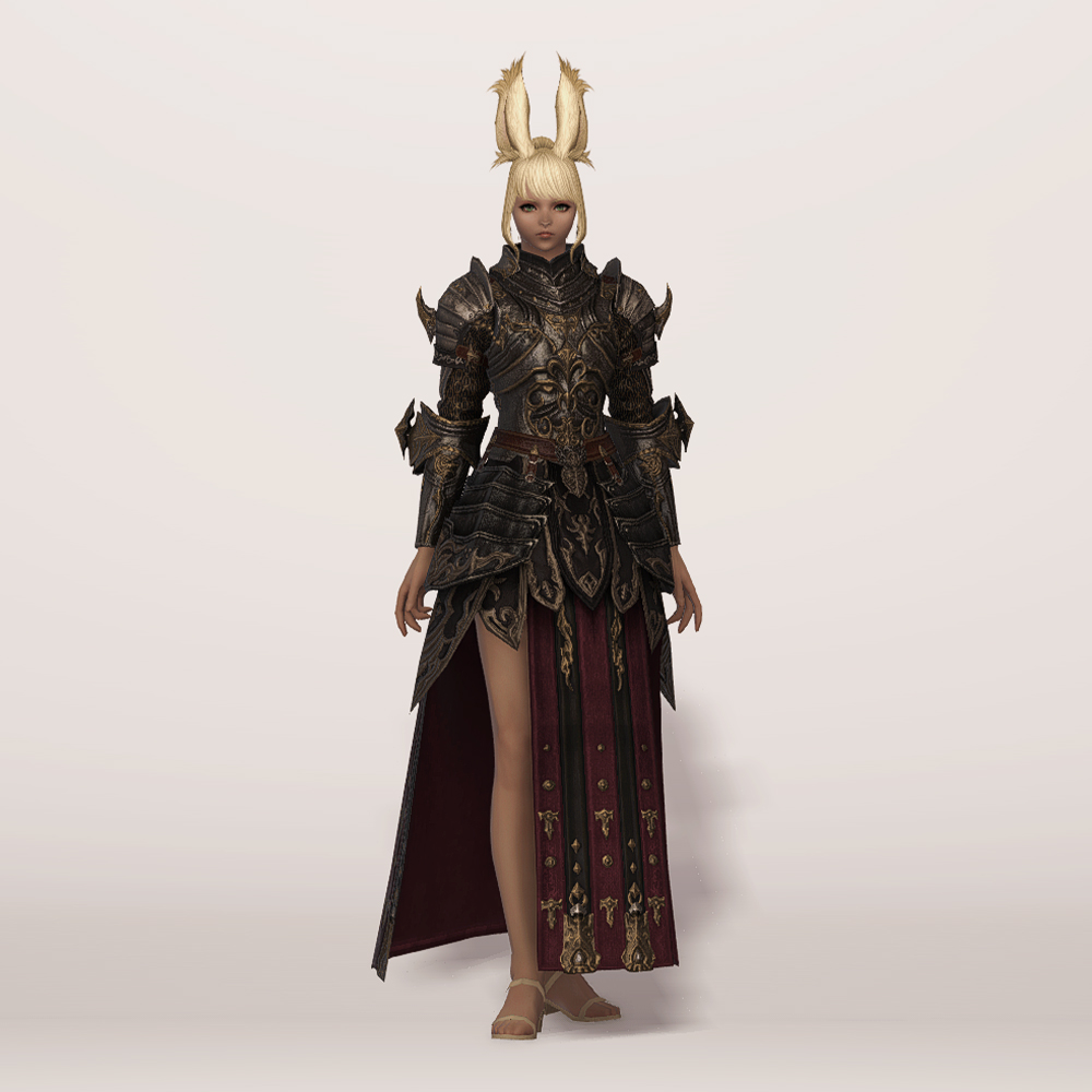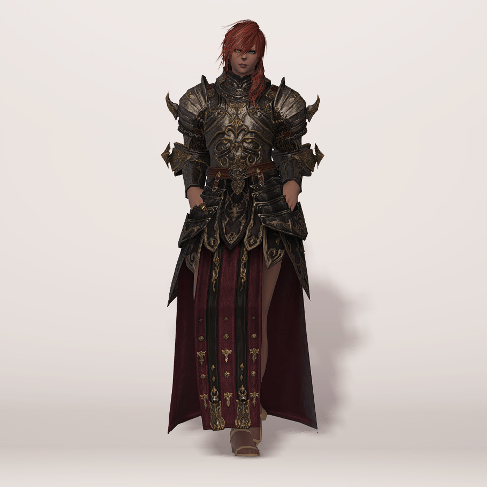디테일한 무늬들이 돋보이는 갑옷입니다. 목, 어깨, 팔 등 상체를 완벽하게 보호할 수 있으며 팔 안쪽은 사슬 갑옷으로 이루어져 있어 판금 갑옷보다 움직임이 편합니다. 허리 라인이 체형 그대로 살아있으며 허리춤에 매달아 바닥까지 길게 늘어뜨린 천은 다채로운 장식으로 화려해 전체적으로 투박한 느낌보다는 고급스럽다는 느낌이 강합니다. 지하매복자 수호자 기사투구와 매치하면 갑옷의 정석 느낌을 낼 수 있습니다.