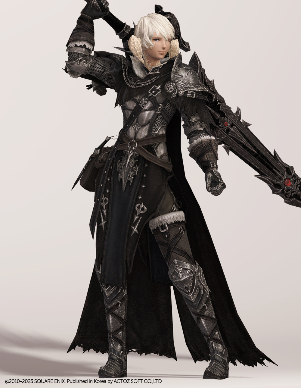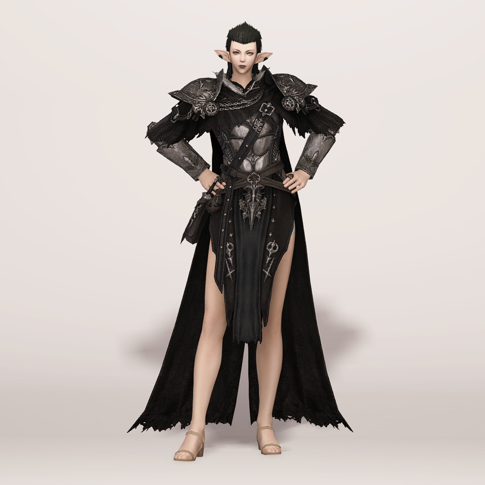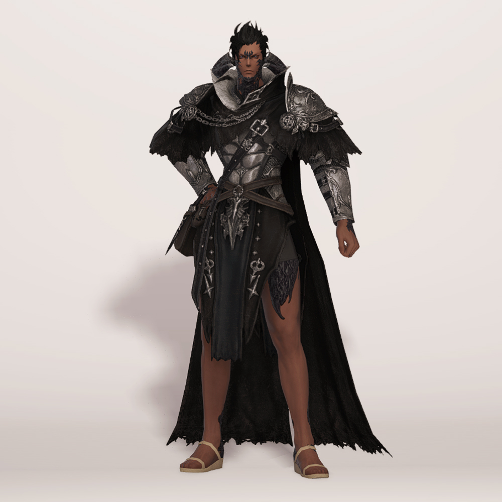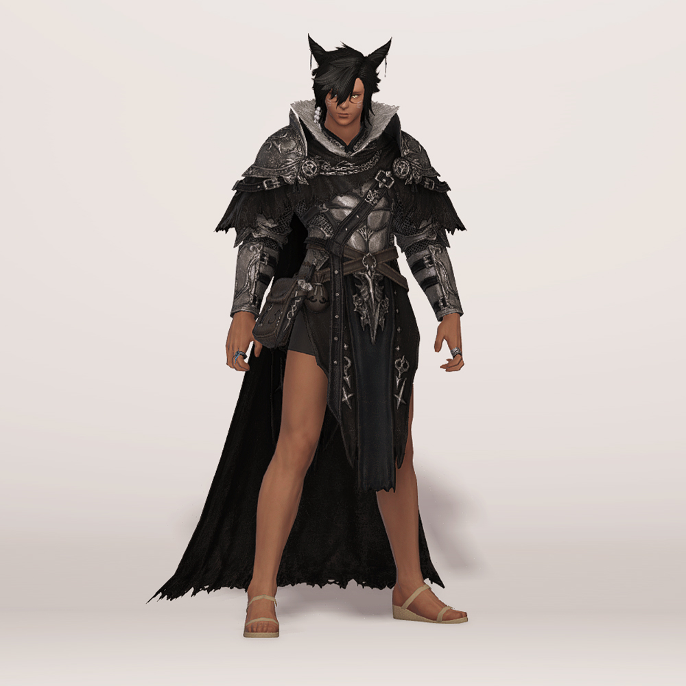 오래된 느낌을 주는 사슬갑옷에 끝단이 낡은 망토와 가죽 스트랩 등을 더해 모험가 또는 방랑 기사의 인상을 남기는 상의입니다. 복부에 덧댄 철판 장식은 6분할의 복근 모양으로 만들어져 근육질 체형을 드러내는 듯한 착시효과를 주기도 합니다. 특히 체격이 좋은 종족이 착용할 경우 강인하고 야성적인 느낌이 물씬 살아납니다. 녹슨 듯한 색감이나 너덜거리는 망토 자락은 방랑자다운 인상을 주지만, 어깨받이의 양각과 곳곳의 금속 장식들은 상당히 섬세하게 세공되어 있어 먼 옛날 궁전이나 성을 지키던 기사 같은 매력이 있는 아이템입니다. 하의나 신발을 볼륨감 있는 갑주로 선택해 위아래의 밸런스를 맞추어 주는 것도 추천합니다.