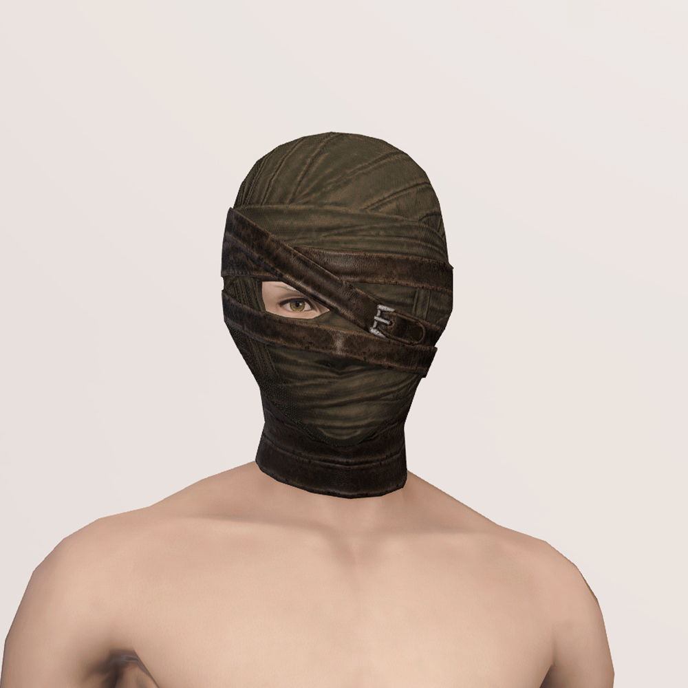 한쪽 눈을 제외하고 얼굴과 머리 전체를 감싸 가리는 붕대입니다. 바랜 듯한 색감과 너덜거리는 붕대 끝자락은 다른 트로이아 장비들처럼 낡고 투박한 느낌을 한껏 끌어올립니다. 붕대 위에는 가죽 스트랩이 감겨 있어서 신이슈가르드 유격대 상의나 안드로이드 구식 유격대 군장과도 잘 어울립니다. 사연 있는 모험가다운 분위기를 연출하고 싶을 때 활용해 보면 어떨까요? 물론 깜짝알 코스프레도 가능합니다. 여러분의 <<터주>>를 응원합니다