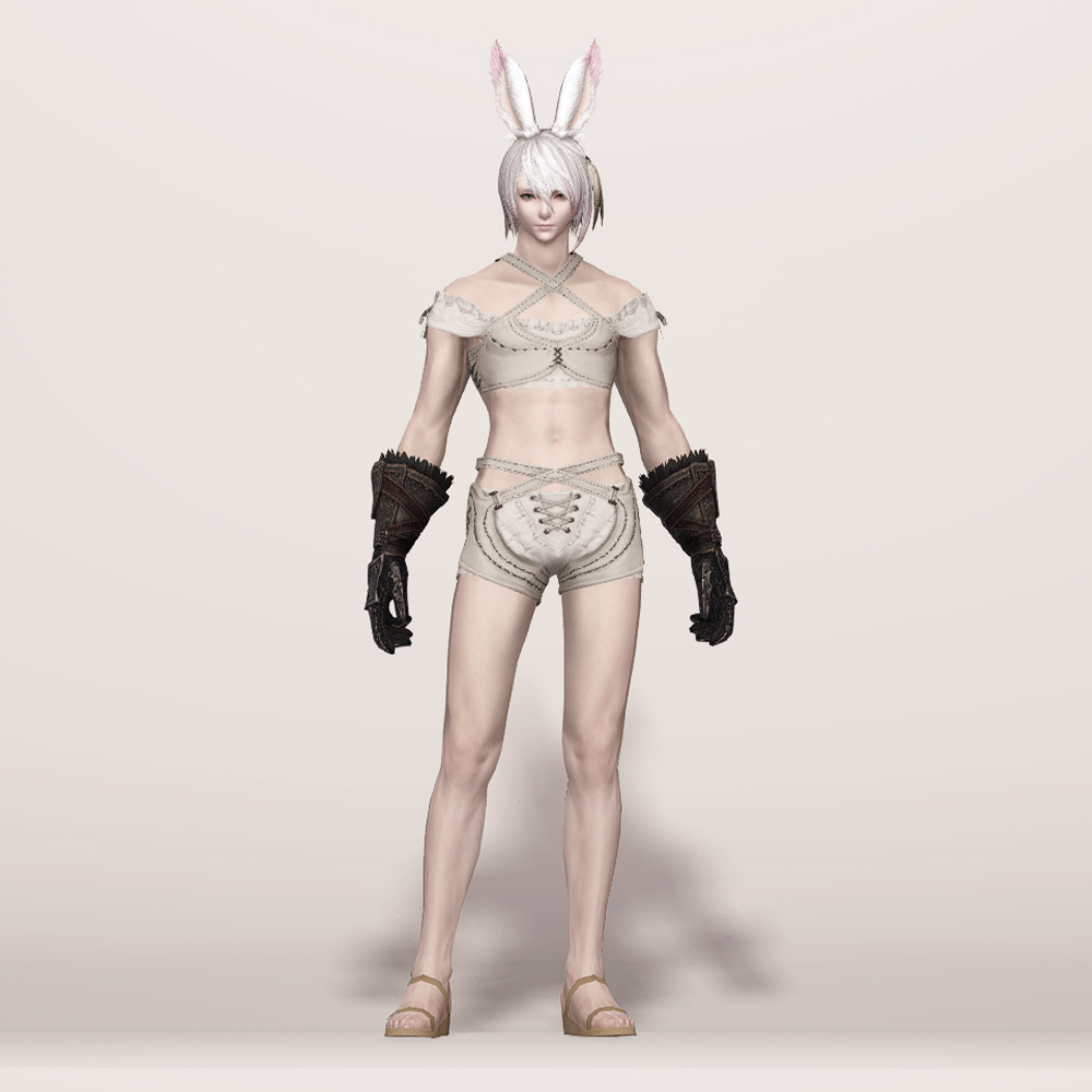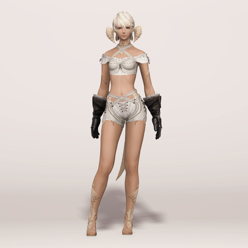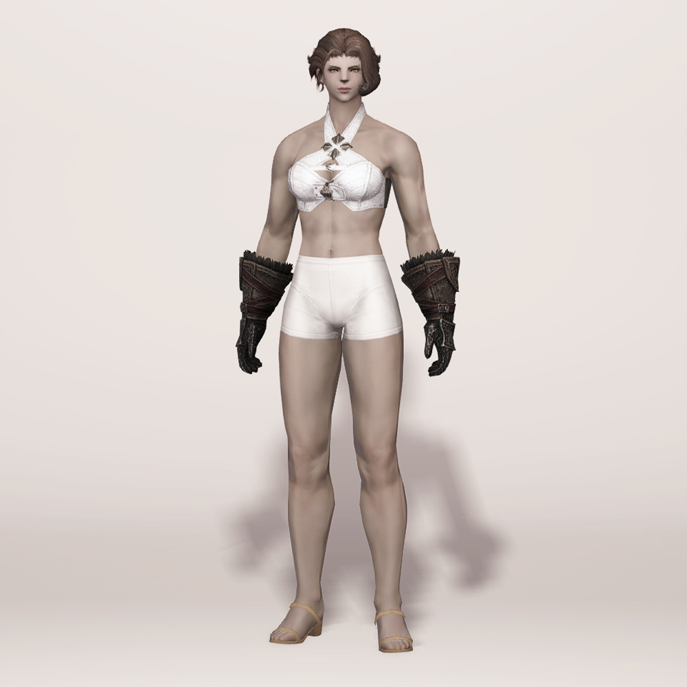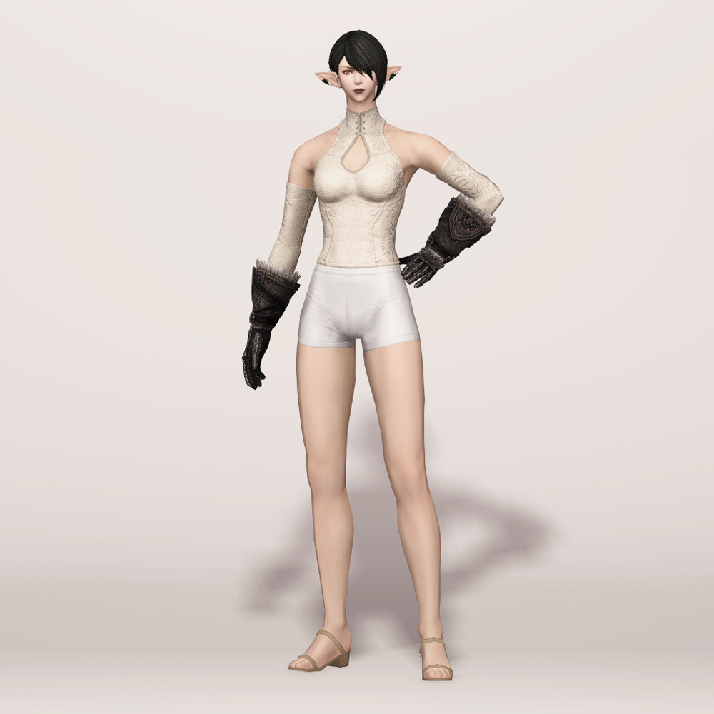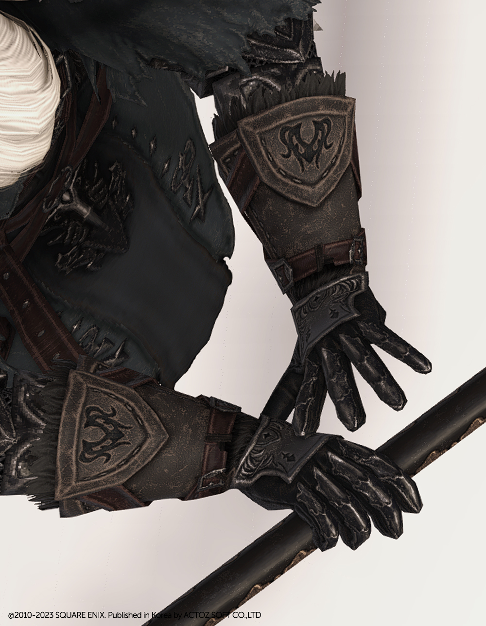 가죽으로 제작된 건틀릿입니다. 사용감이 느껴지며 팔목과 손목 부분에 털 장식이 들어갔고, 요마를 뜻하는 듯한 느낌의 문양과 함께 둘러진 스트랩과 스트치가 눈에 띕니다. 손등과 손가락을 안전하게 보호할 수 있도록 덧대어진 금속 보호구는 화려한 무늬들이 들어가 밋밋하지 않습니다. 판금 갑옷 계열보다는 가죽이나 천이 둘러져 있는 갑옷이나 스트랩이 눈에 띄는 상의와 매치하는 것을 추천드립니다.