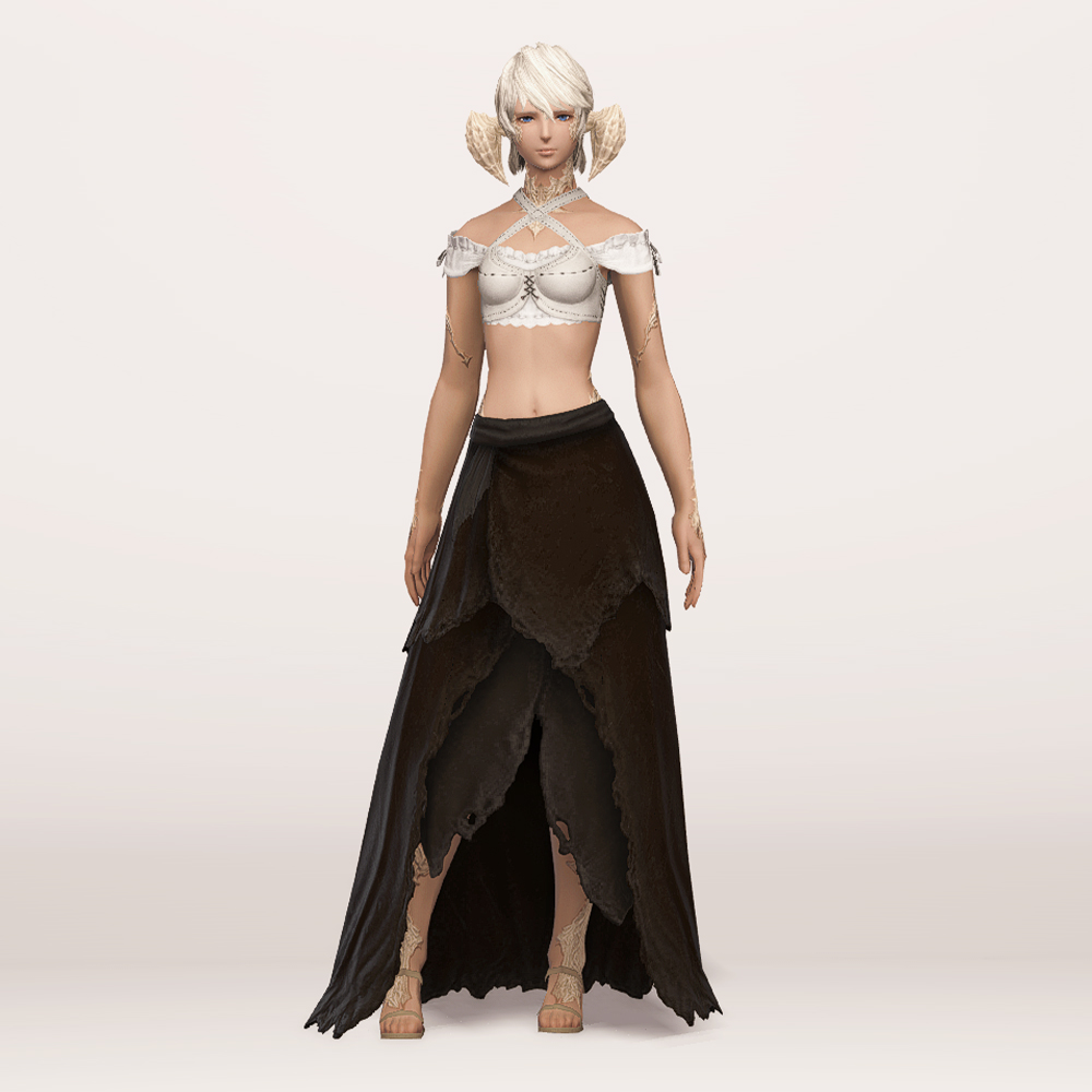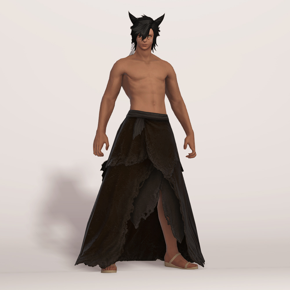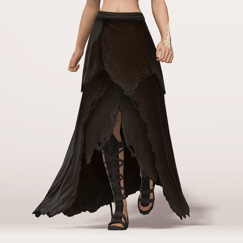 길이도 모양도 다른 가죽을 꽃잎처럼 모아 바닥까지 길게 늘어뜨려 앞과 뒤의 길이가 달라 로우하이 스커트 느낌이 나는 장치마입니다. 끝이 너덜거리고 헤져 독특한 분위기를 연출할 수 있으며 파글단 유격대 가슴받이와 굉장히 잘 어울려 추천드립니다. 이외 라자한 모직 가을 셔츠, 음기의 마계궁사 외투, 신이슈가르드 유격대 상의 등 가죽으로 제작된 상의들과도 잘 어울립니다.